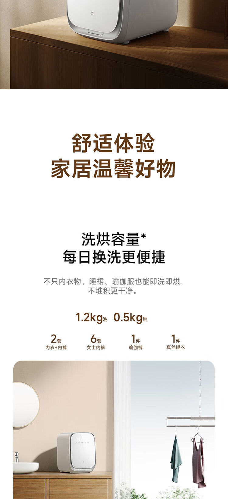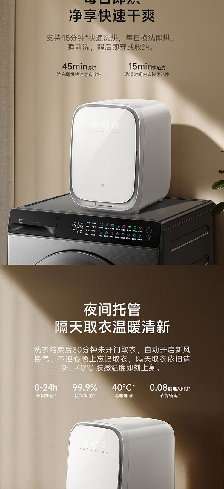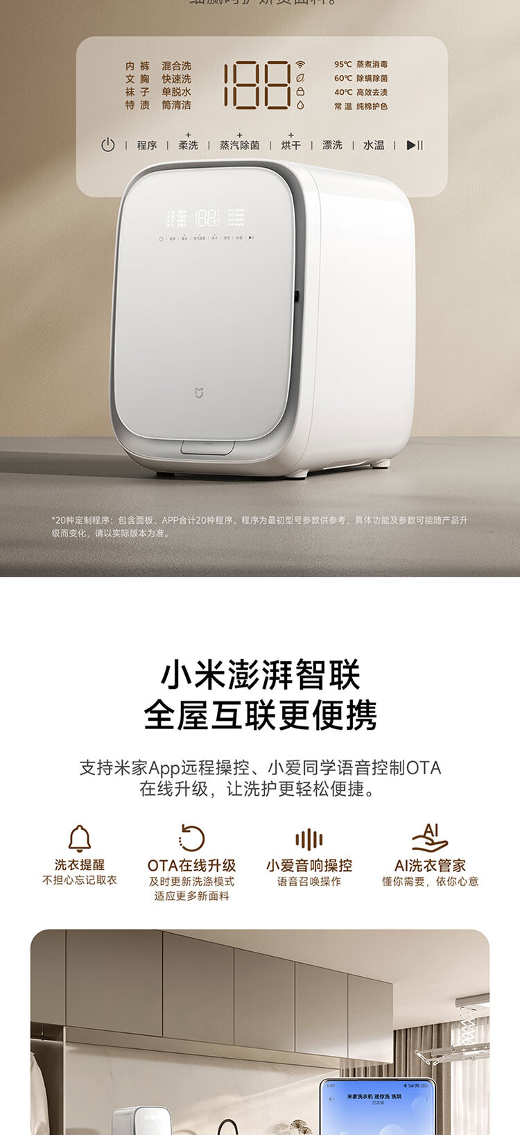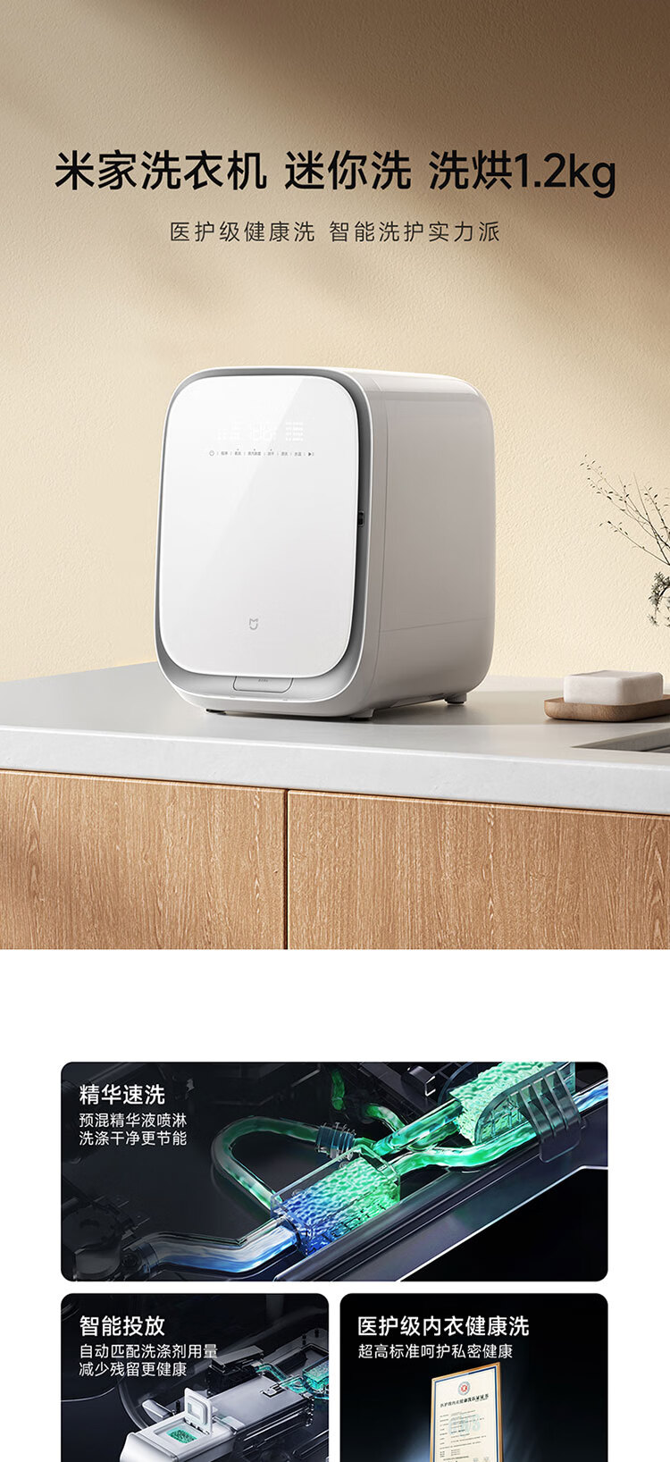 米家小米母婴迷你洗衣机 小型 洗烘一体 全自动高温煮洗除菌去血渍内衣裤洗衣机XHQG012MJ403