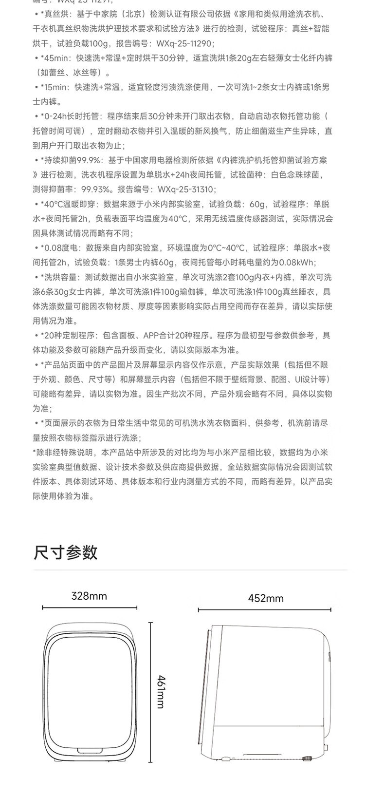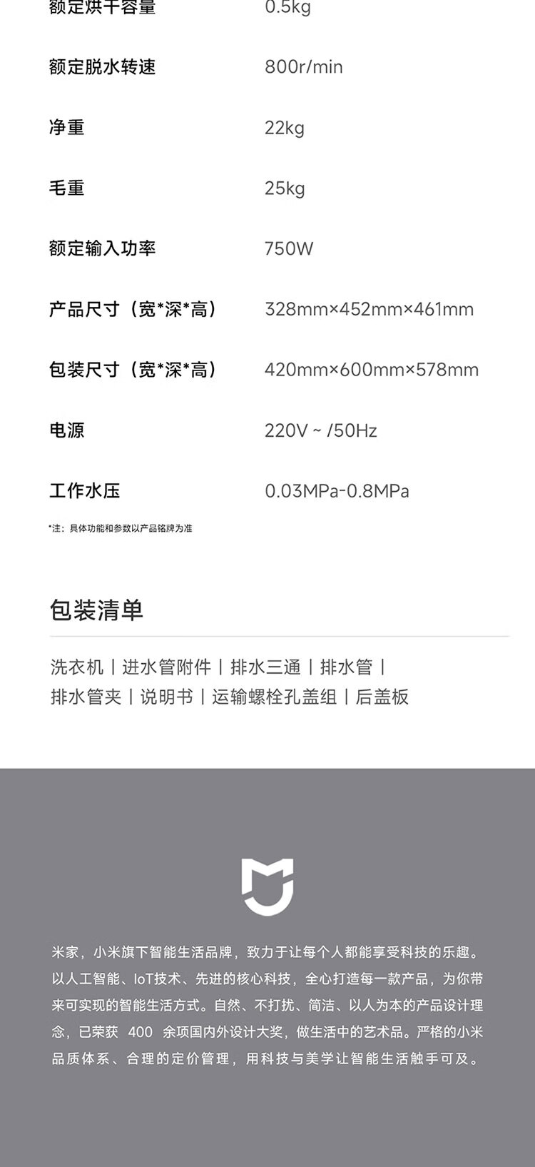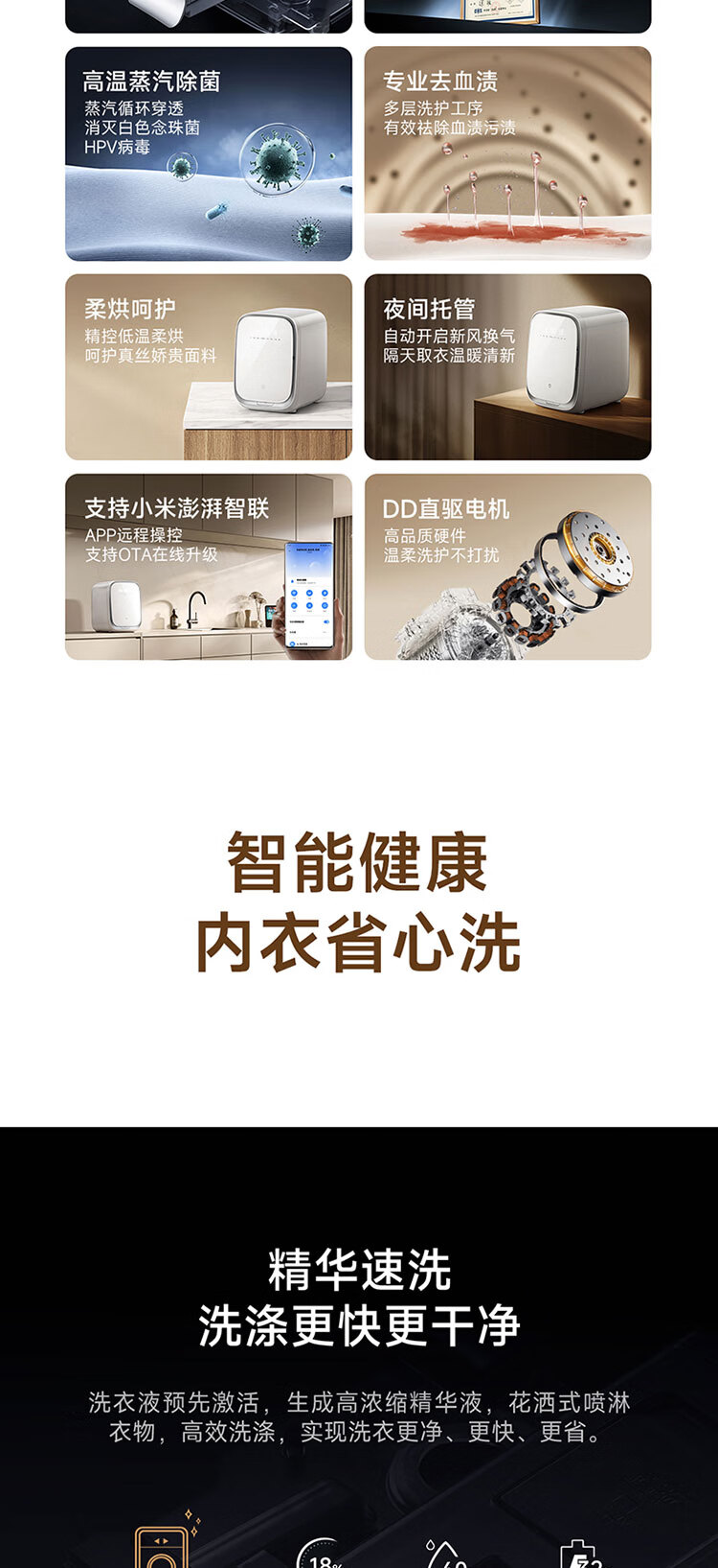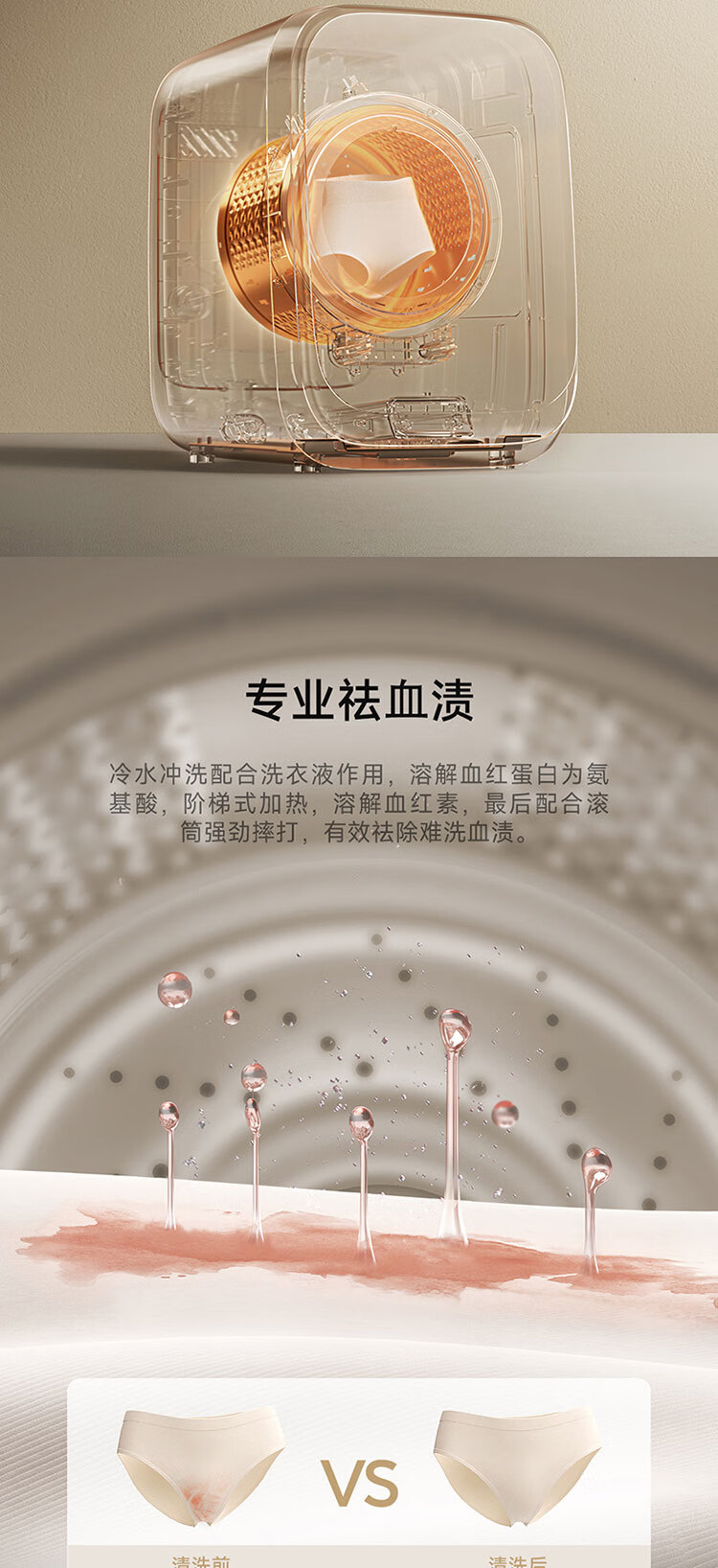 米家小米母婴迷你洗衣机 小型 洗烘一体 全自动高温煮洗除菌去血渍内衣裤洗衣机XHQG012MJ403