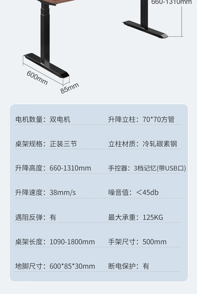 月康曼升降桌腿岩板茶几餐桌脚架支撑底座钢架书桌电脑桌可调节桌腿架子 169*49*高49-74 适用桌面180*60 梯形腿(白色)