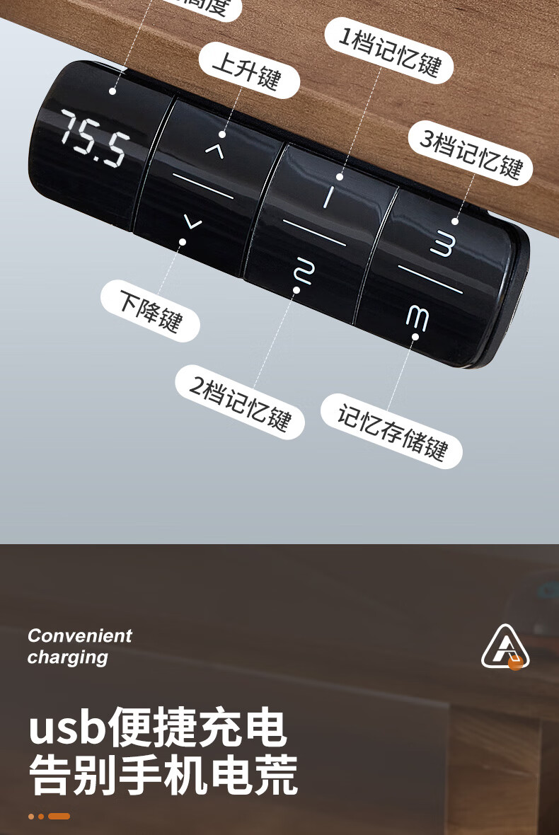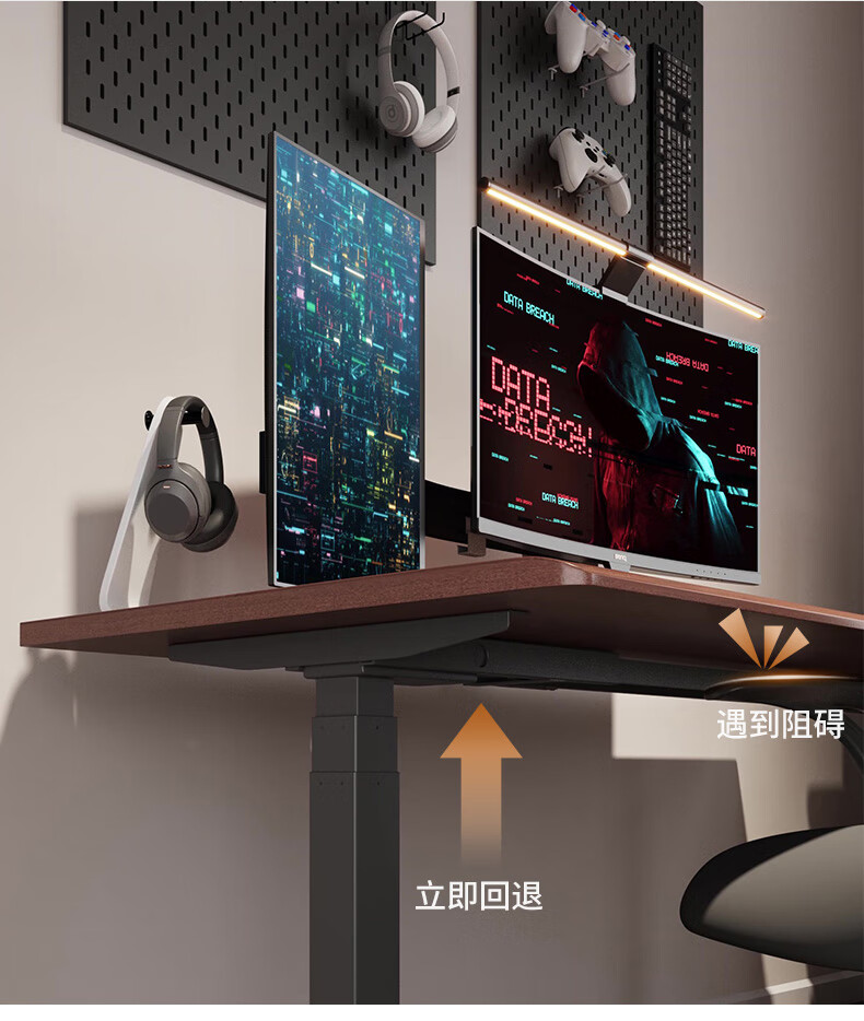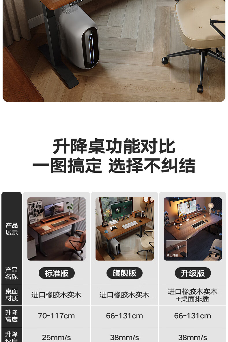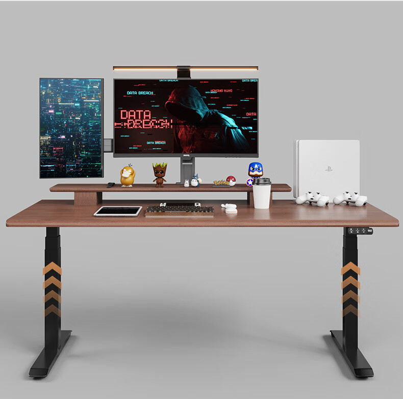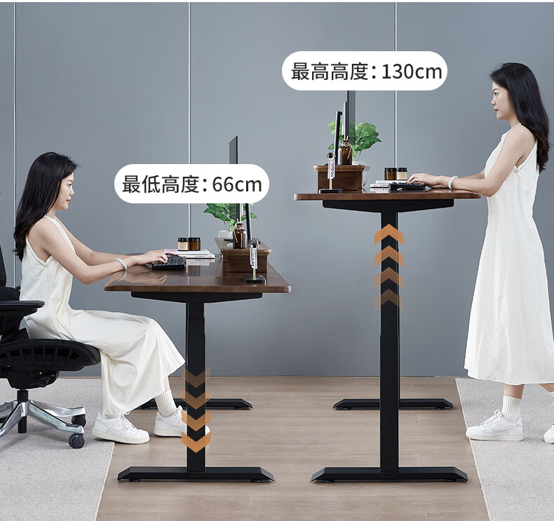 智芯实木电动升降桌移动电脑桌站立式工作台办公桌智能书桌家用 【R2双电机】黑胡桃方形橡胶木 1.2 x 0.7m桌面尺寸【2.0cm厚】