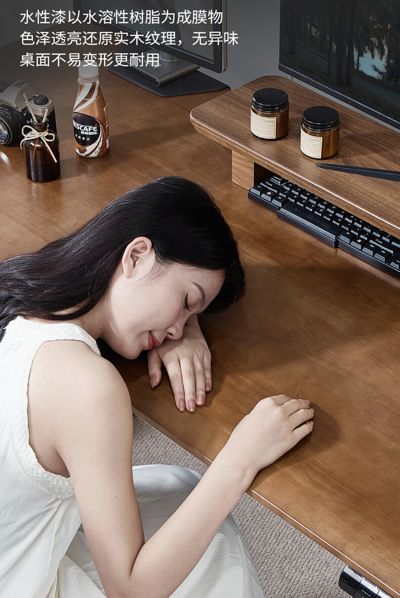 久耀2025新款实木客厅大长书桌家用餐桌一体工作台阅读桌大板桌学习桌 CR9904#胡桃色桌子+长条凳*1 140x80x75cn