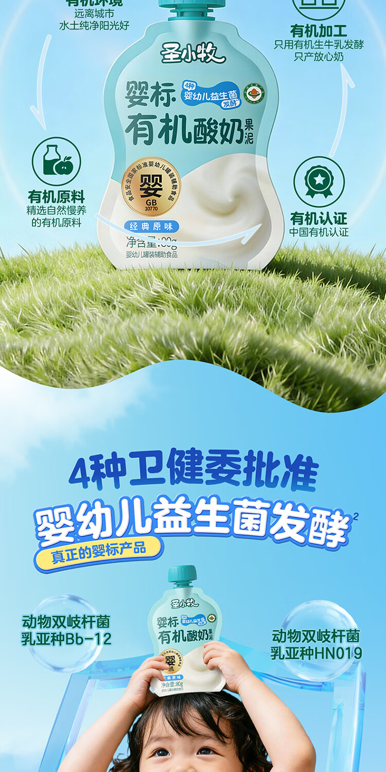 圣小牧有机宝宝酸奶 儿童婴标酸奶 新年礼盒 4种婴儿益生菌混合口味10袋