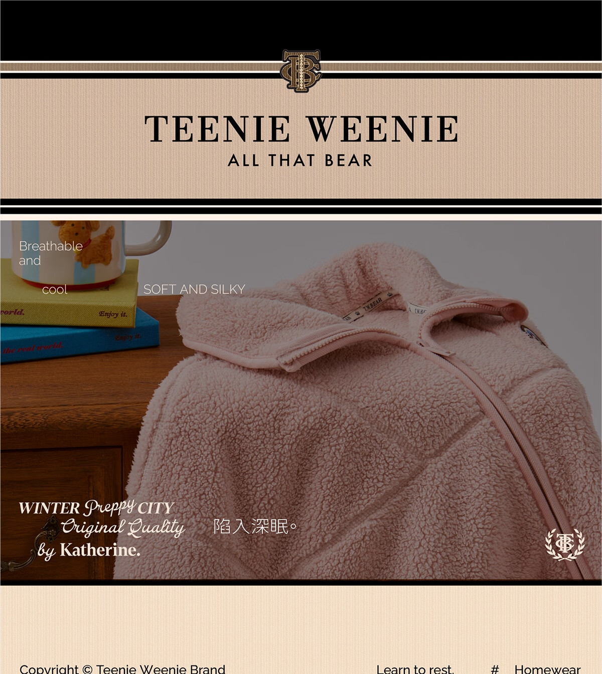 Teenie Weenie小熊睡衣2025新款秋冬锁温保暖羊羔绒家居服套装女士 奶霜粉 【姜饼屋小熊】 M 建议115-125斤