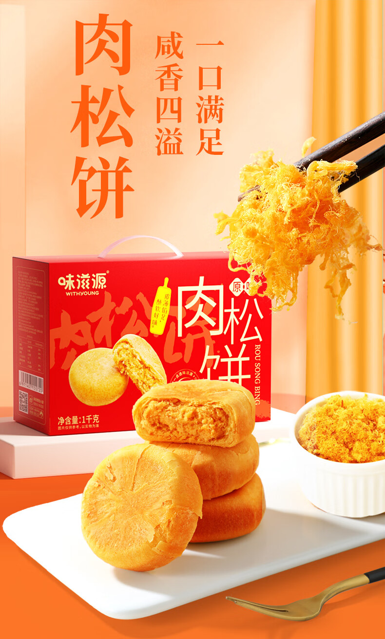 味滋源肉松饼1000g礼盒装 早餐代餐休闲零食点心面包 中秋节日团购送礼