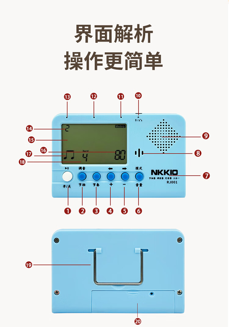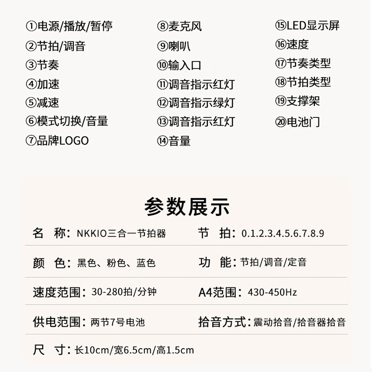 NKKIO尼康电子节拍器钢琴考级专用人声古筝吉他通用调音器 D001黑色