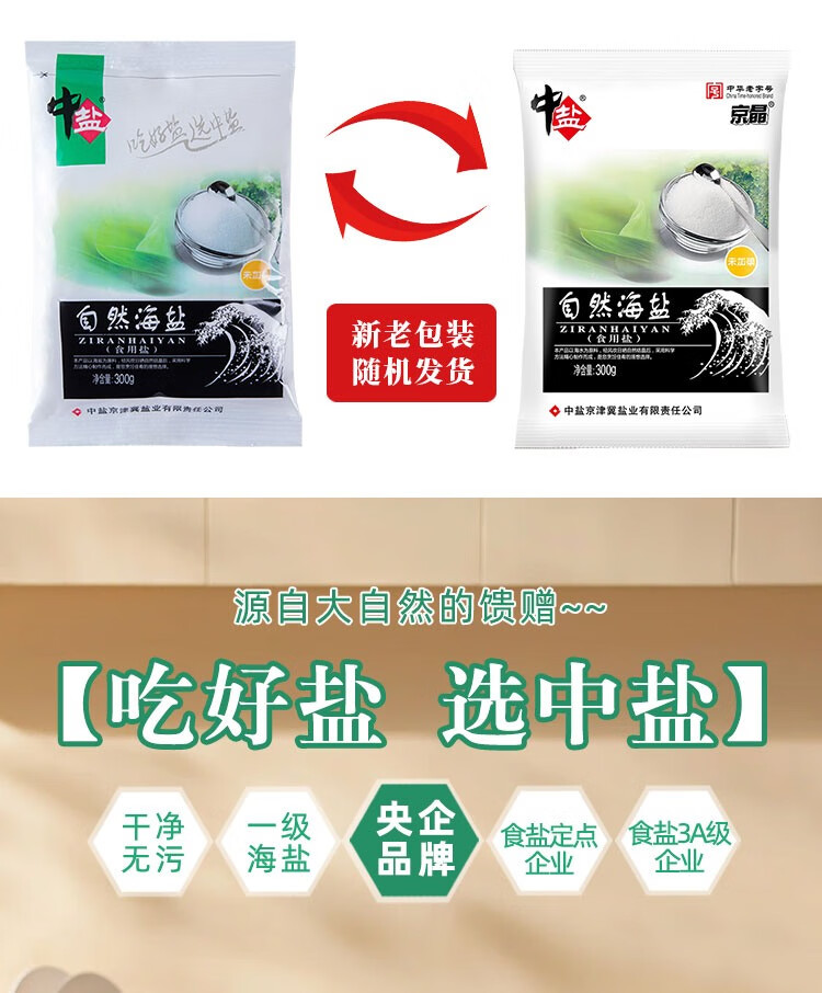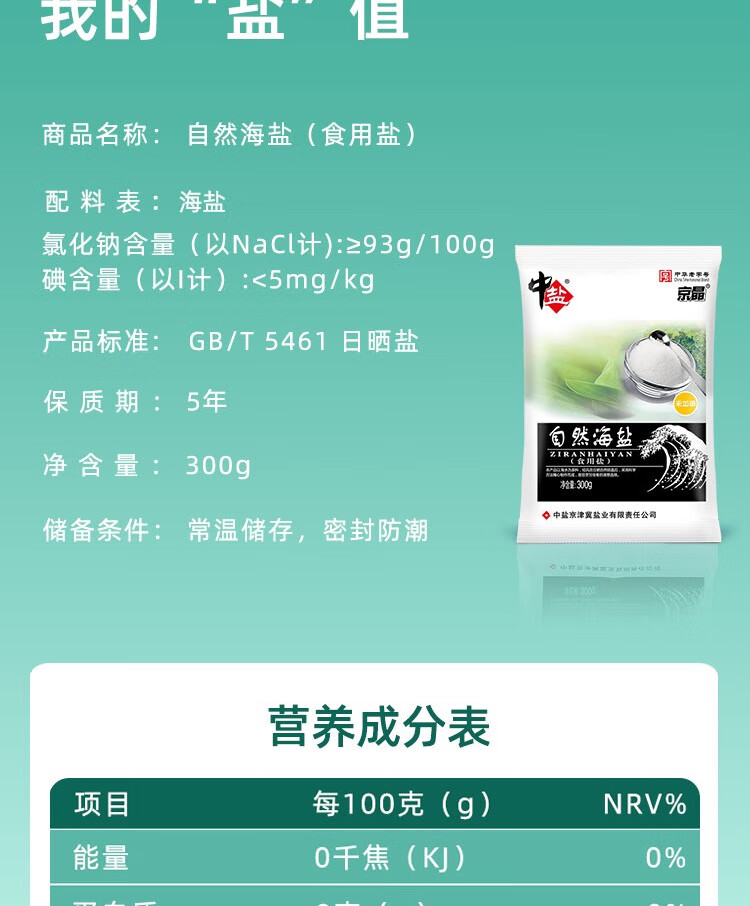 中盐 自然海盐300g 【未加碘】纯净自然 吃好盐选中盐