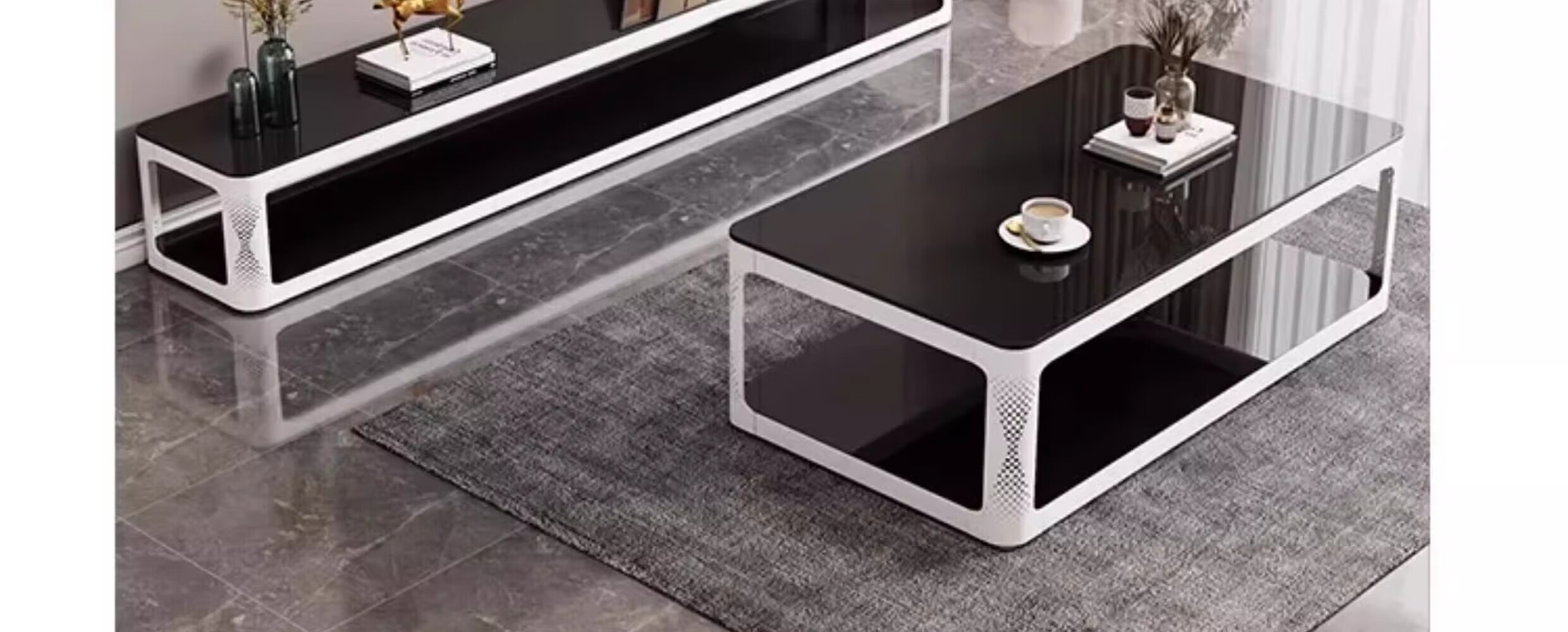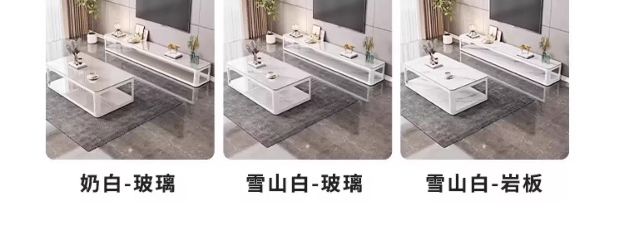 汐墨阁家用双层茶几客厅落地式会客茶水桌电视柜茶几桌组合钢化玻璃茶台 【雪山白+白架】60*60*45 组装简单