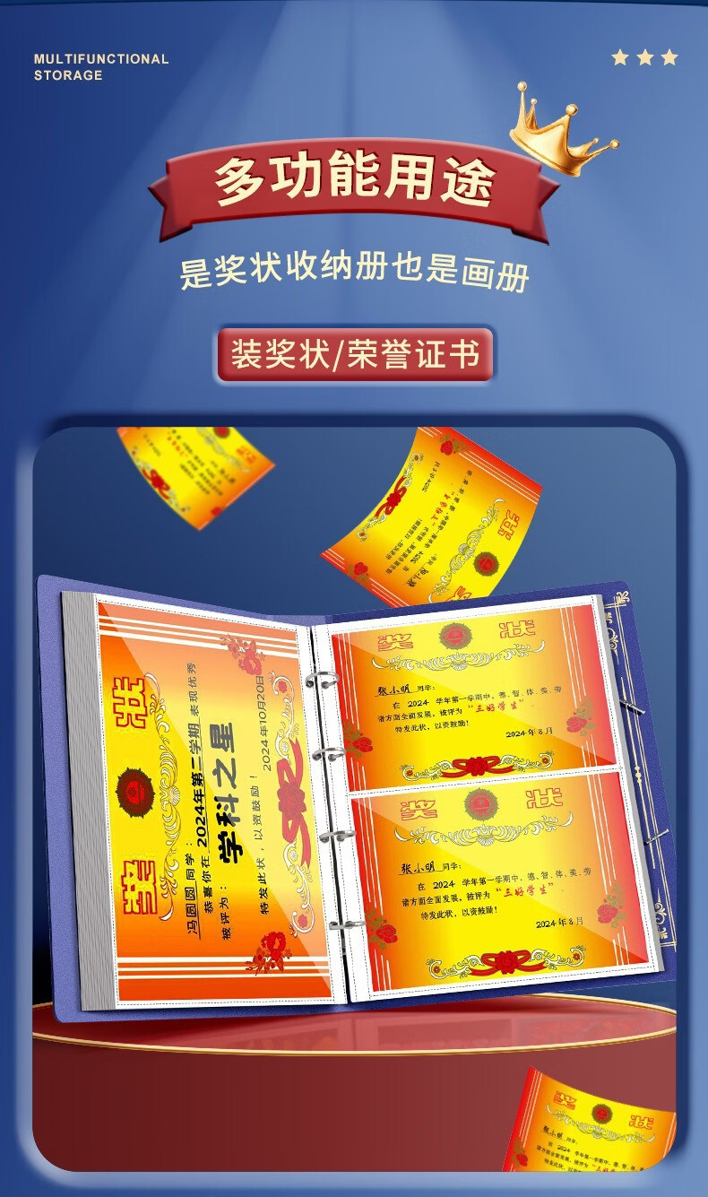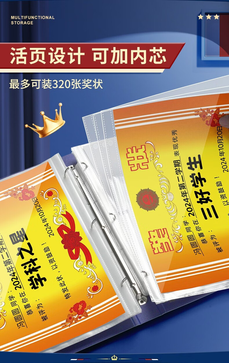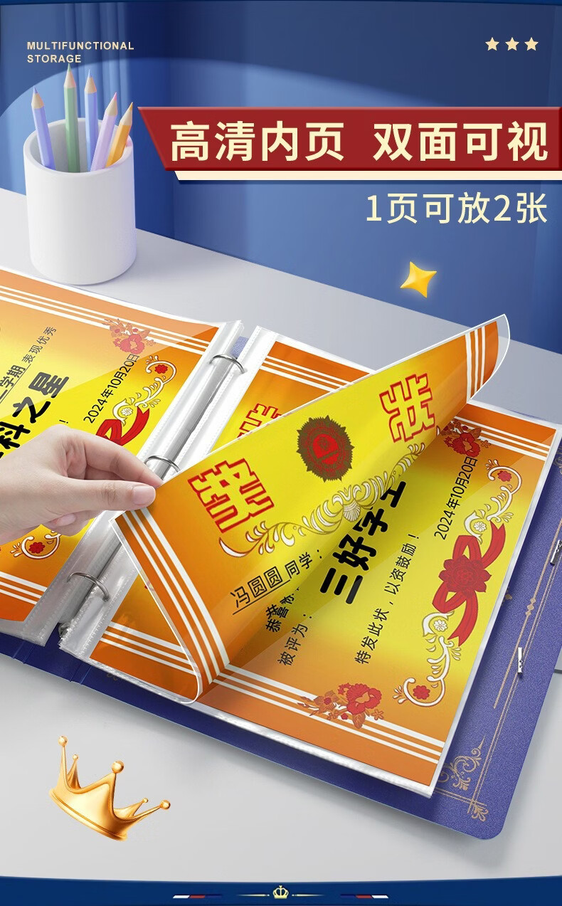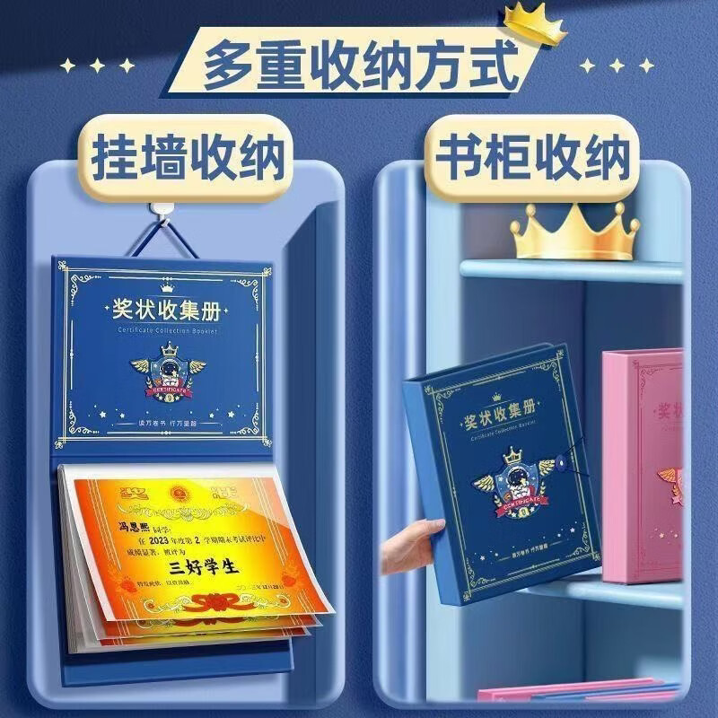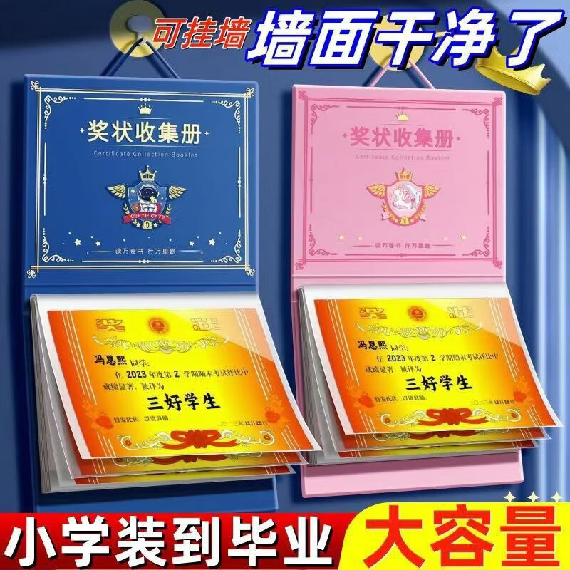 奖状收集册可挂墙展示学生男孩女孩荣誉证书收纳册收藏收纳册神器 款式随机-1本 无规格