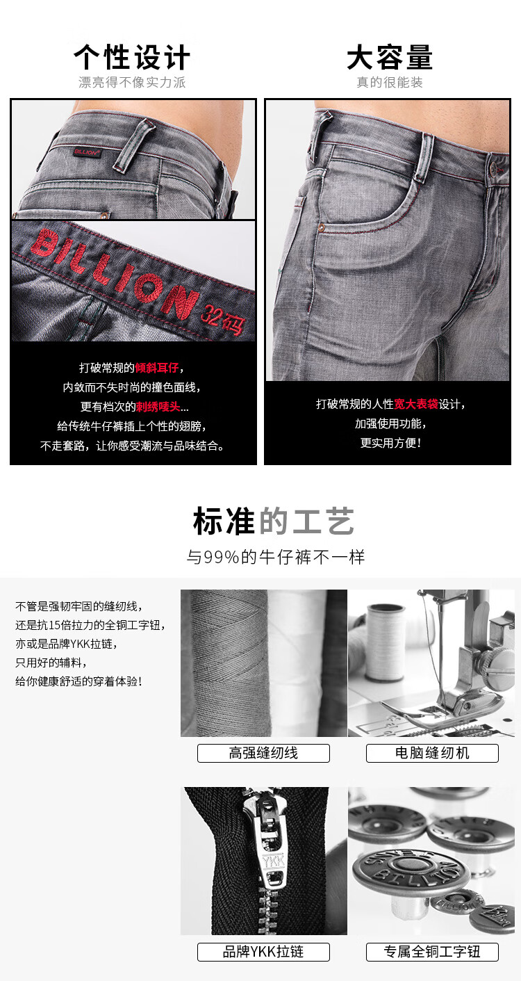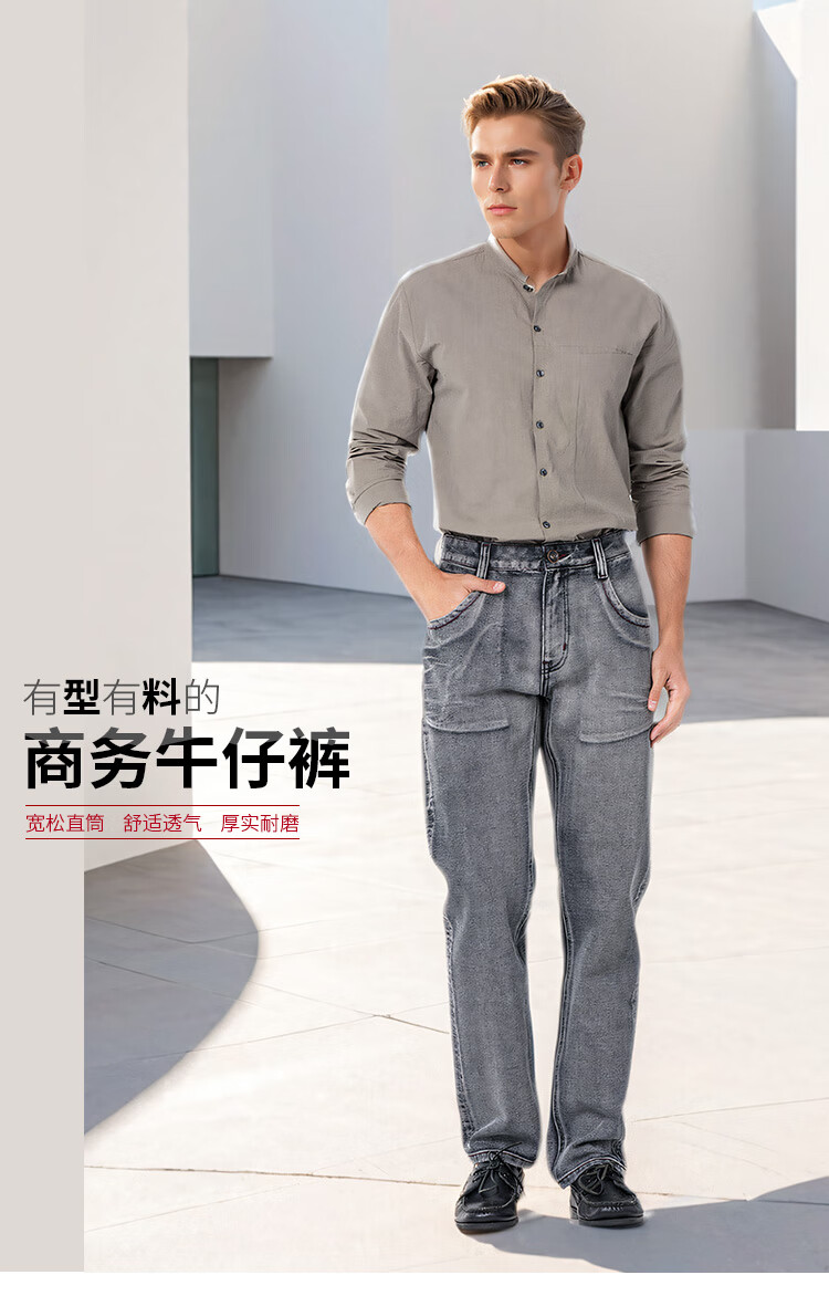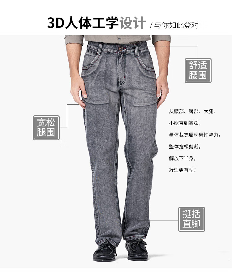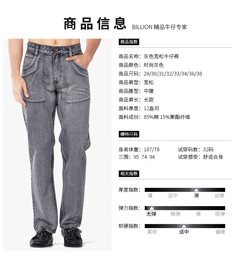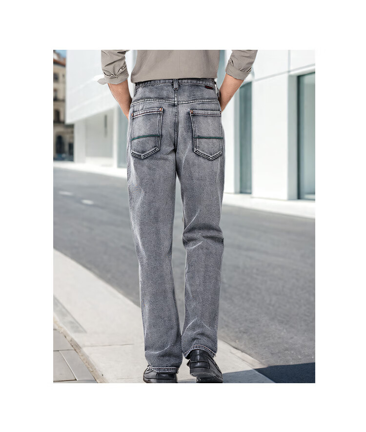 BILLION宽松牛仔裤男直筒秋冬季厚款中腰无弹商务休闲裤子新复古回潮 灰色 厚款 宽松直筒 38 (2.94尺|98厘米)