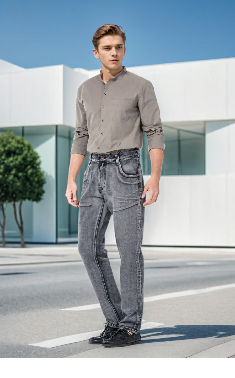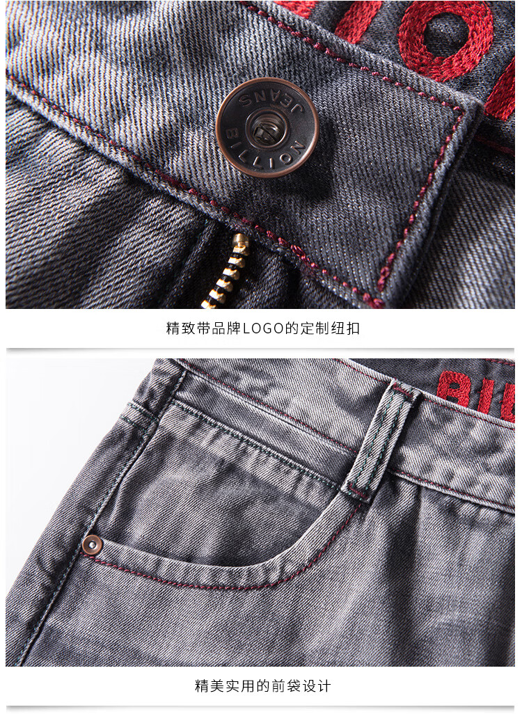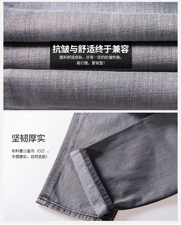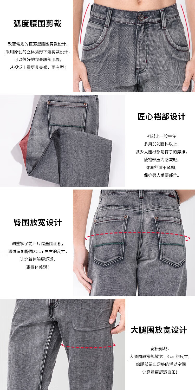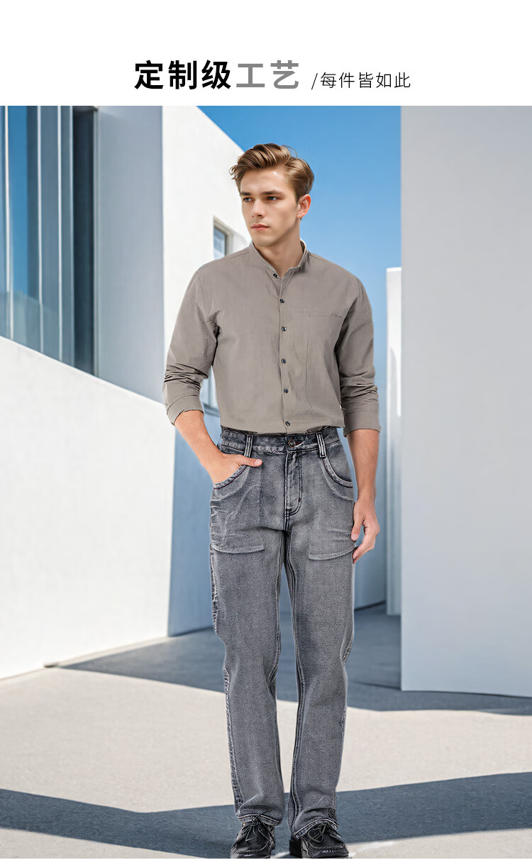 BILLION宽松牛仔裤男直筒秋冬季厚款中腰无弹商务休闲裤子新复古回潮 灰色 厚款 宽松直筒 38 (2.94尺|98厘米)