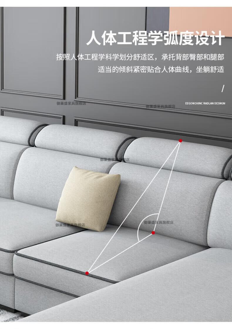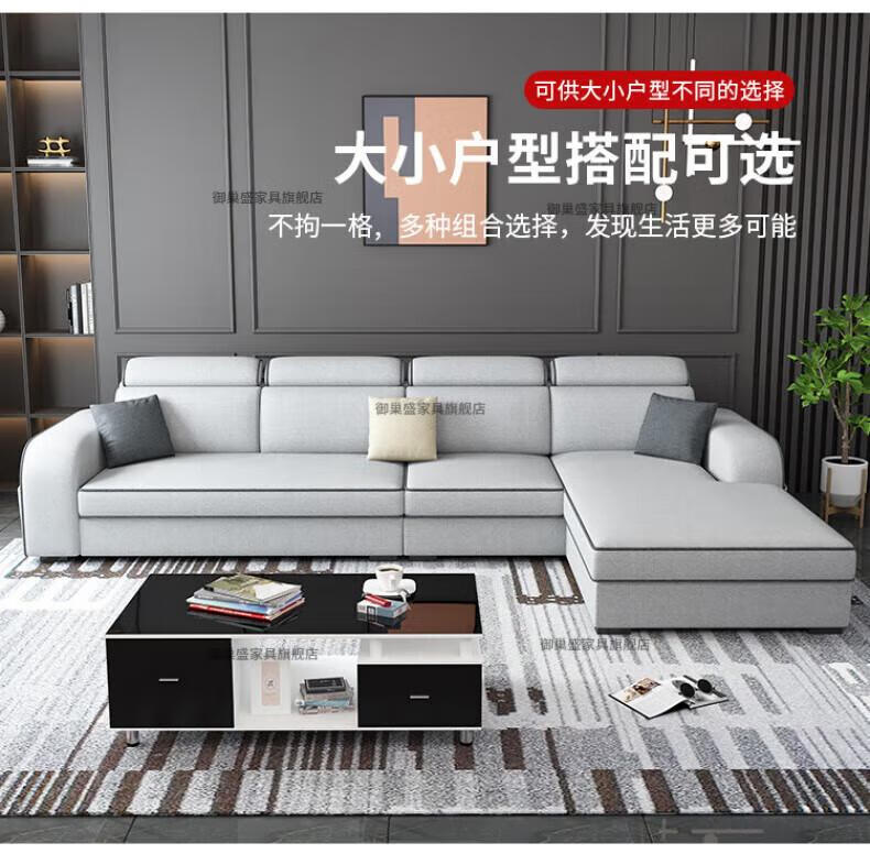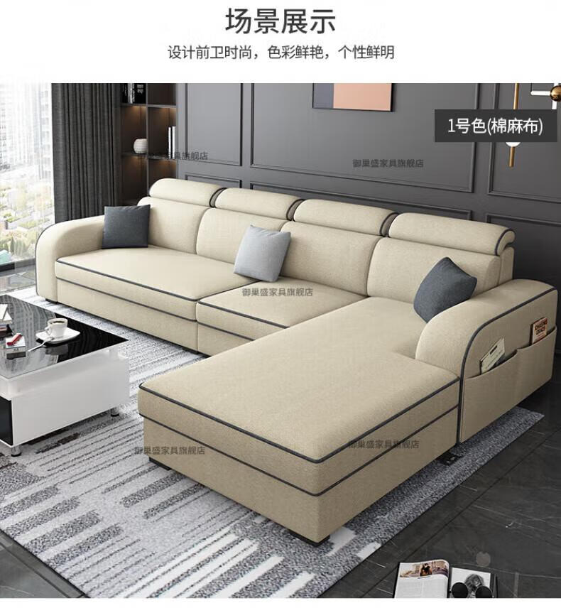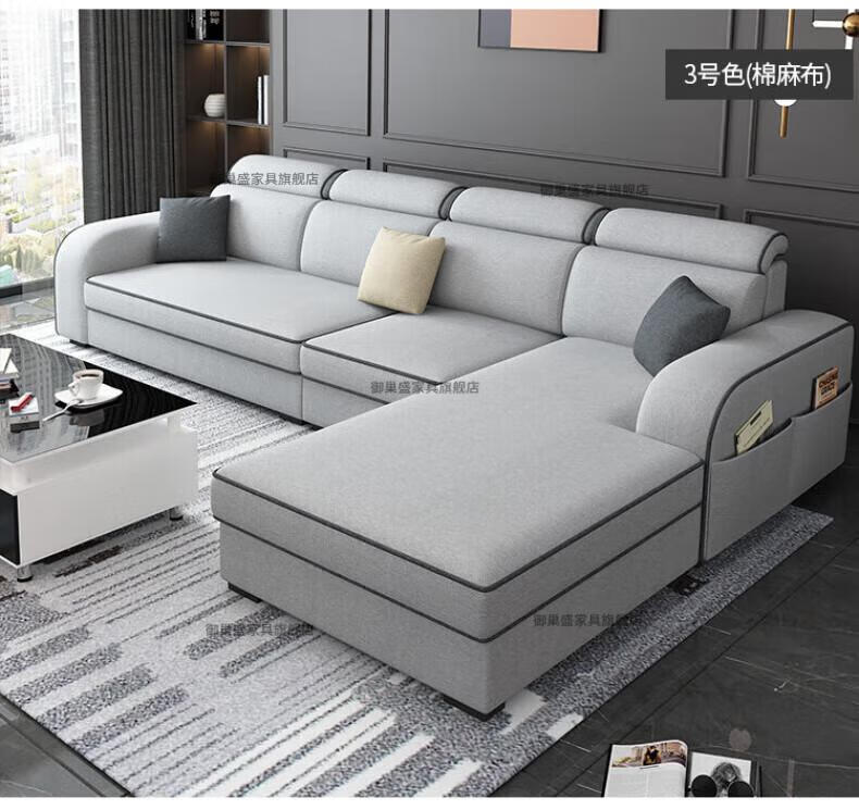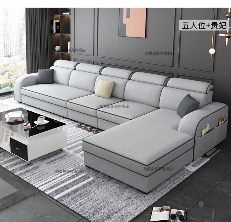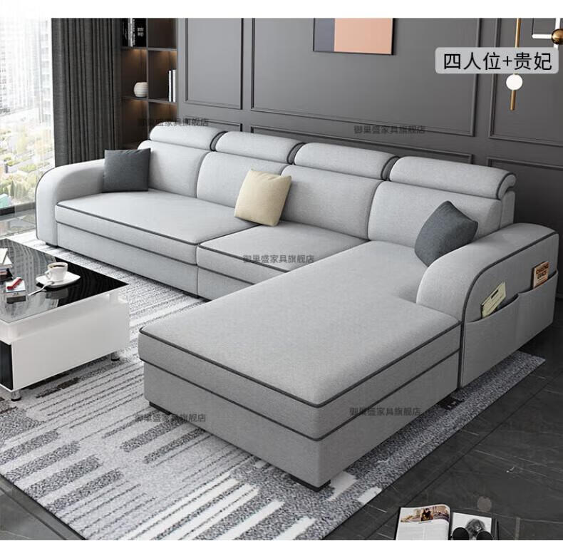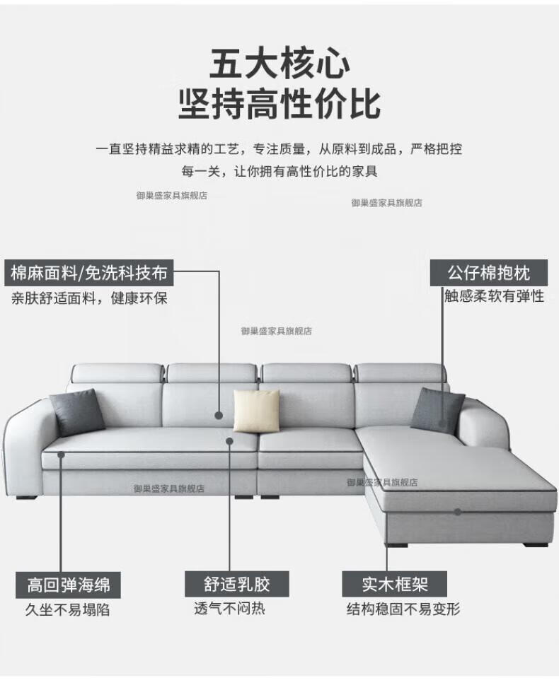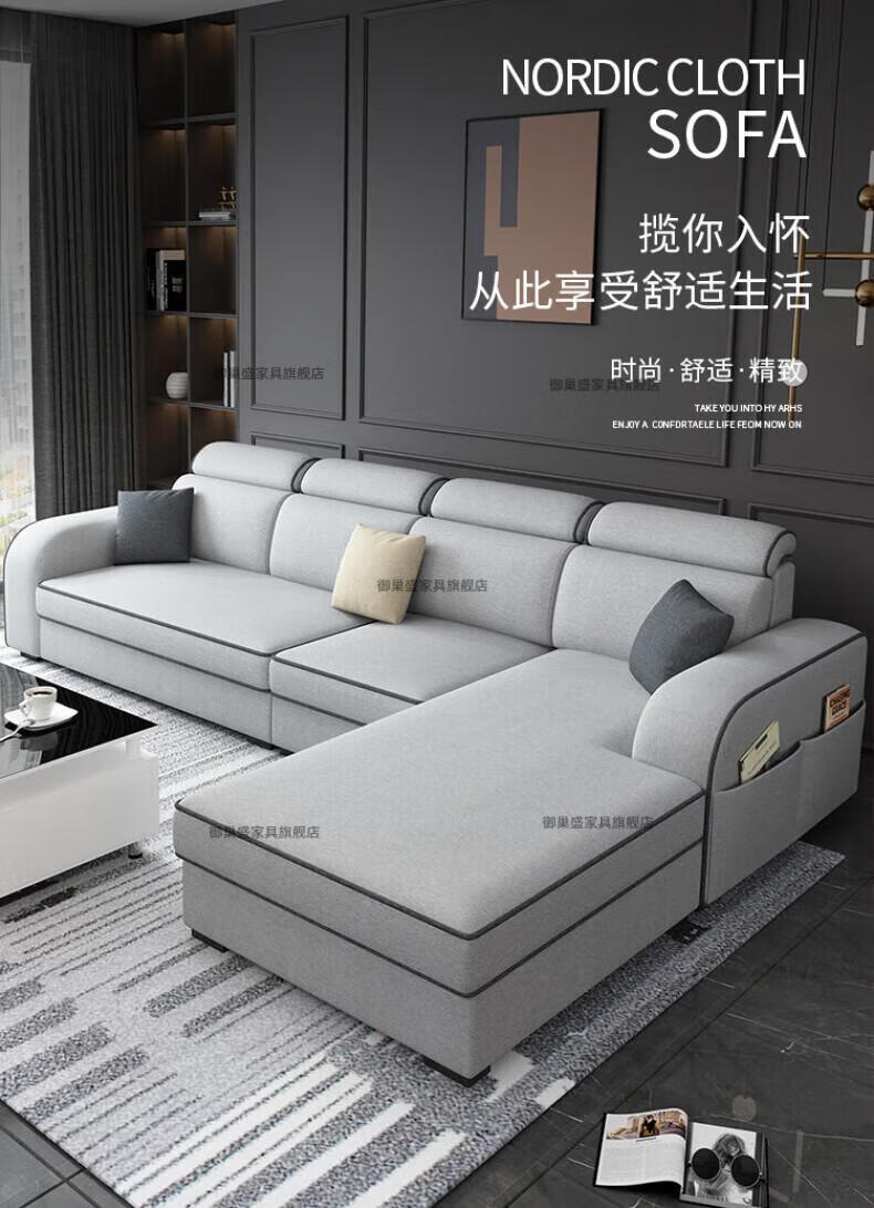 御巢盛2026新款沙发客厅小户型简北欧约现代家用科技布贵妃乳胶布艺沙发 四人位+贵妃版2.75米 亲肤棉麻布[高密度海绵款]