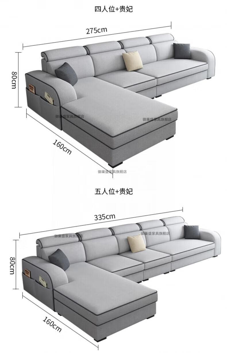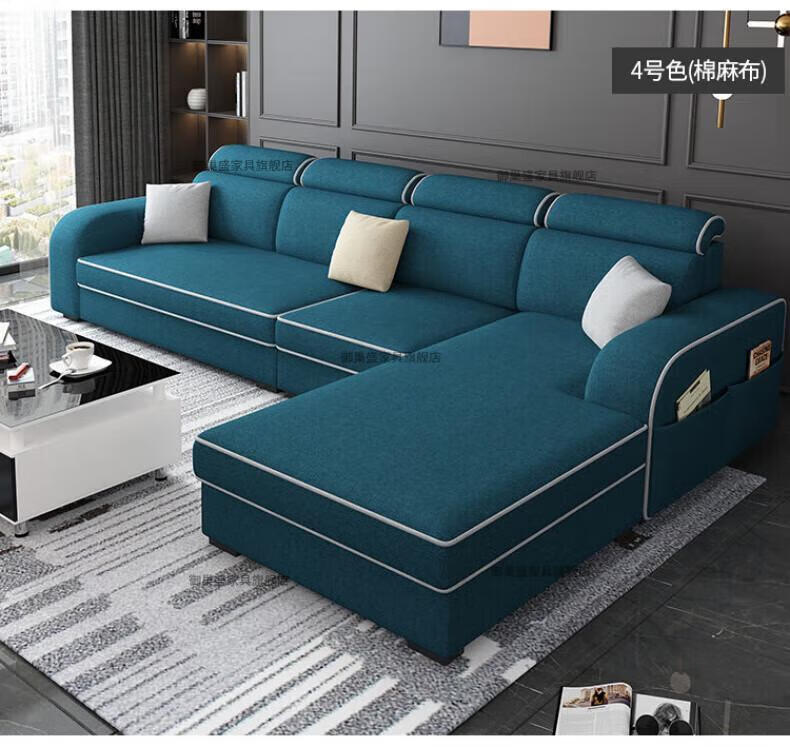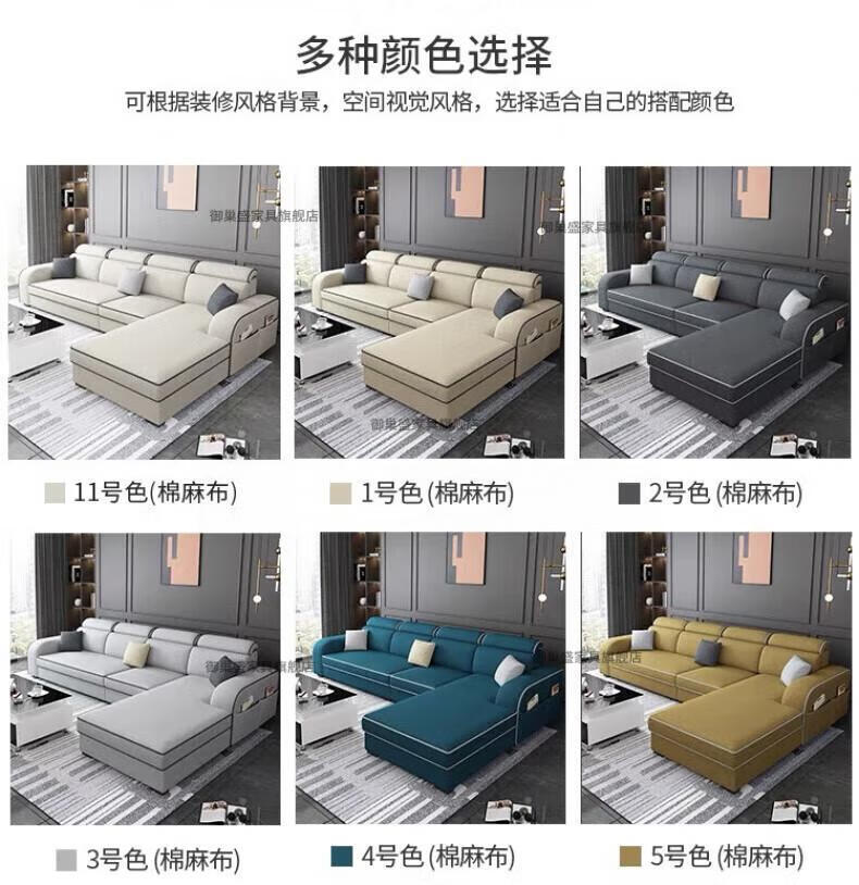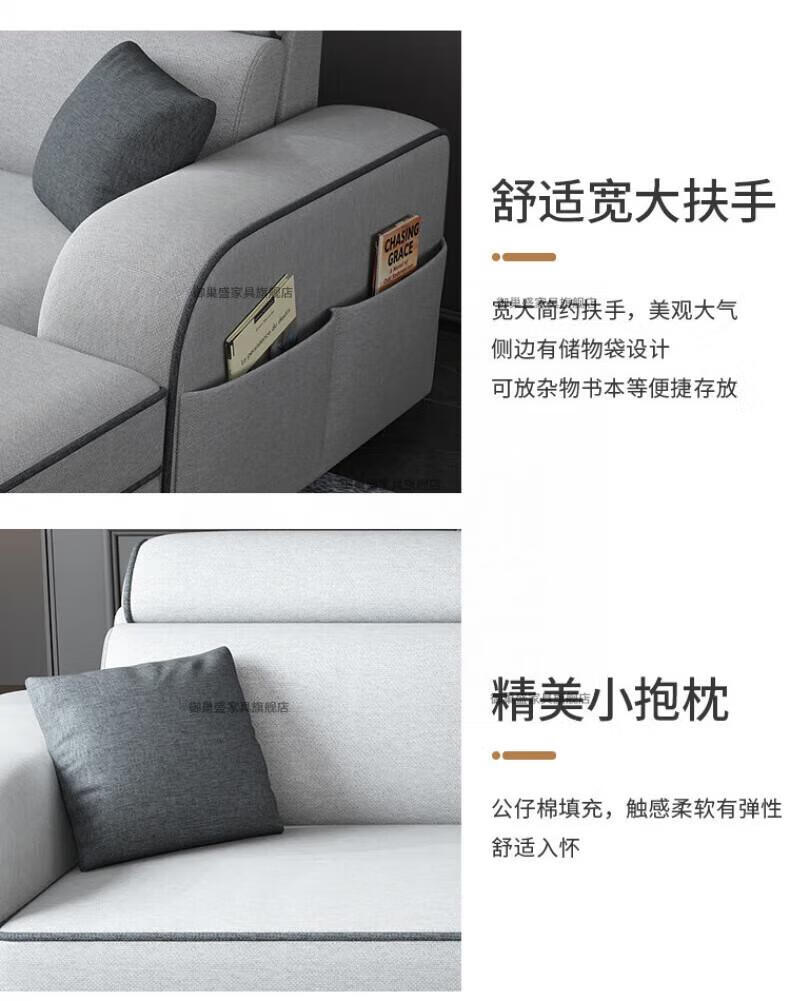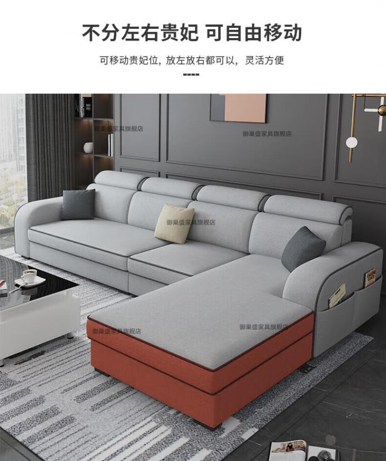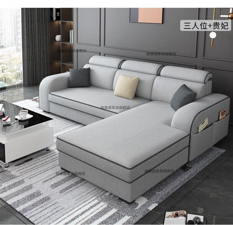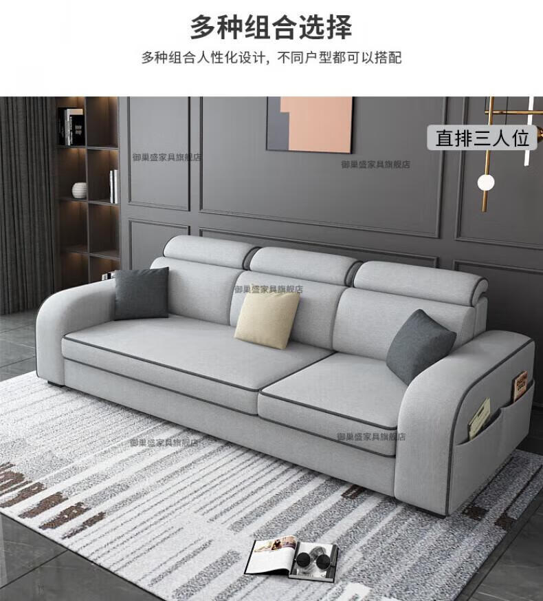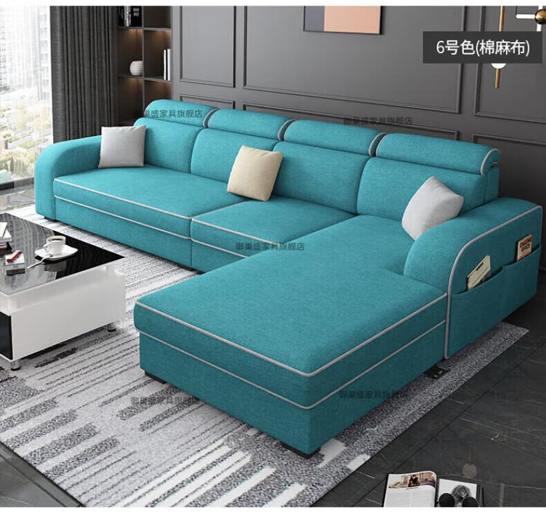 御巢盛2026新款沙发客厅小户型简北欧约现代家用科技布贵妃乳胶布艺沙发 四人位+贵妃版2.75米 亲肤棉麻布[高密度海绵款]