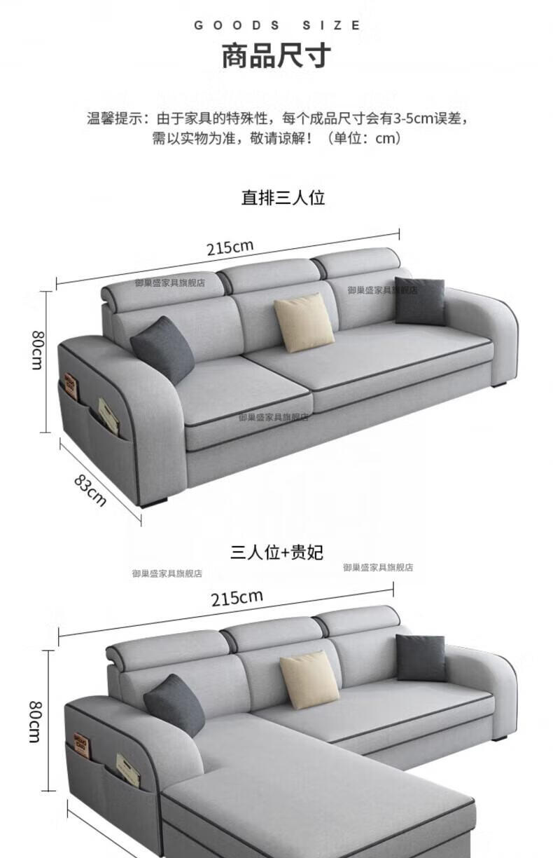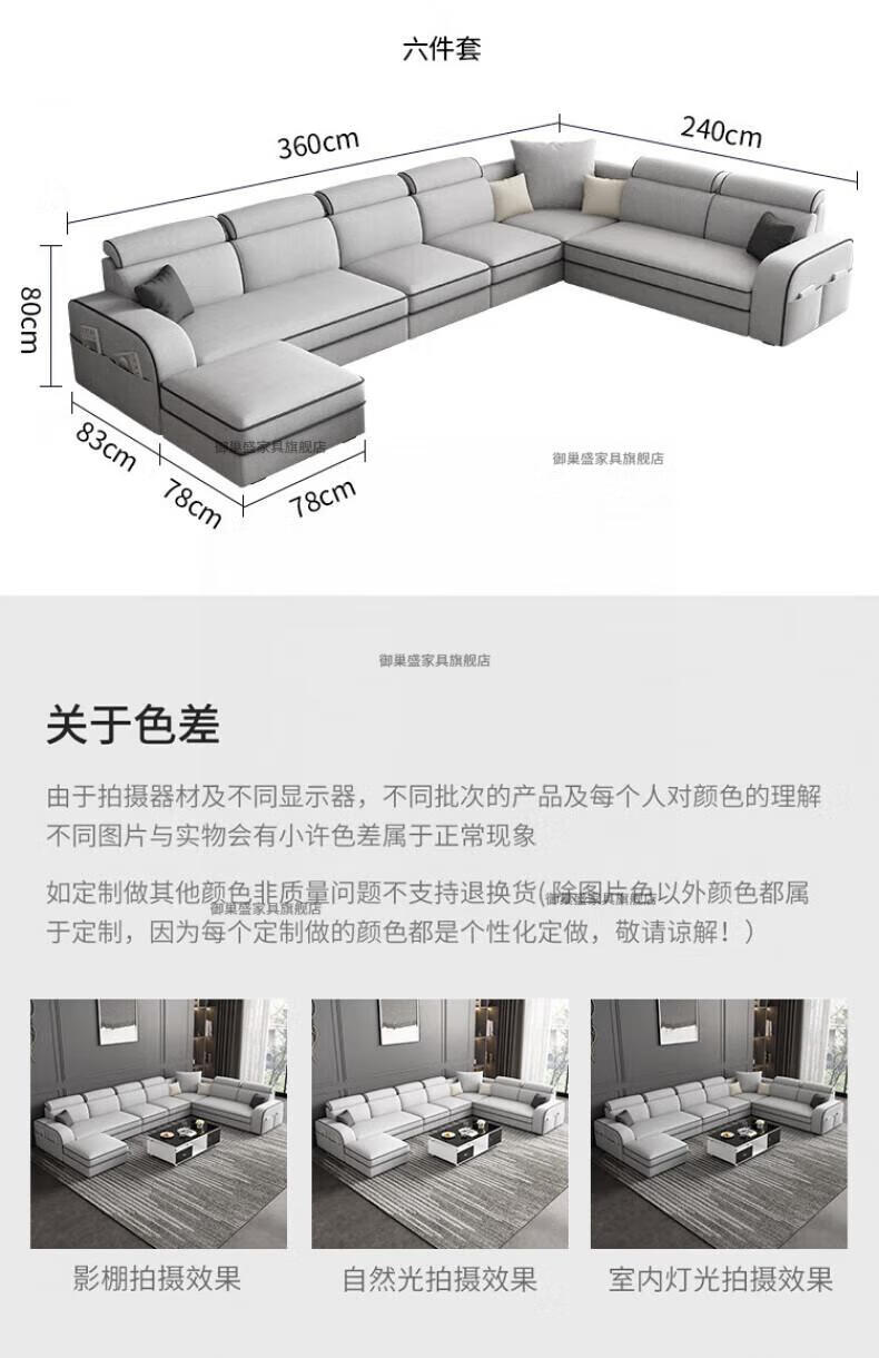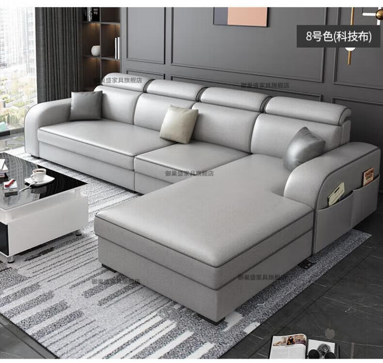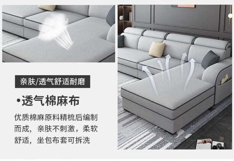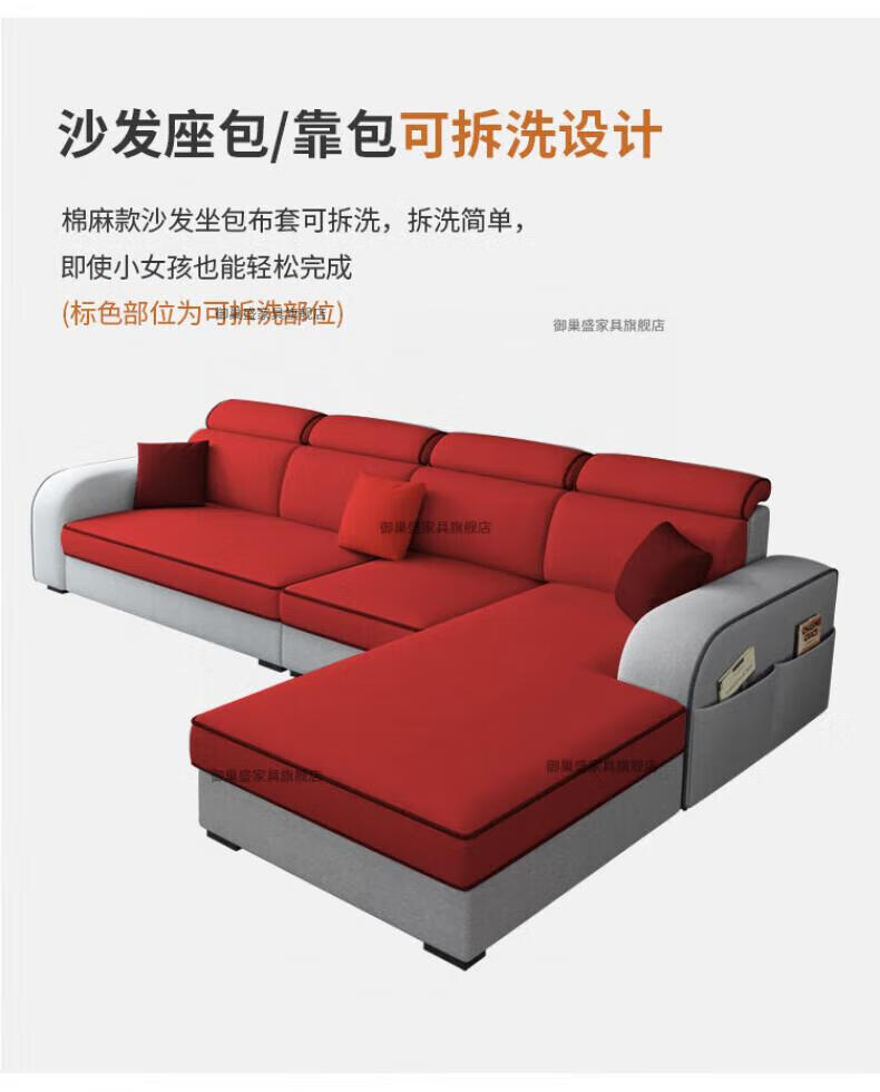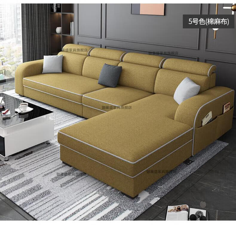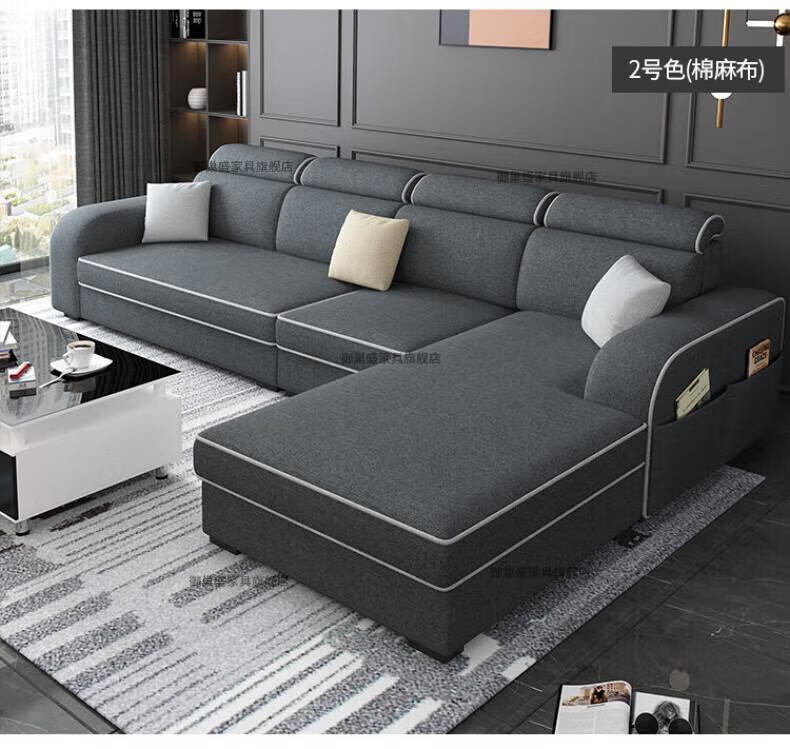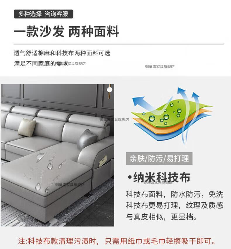 御巢盛2026新款沙发客厅小户型简北欧约现代家用科技布贵妃乳胶布艺沙发 四人位+贵妃版2.75米 亲肤棉麻布[高密度海绵款]