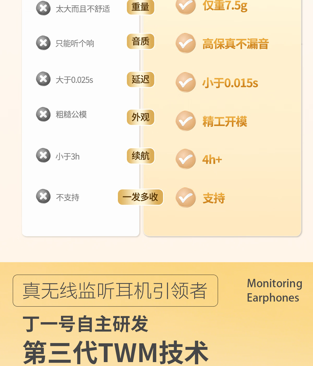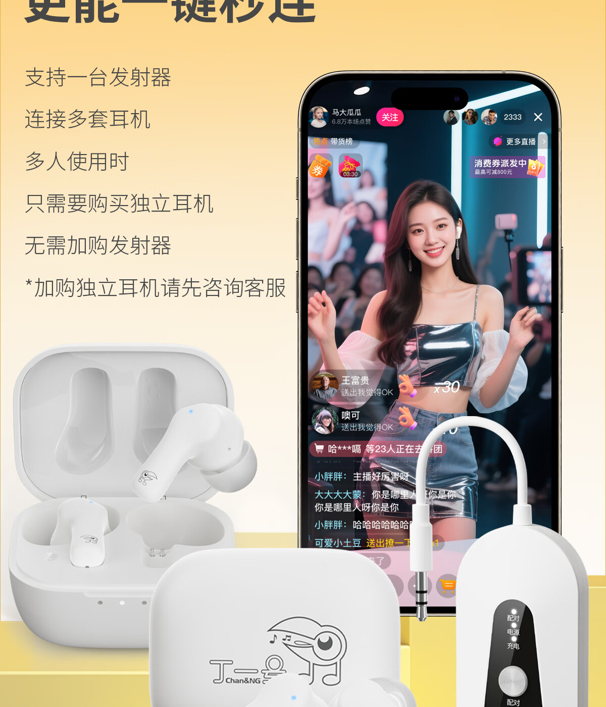 丁一号【真无线】G6三代无线监听直播耳机专业耳返耳机声卡唱歌监听入耳式直播舞蹈抖音网红带货户外便携 【三代 一拖一】1发射器+1对耳机