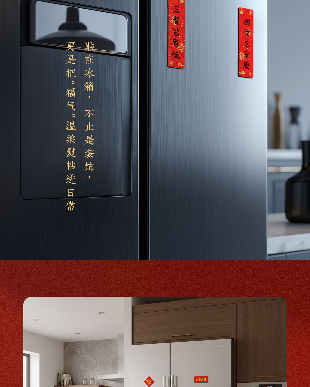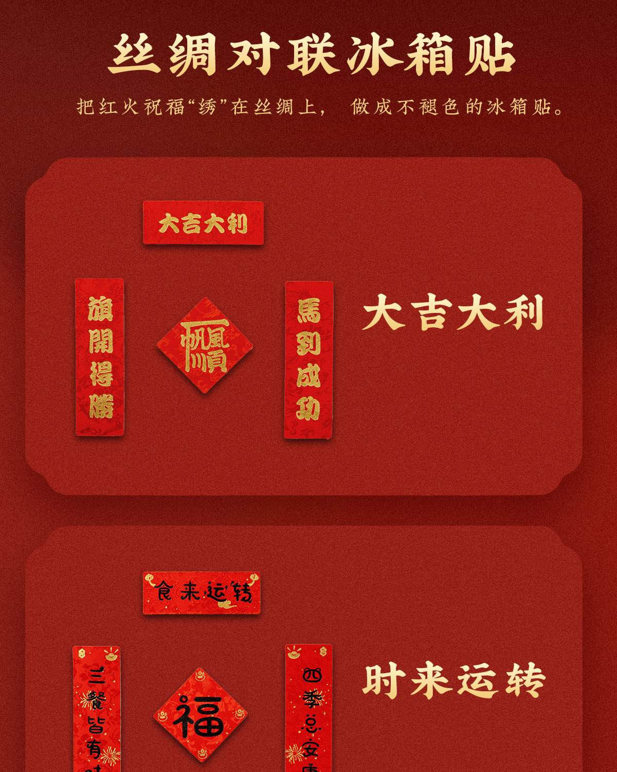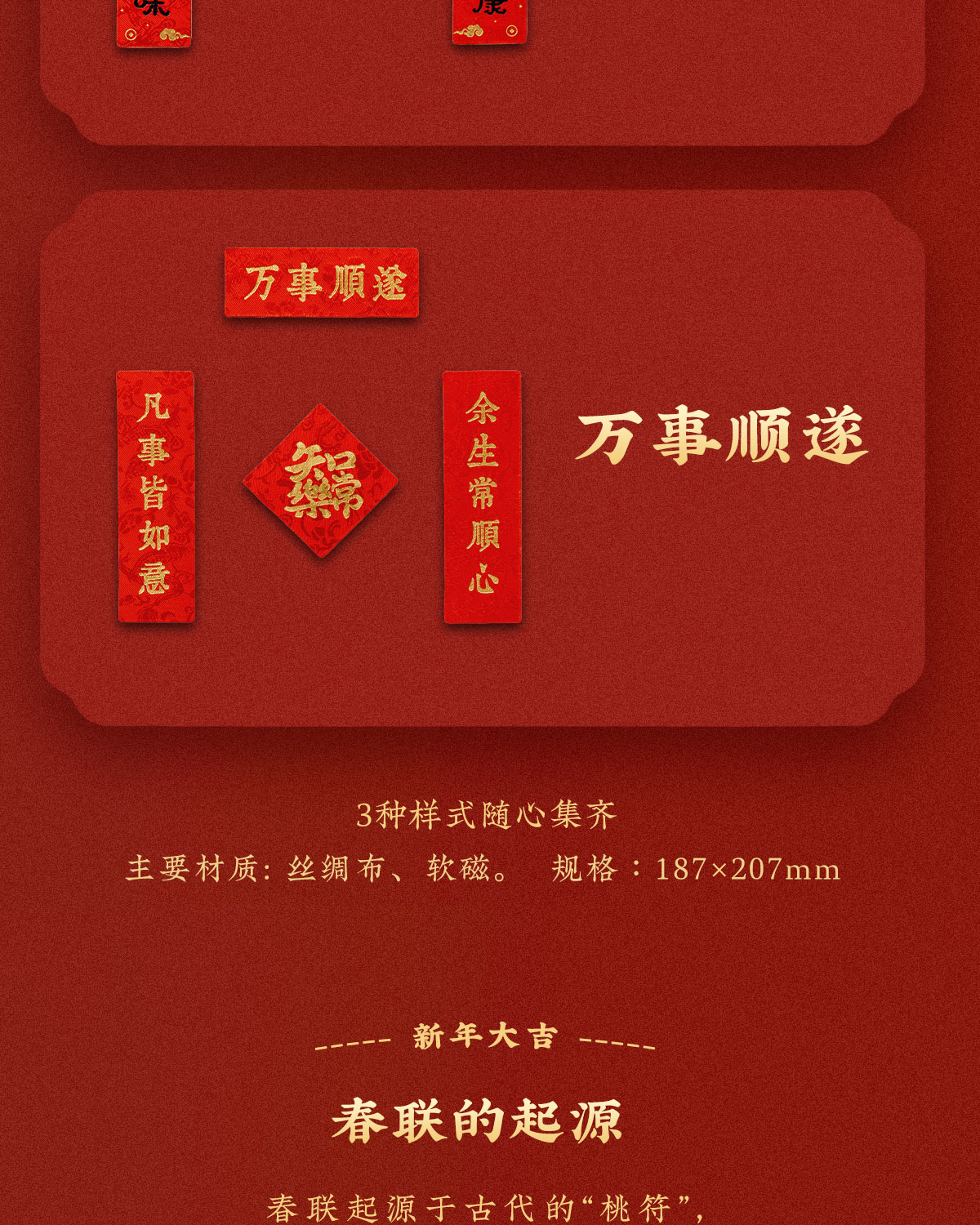 福人福地节庆用品 2026年新款 高颜值磁吸 小对联冰箱贴 丝绸对联冰箱贴 万事顺遂(丝绸冰箱贴)