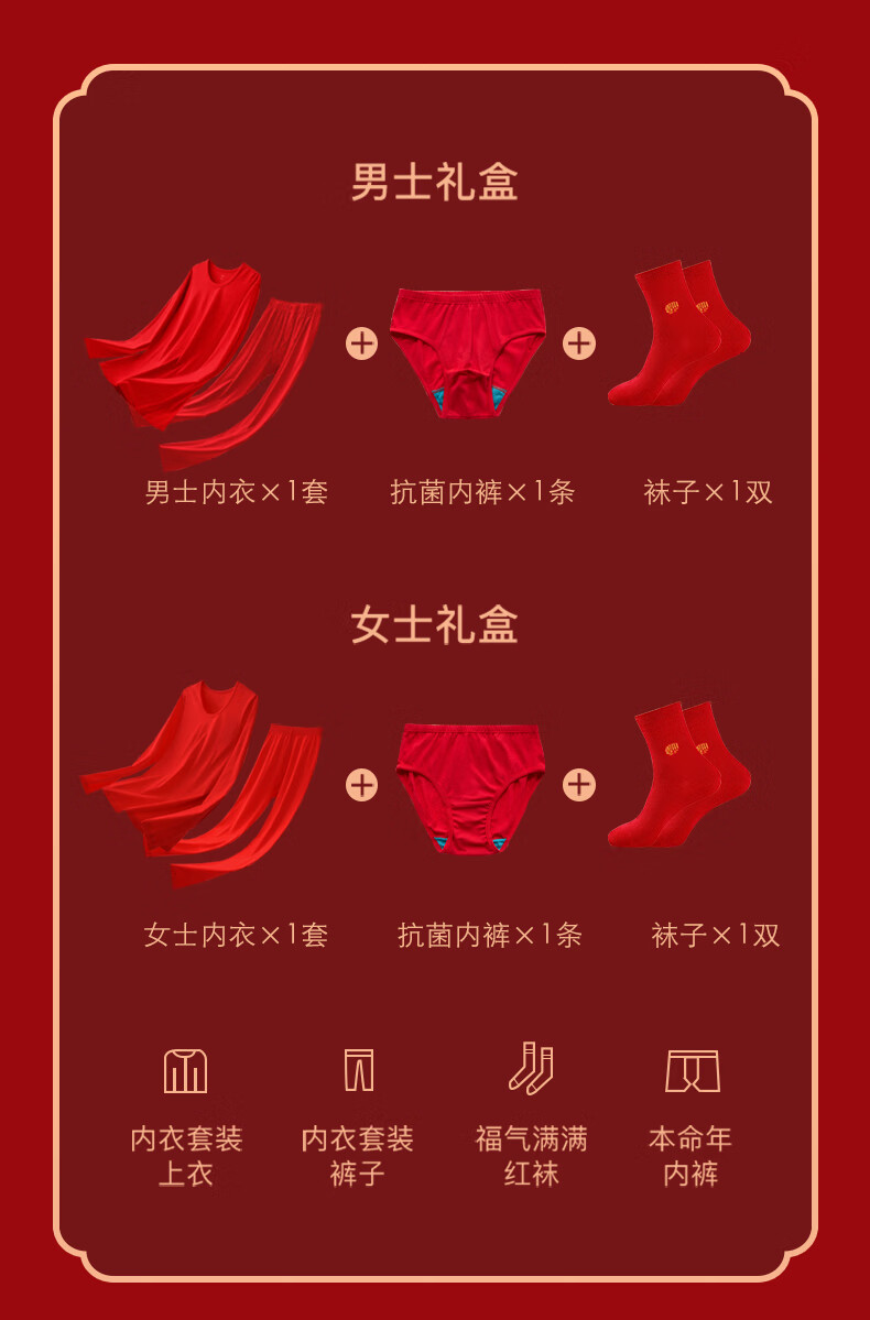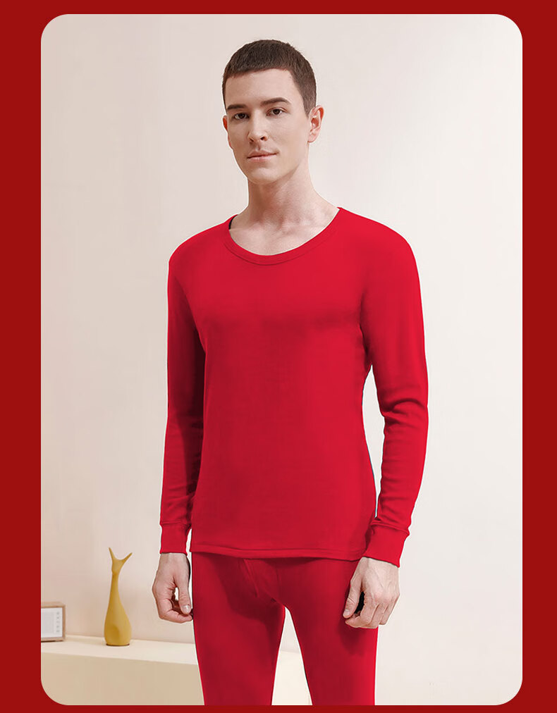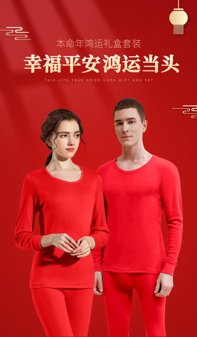 AB新年礼物秋冬情侣保暖秋衣秋裤女士男士本命年大红纯棉内衣礼盒款 大红(男款) 2XL