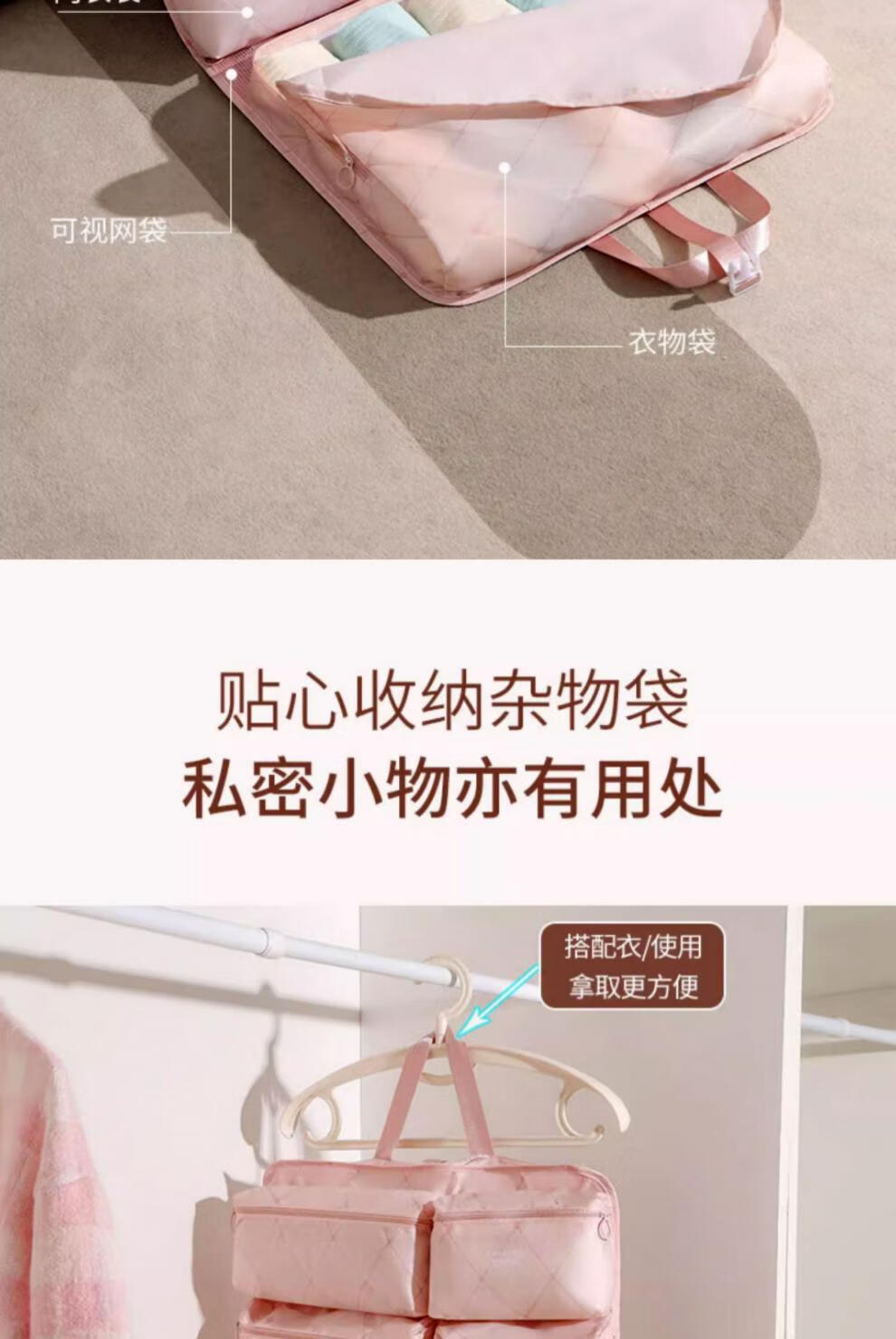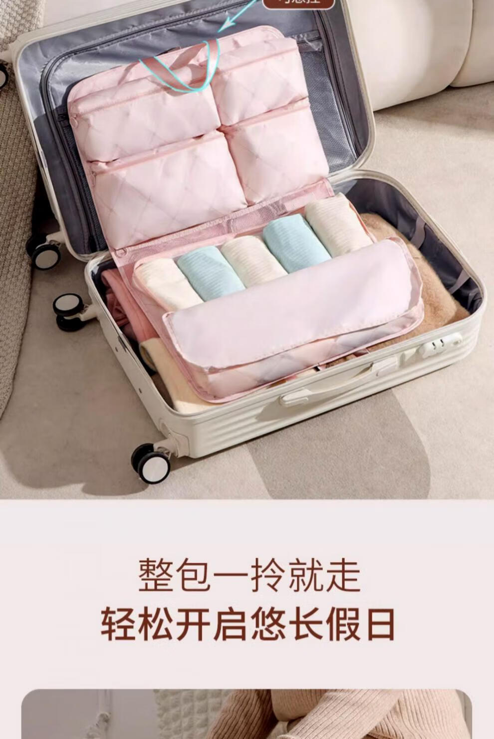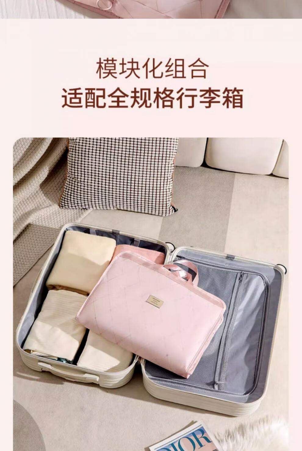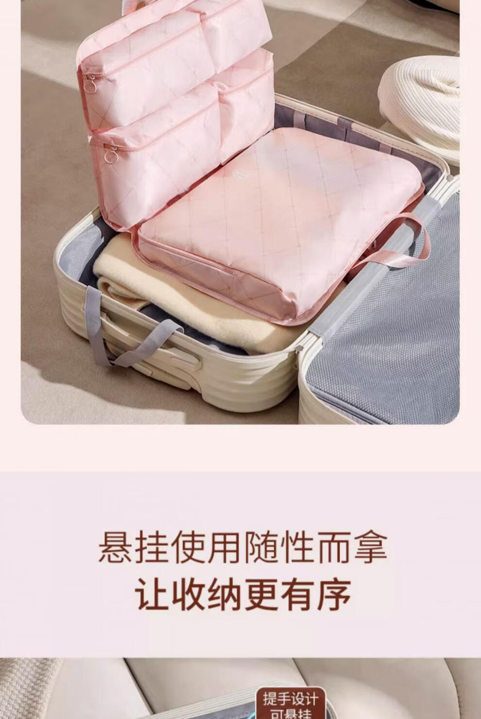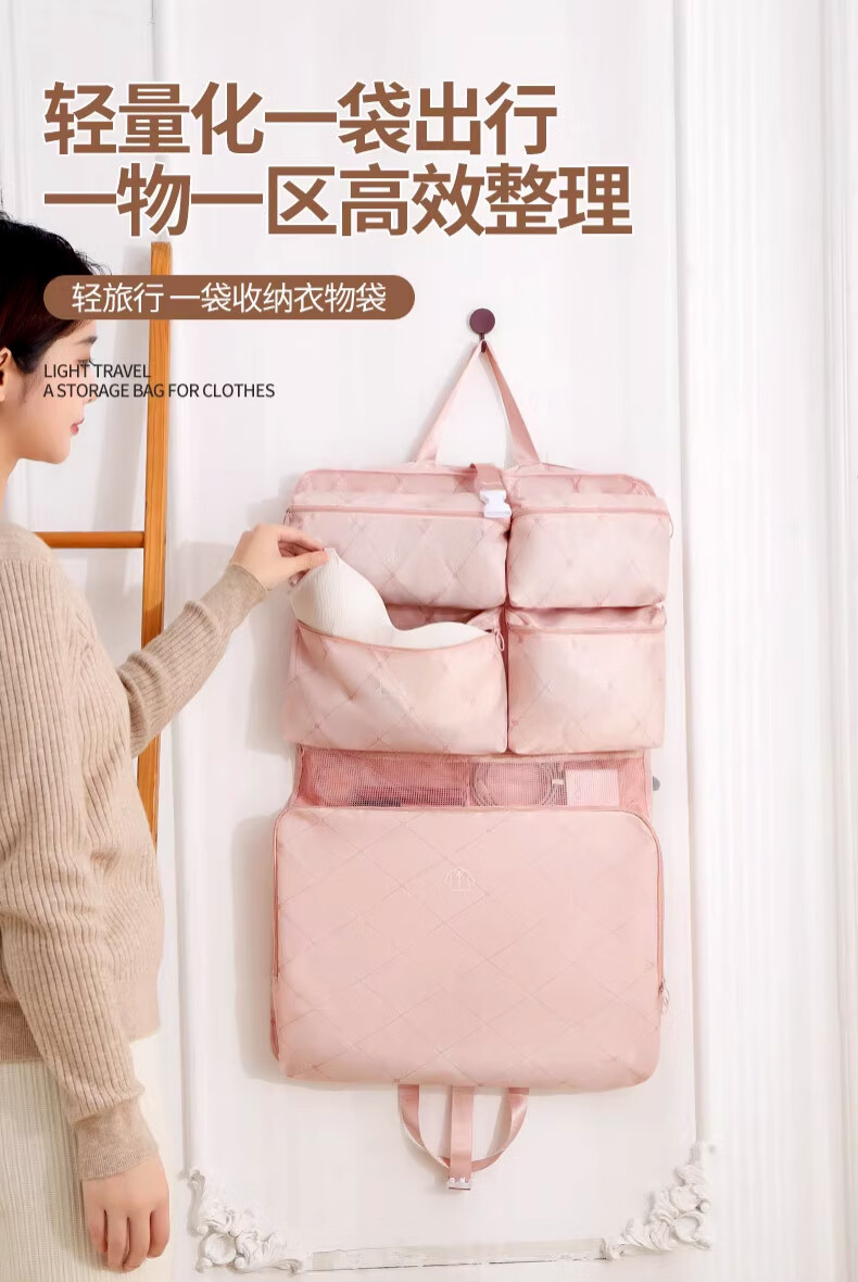 胖東来品质箱包收纳袋旅行行李箱衣服整理包出差旅游七合一衣物内 裸杏色-2.0压缩款可挂靠行李箱