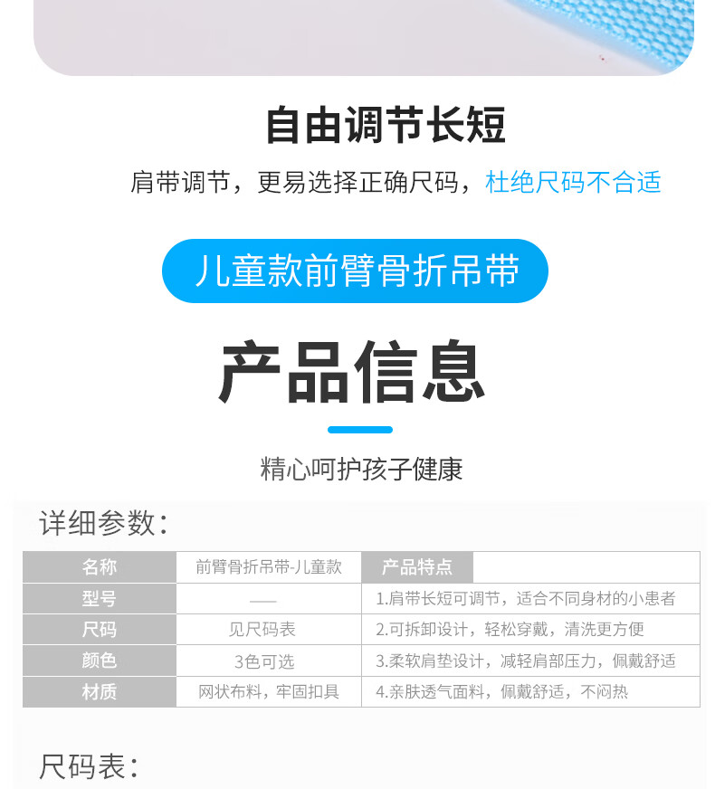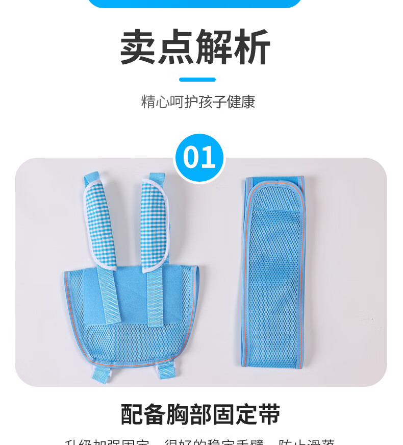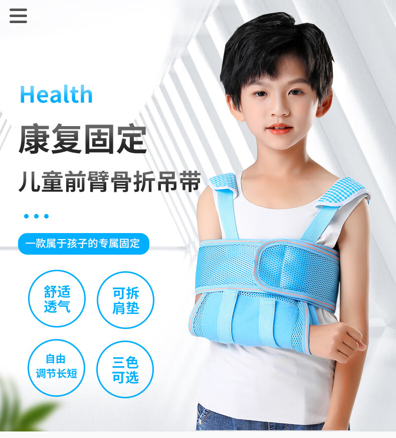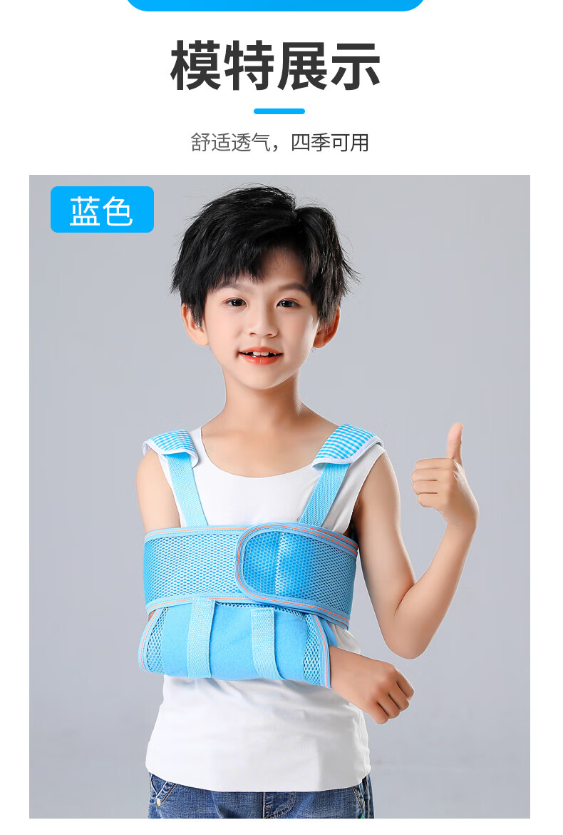 贝澳斯儿童手臂骨折前臂吊带胳膊脱臼固定带肩肘关节手腕托护具锁骨支具 蓝色 XL码【参考身高126-145cm】