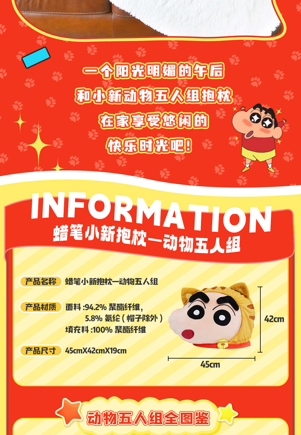 52TOYS 蜡笔小新 动物五人组毛绒抱枕 动漫周边礼物午睡枕摆件 动物五人组-阿呆