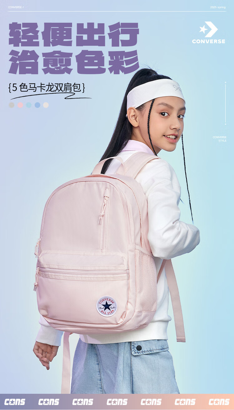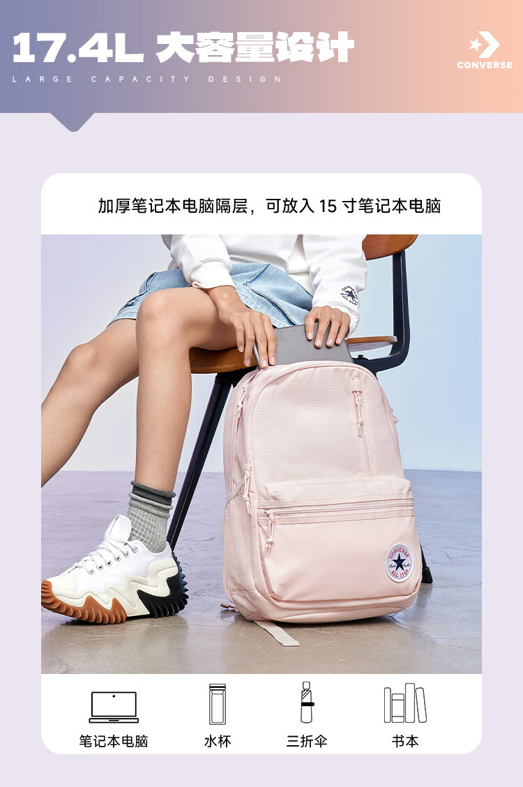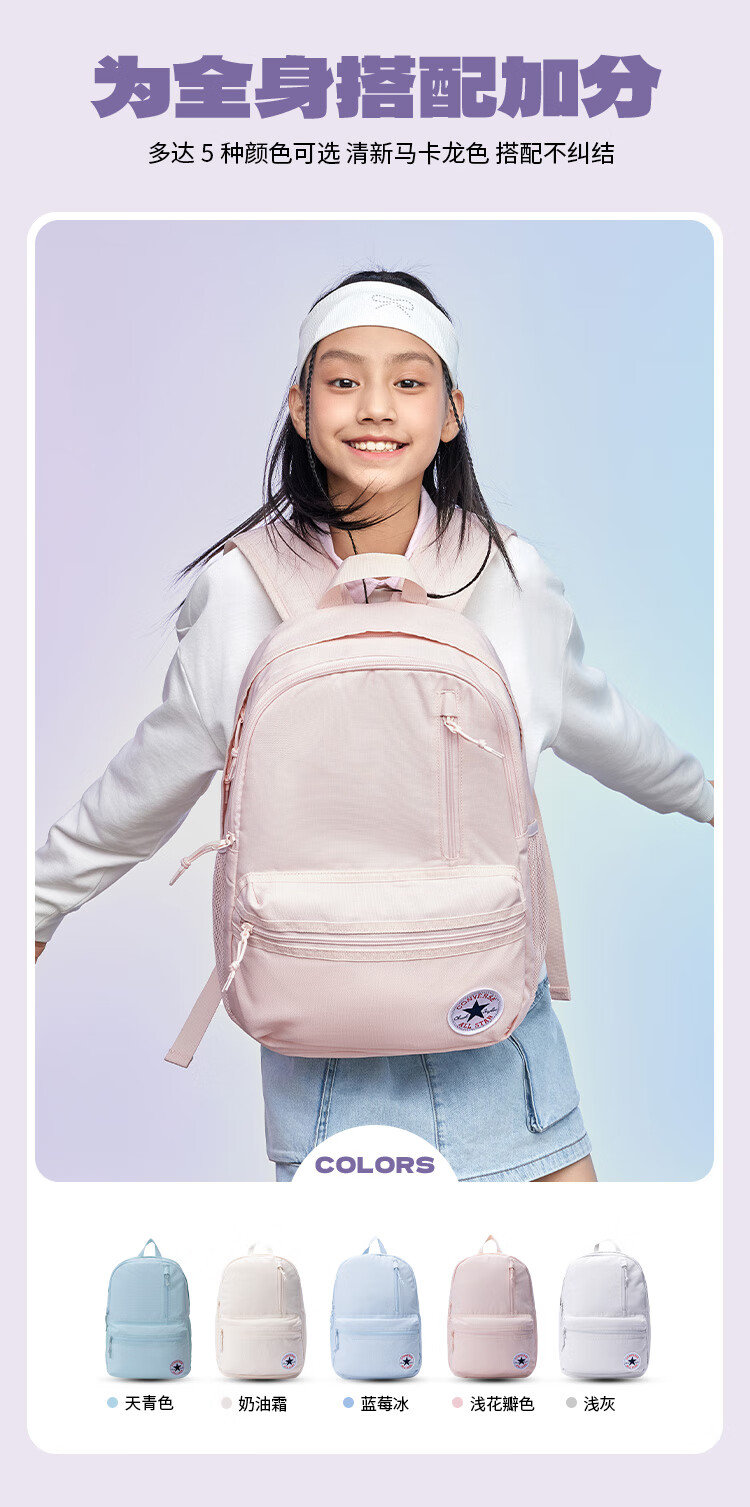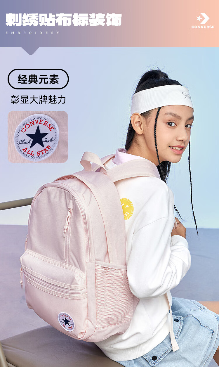 Converse匡威学生书包2025秋季经典升级款学生通勤大容量双肩包休闲书包 浅色花瓣 M【30*13.5*43cm 约17L】