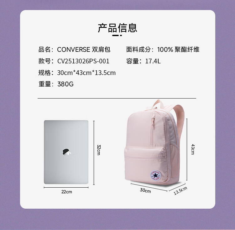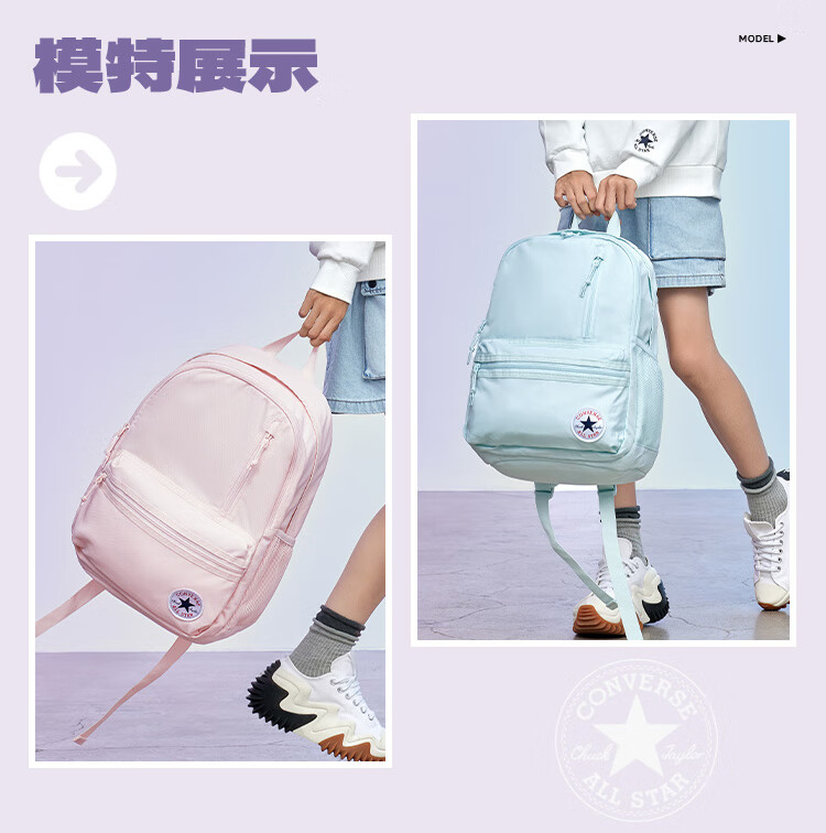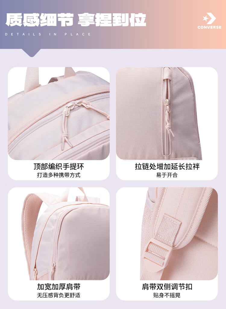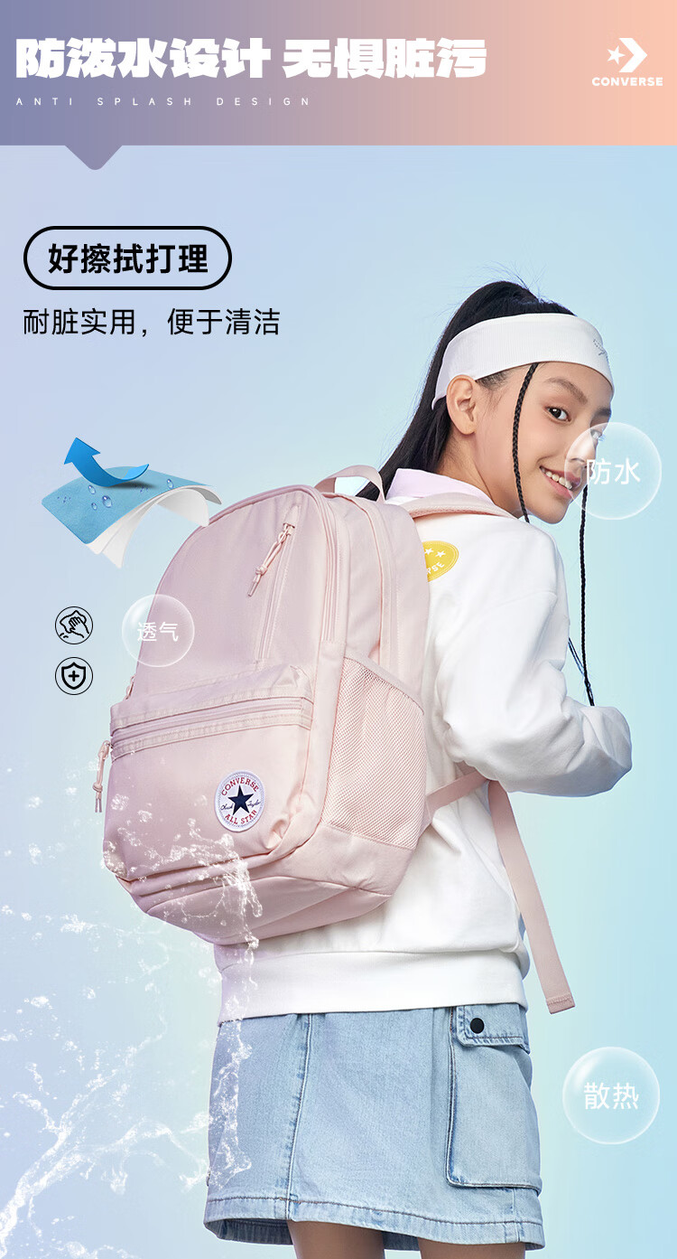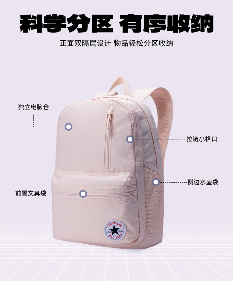 Converse匡威学生书包2025秋季经典升级款学生通勤大容量双肩包休闲书包 浅色花瓣 M【30*13.5*43cm 约17L】