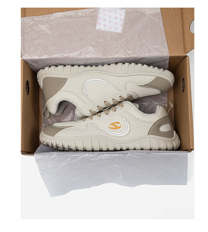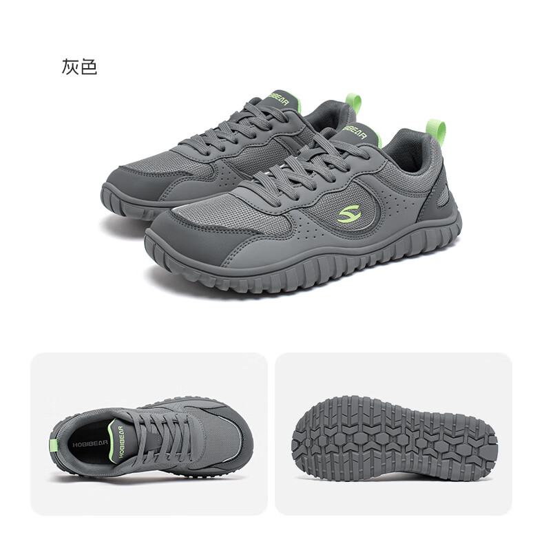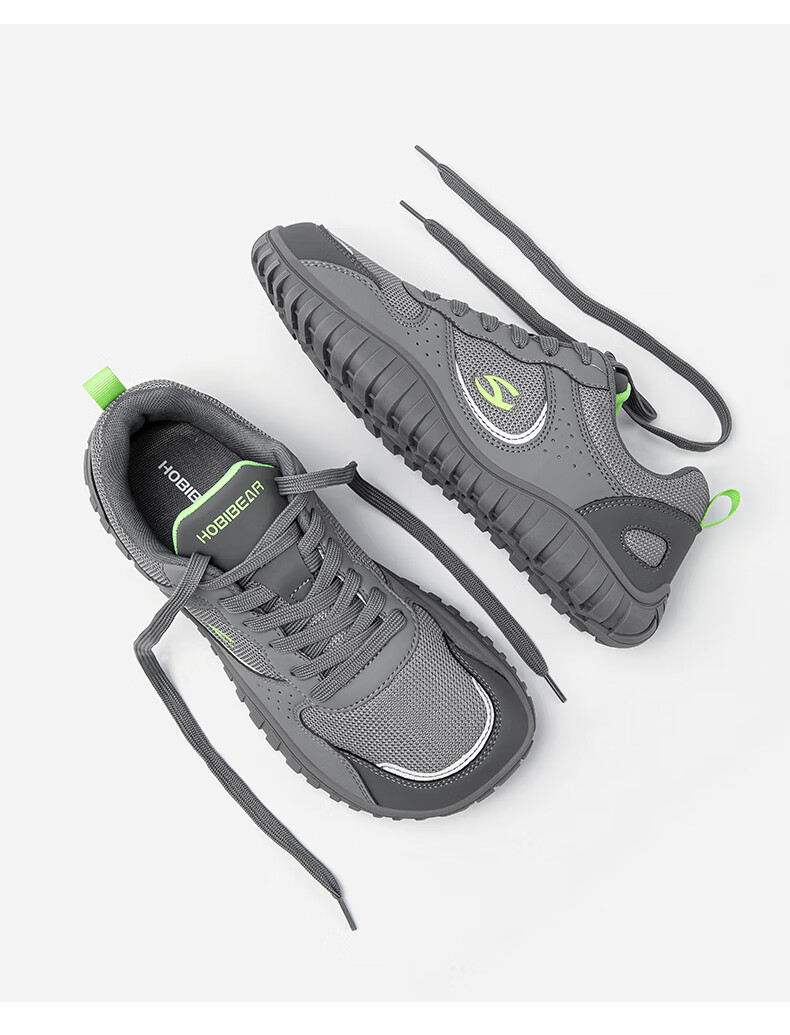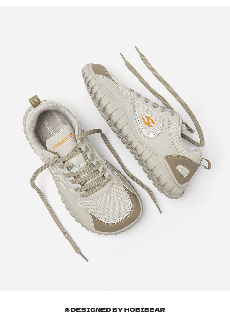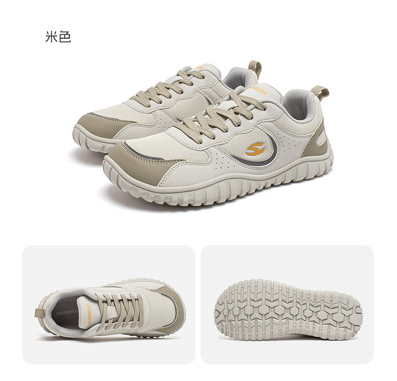 HOBIBEAR秋季新款男鞋宽头鞋运动鞋网面男士赤足鞋开车平步鞋 米色(皮面款) 46