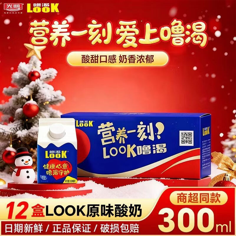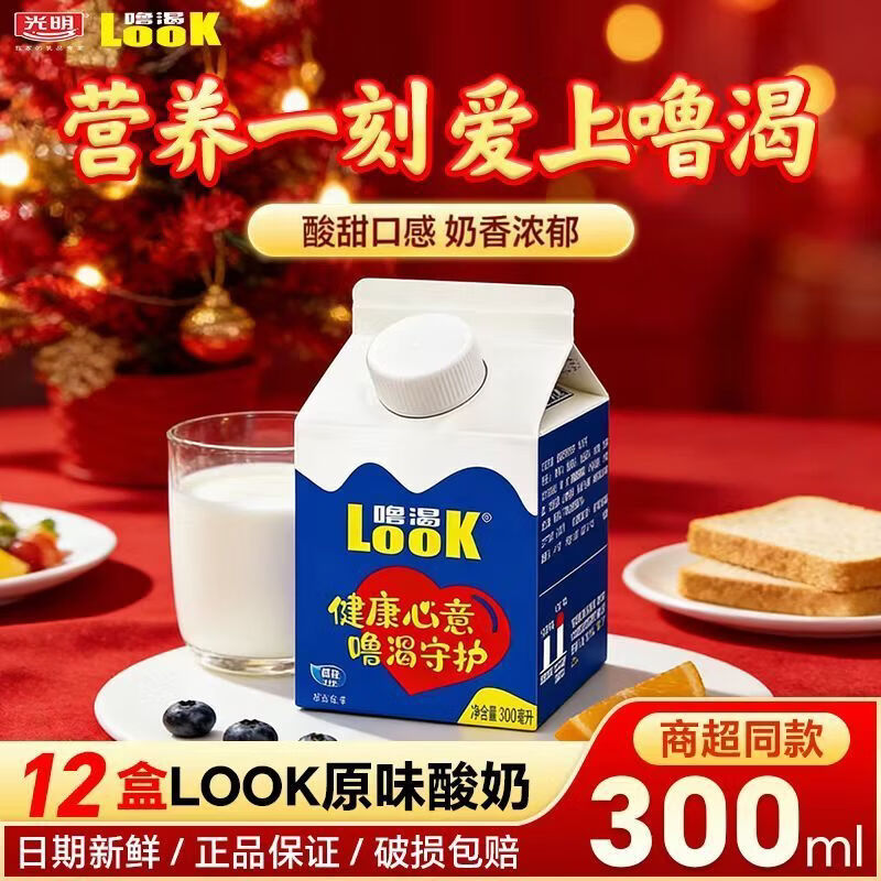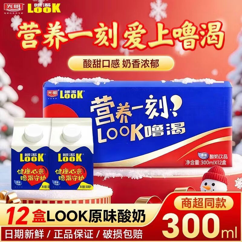 光明【12盒】光明噜渴LOOK常温原味酸奶早餐酸牛奶饮品300ml整箱12月 【一整箱12瓶】+原箱发货/蓝色礼盒装 新鲜日期