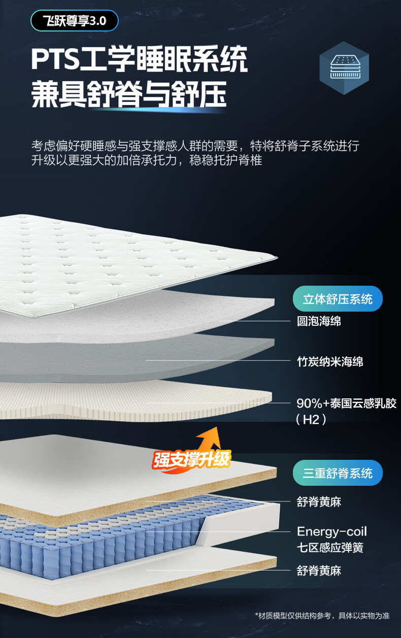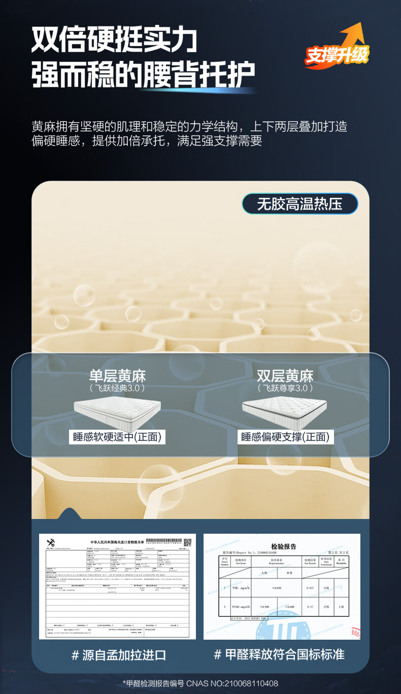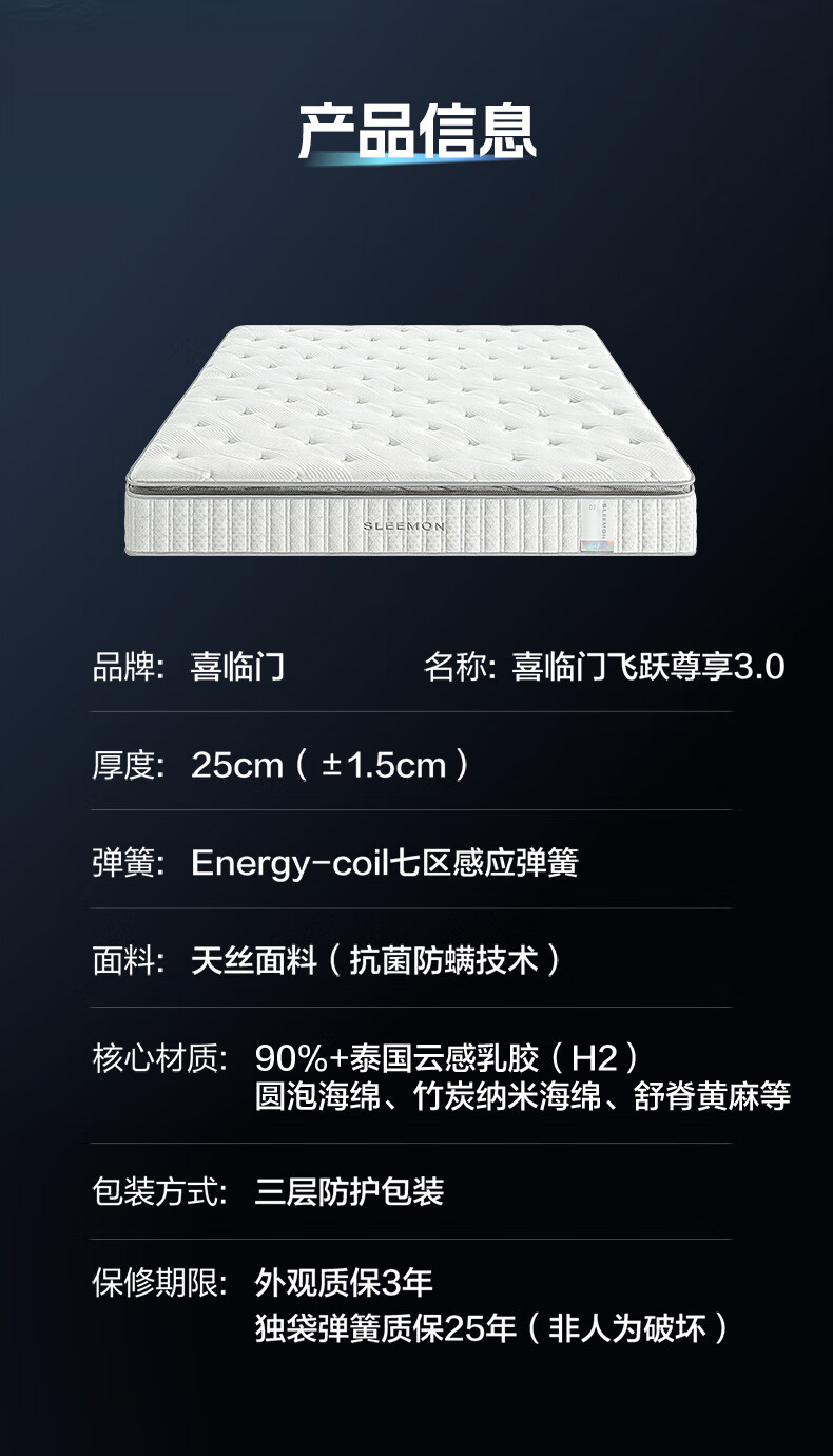 喜临门【线下同款】乳胶黄麻七区弹簧床垫 飞跃尊享3.0 1.8*2米 偏硬