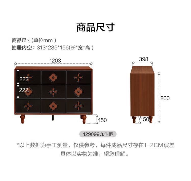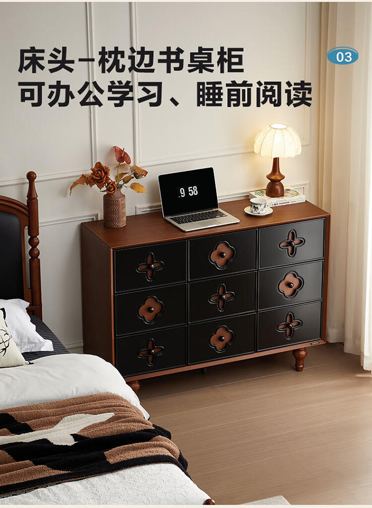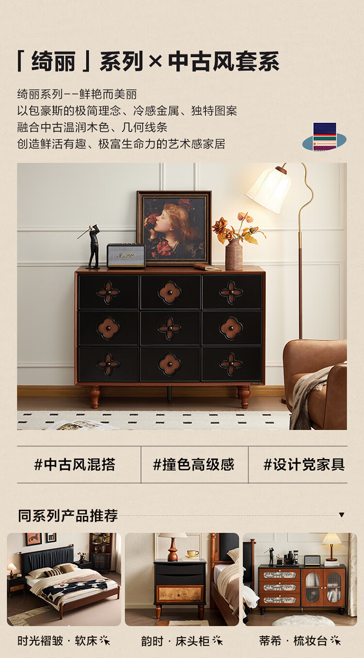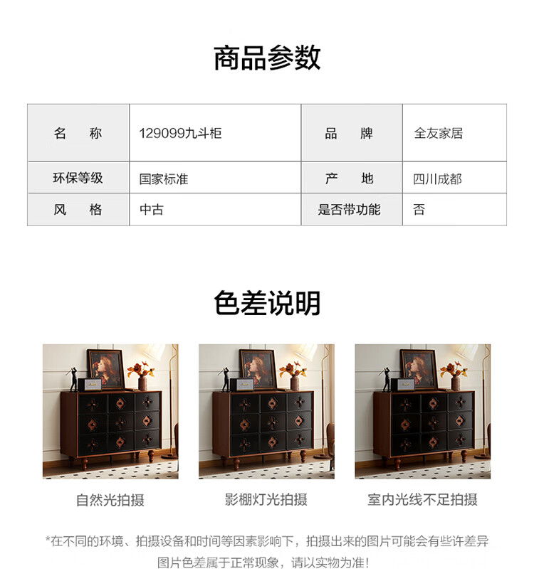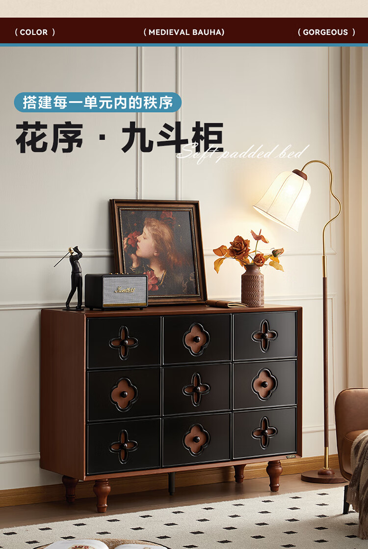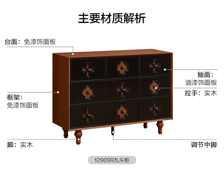全友家居中古风九斗柜餐边柜收纳柜床尾柜置物收纳小柜子玄关柜杂物柜 【中古风】九斗柜