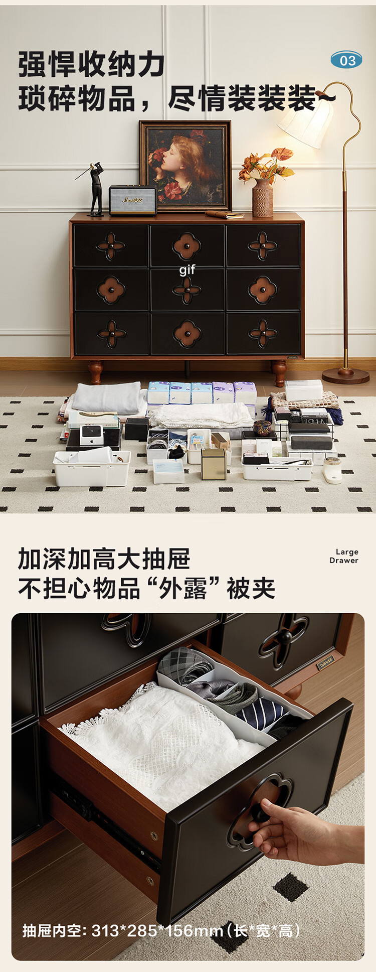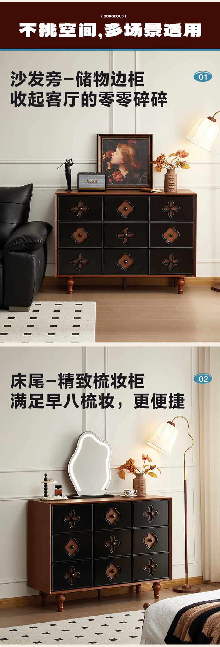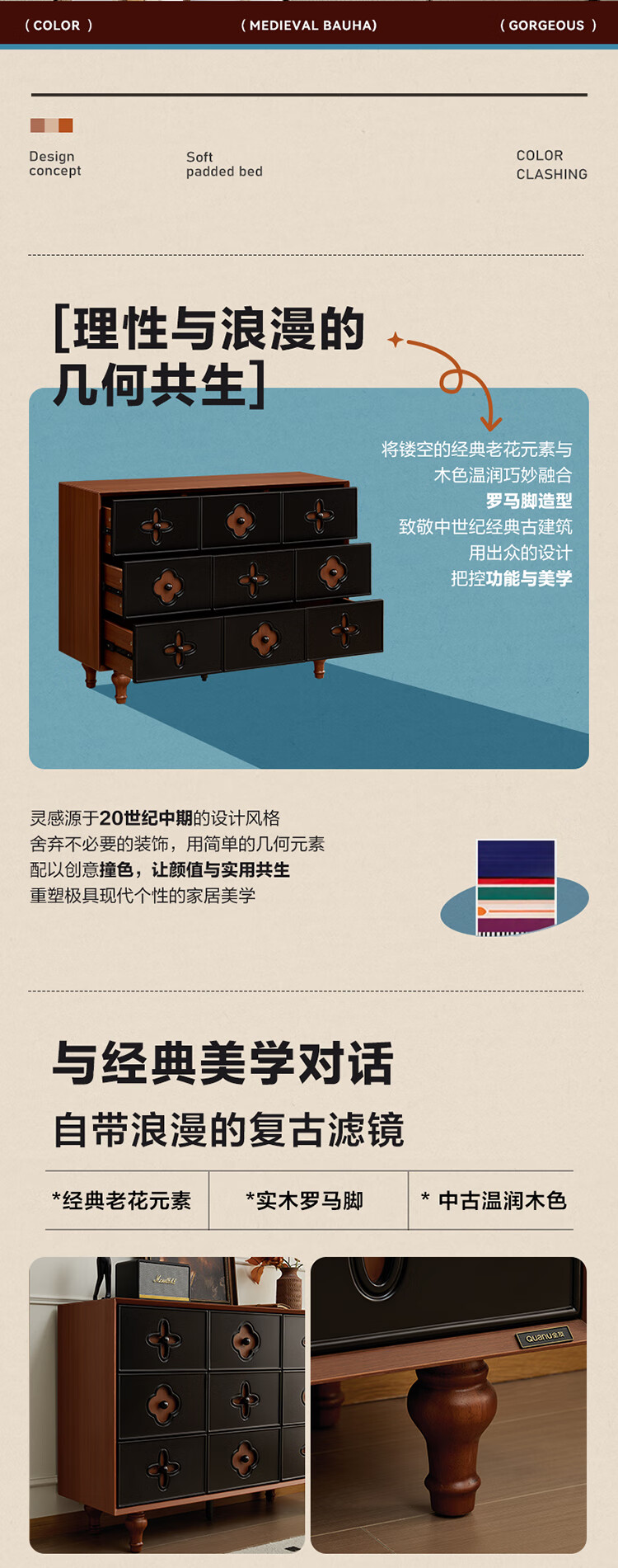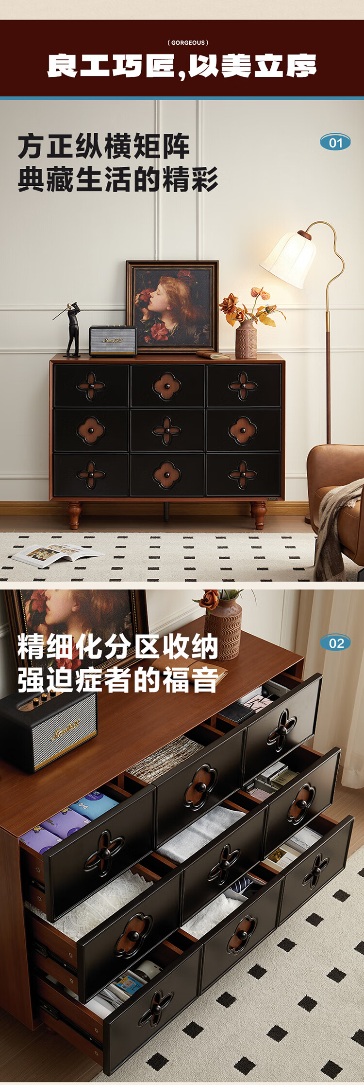 全友家居中古风九斗柜餐边柜收纳柜床尾柜置物收纳小柜子玄关柜杂物柜 【中古风】九斗柜