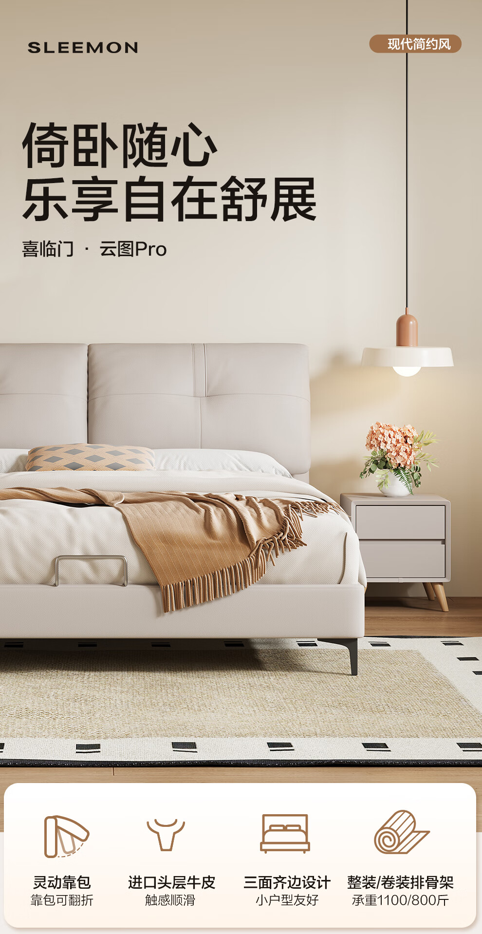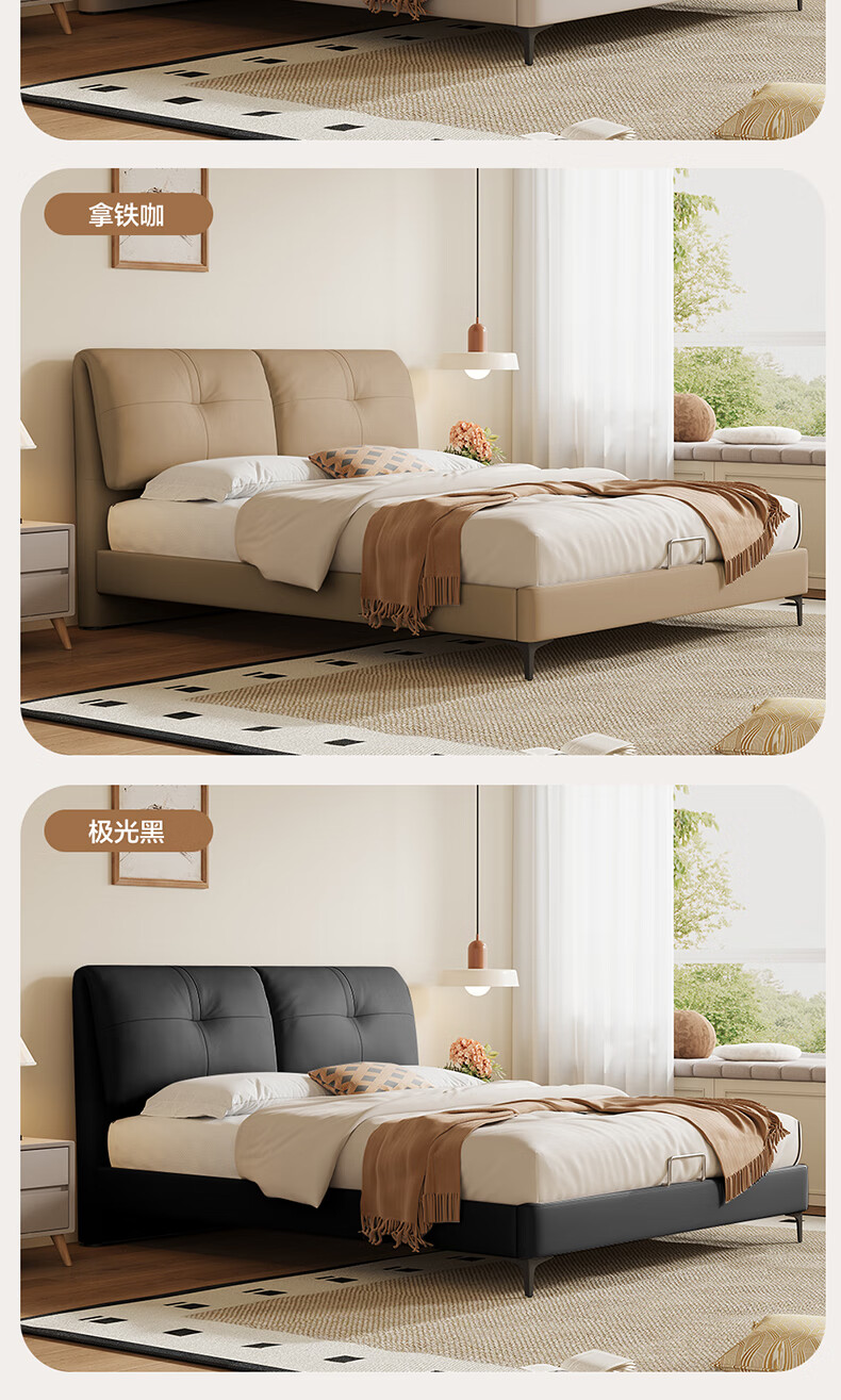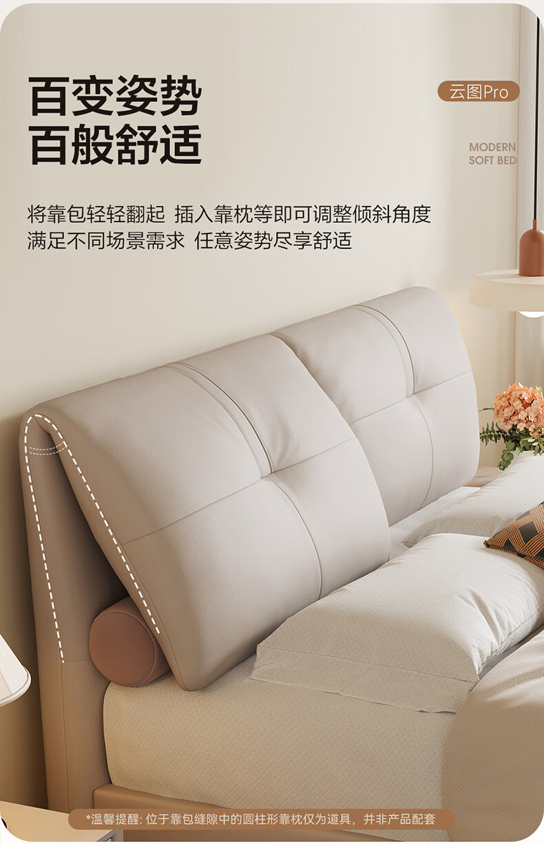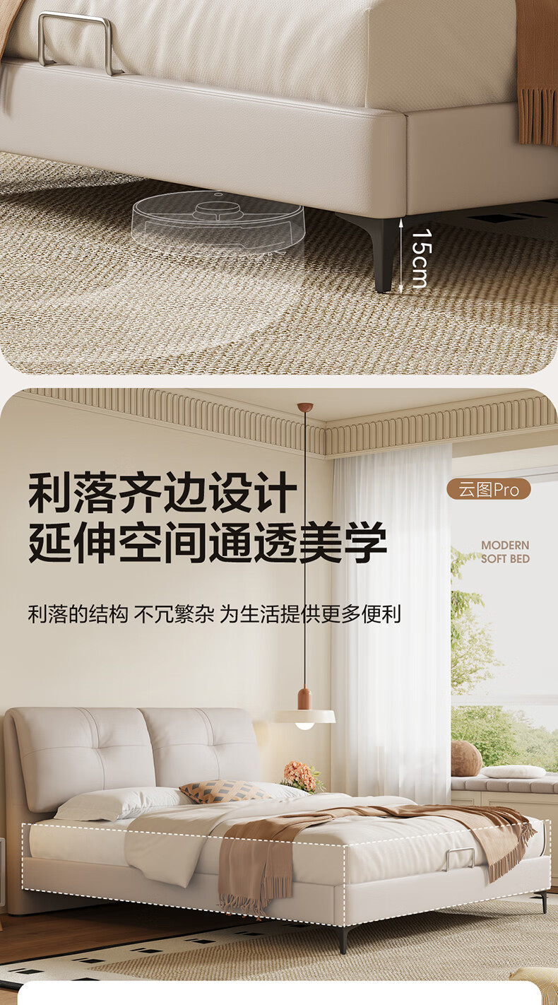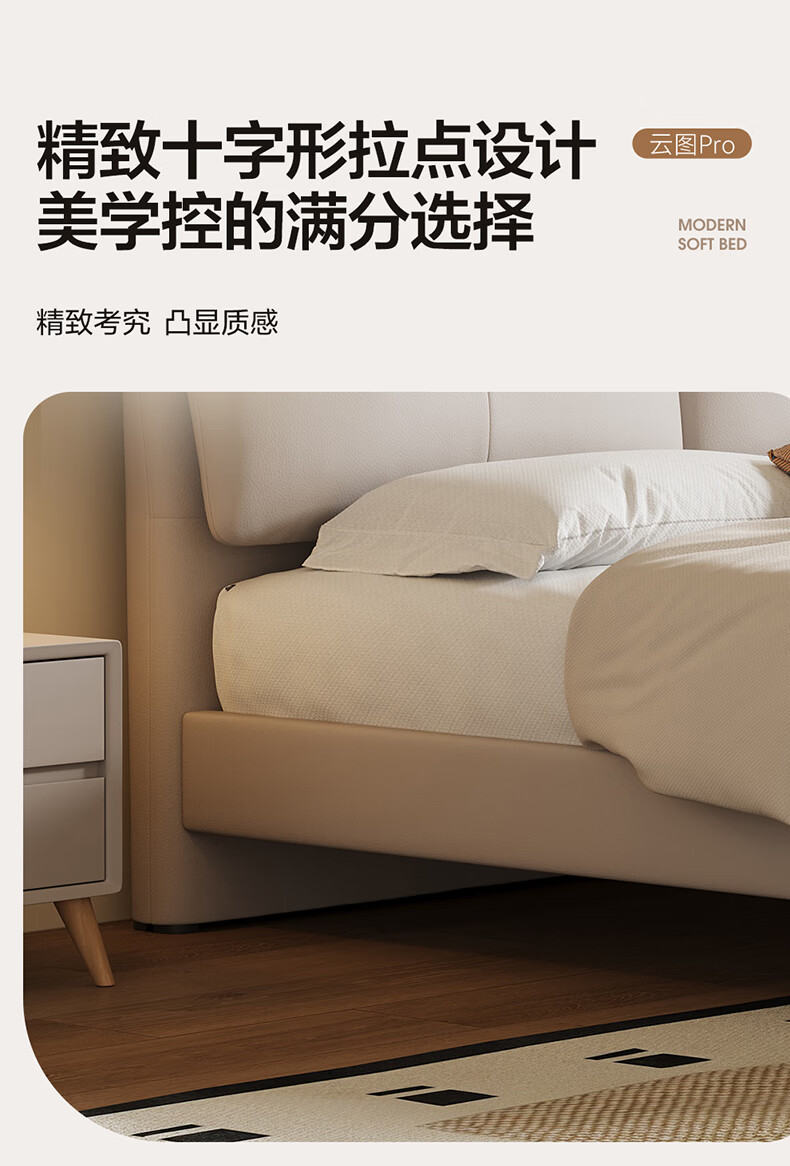 喜临门真皮双人大床主次卧婚床现代简约【云图pro-储物款】[床架] 云雾米+白骑士plus床垫 1.8*2米