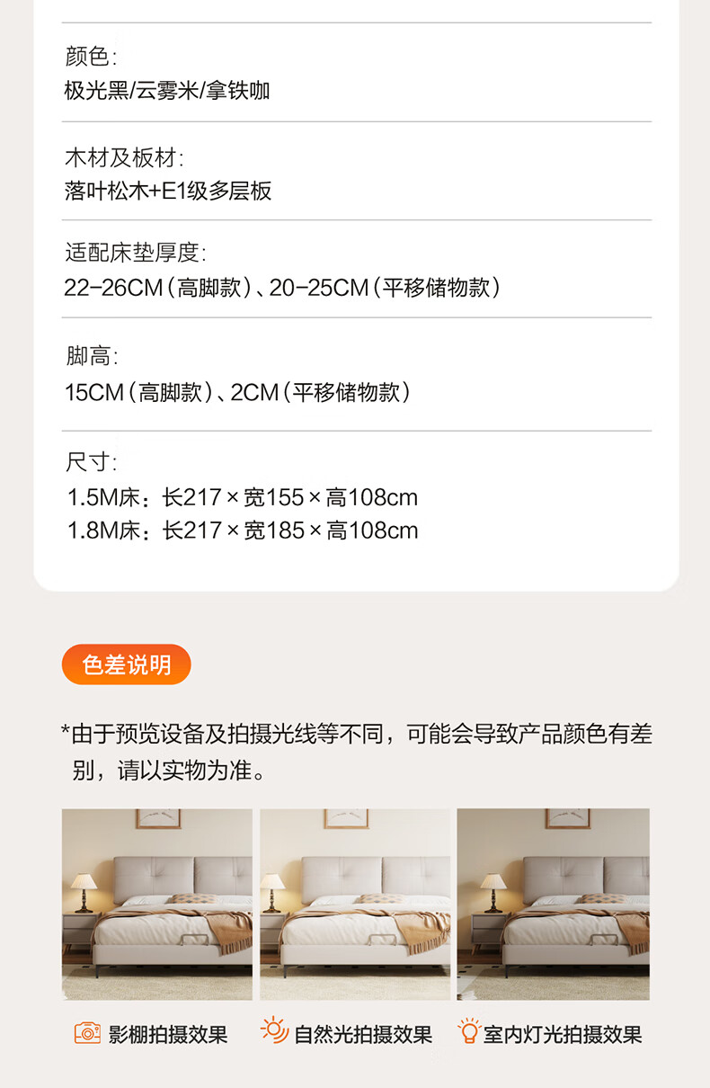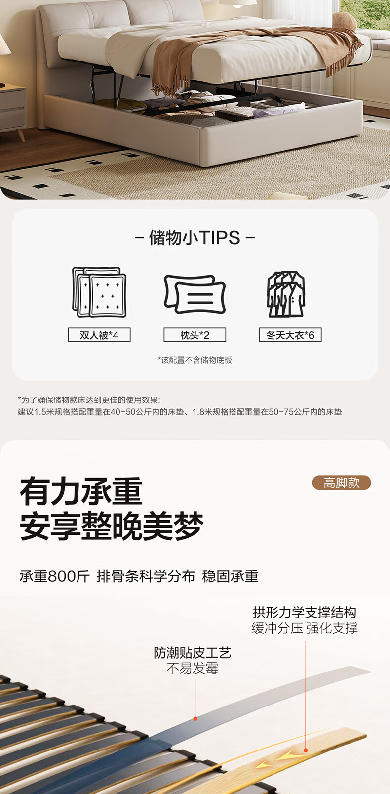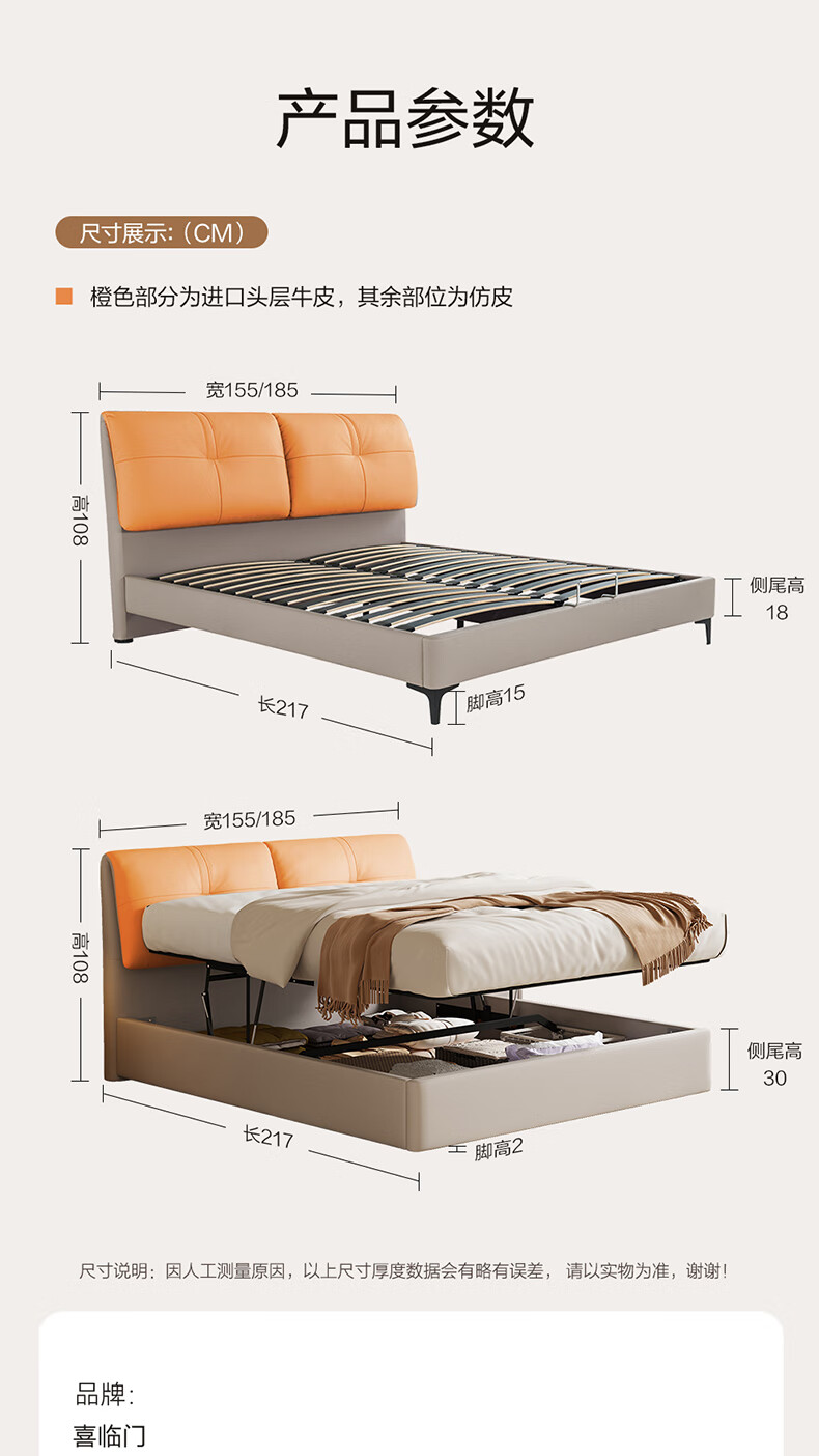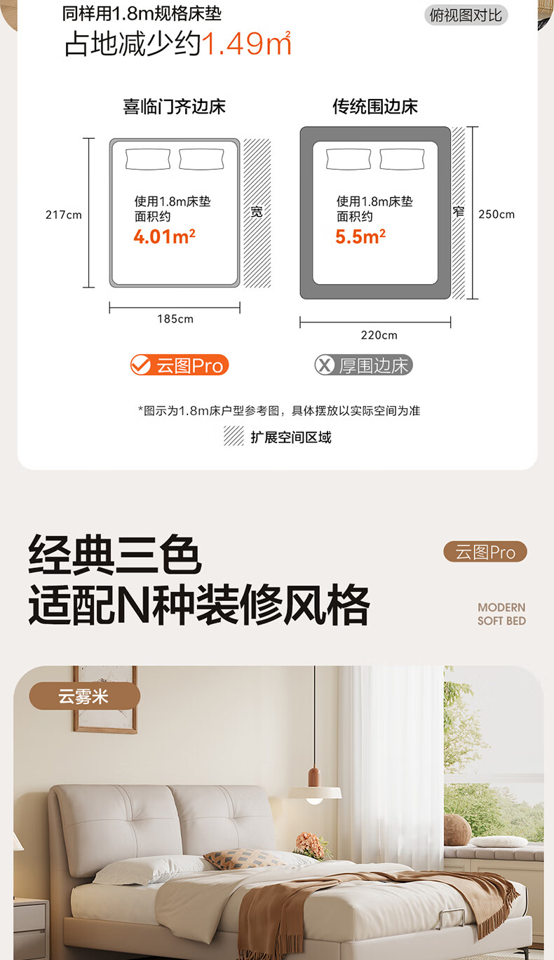 喜临门真皮双人大床主次卧婚床现代简约【云图pro-储物款】[床架] 云雾米+白骑士plus床垫 1.8*2米