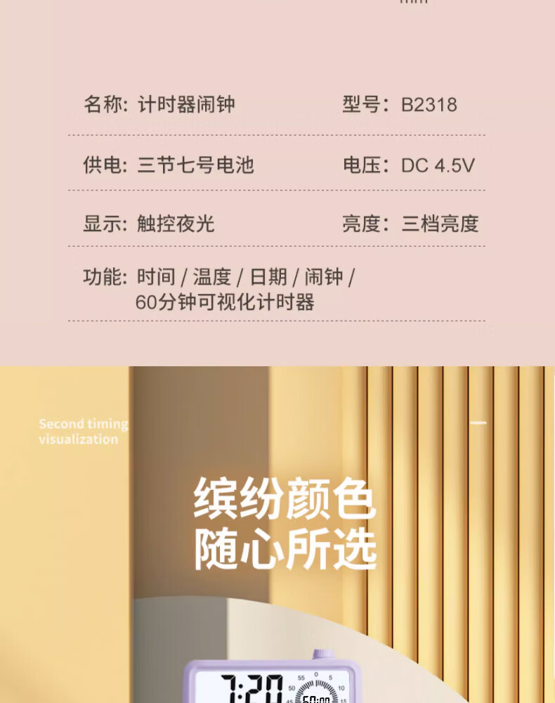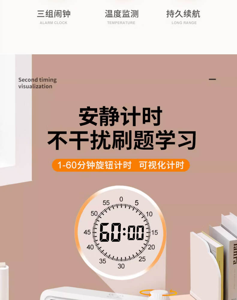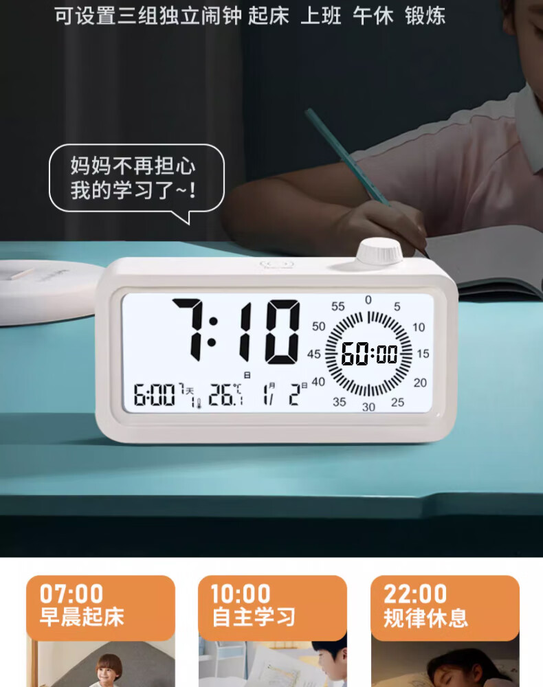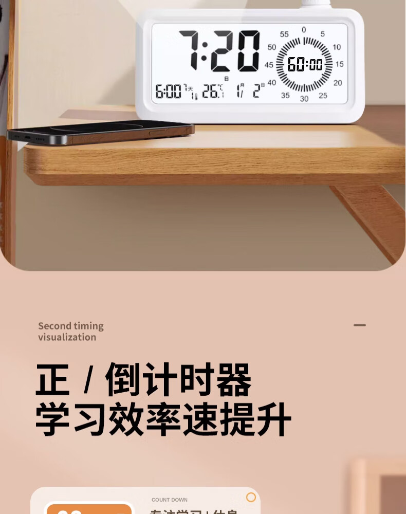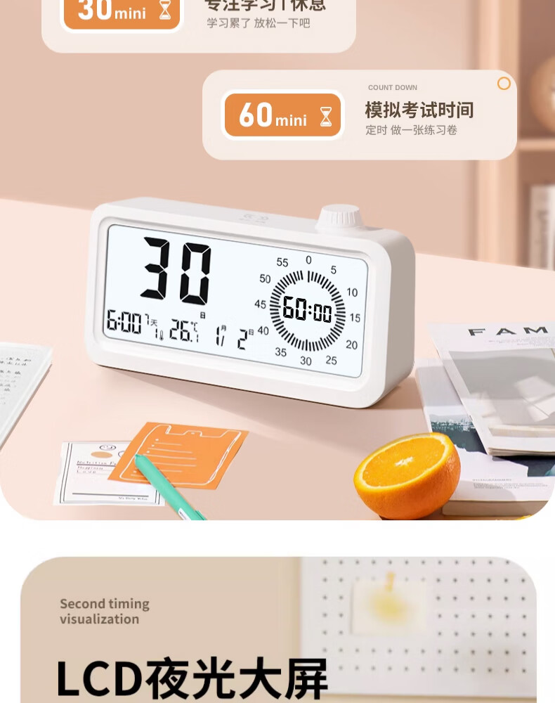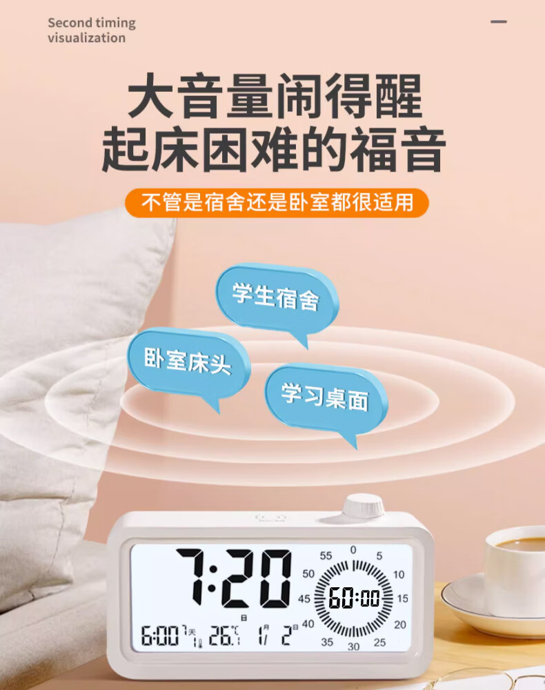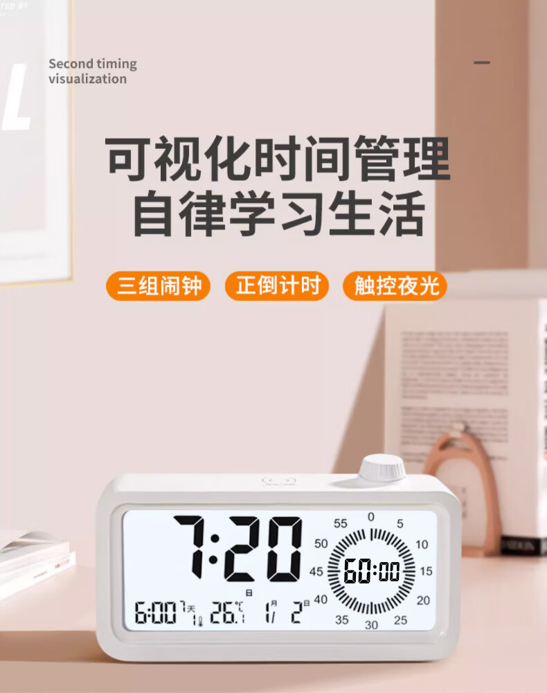 Timess可视化计时器学生儿童专用倒计时智能电子闹钟多功能时间管理器直播间计时器