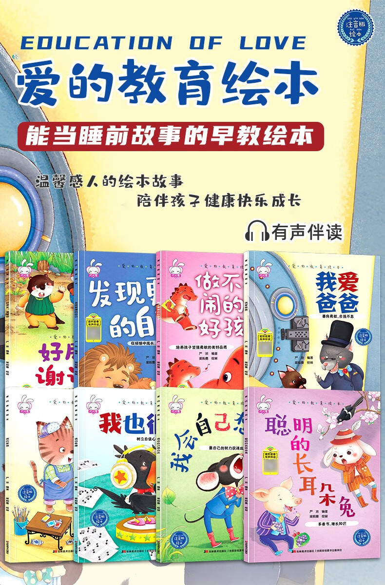 爱的教育绘本 全8册 带拼音儿童故事书 3-6岁阅读亲子睡前故事早教爱的教育 幼儿园宝宝情商管理扫码有声读物