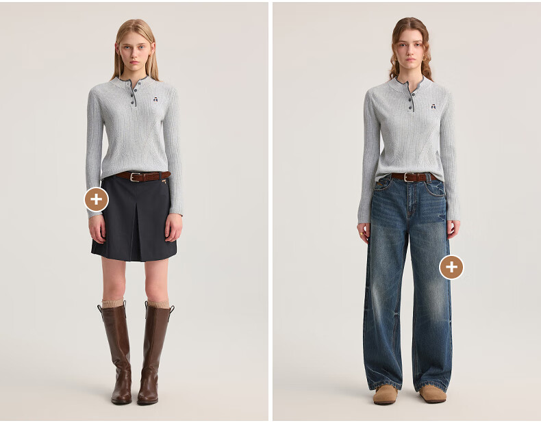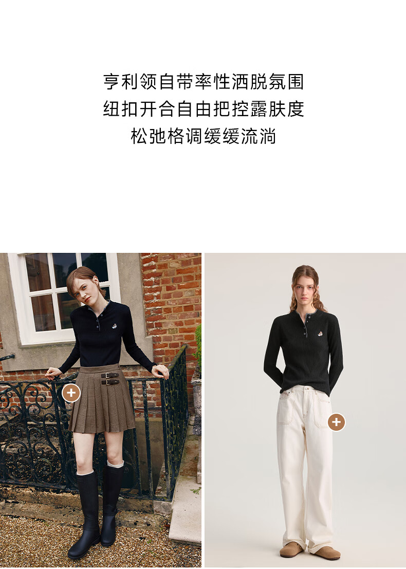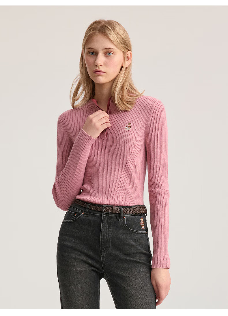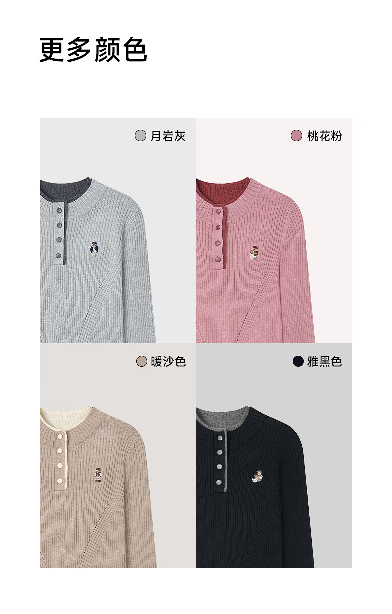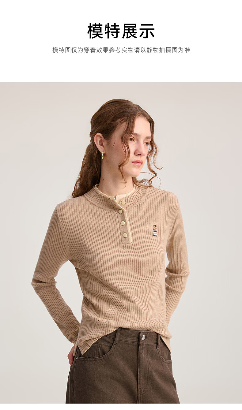 Teenie Weenie小熊女装毛针织衫2025秋新款休闲撞色亨利领套头毛衣 中灰色 S