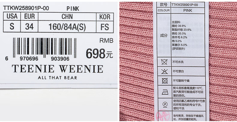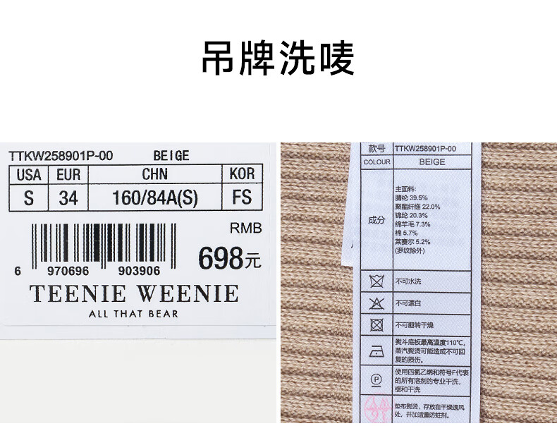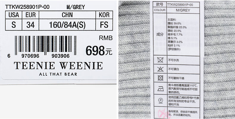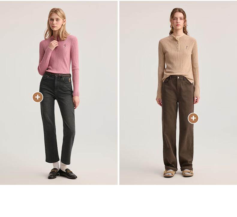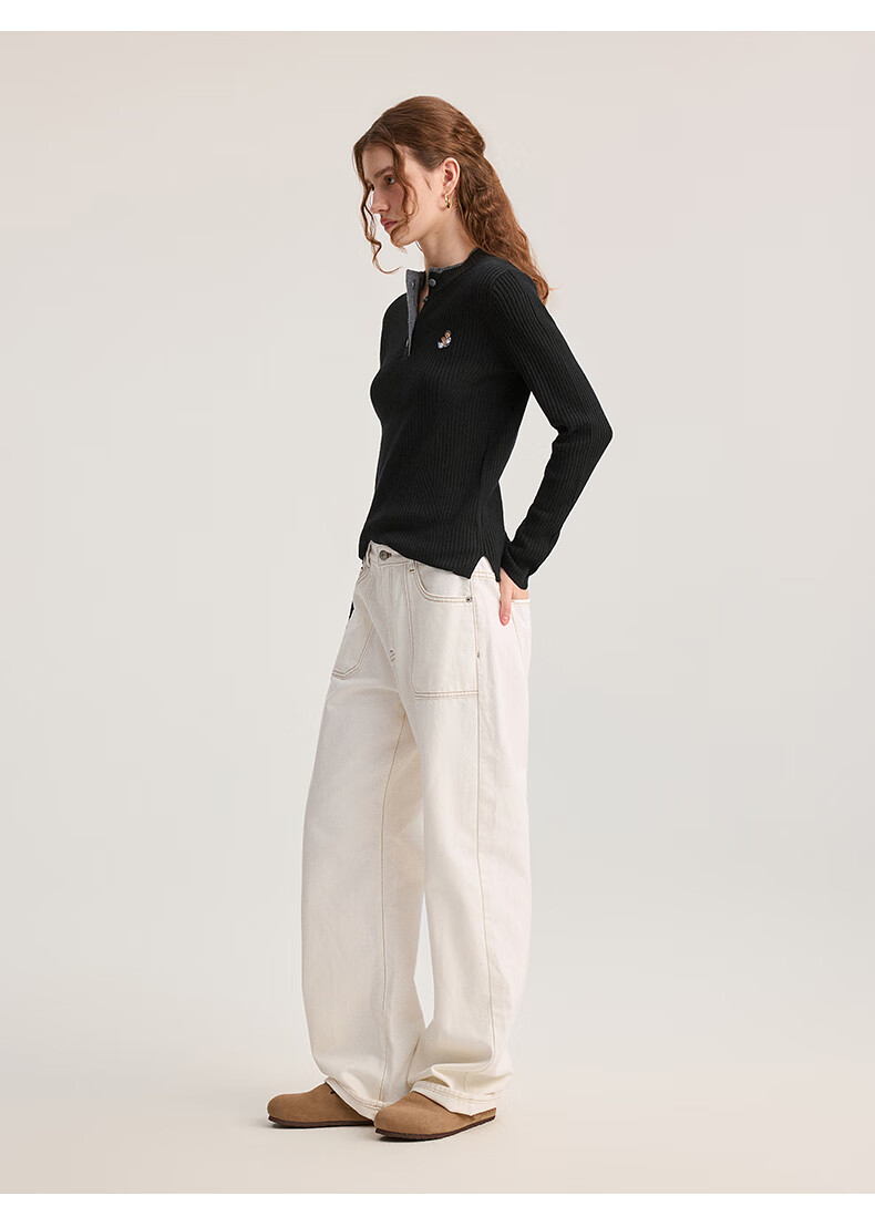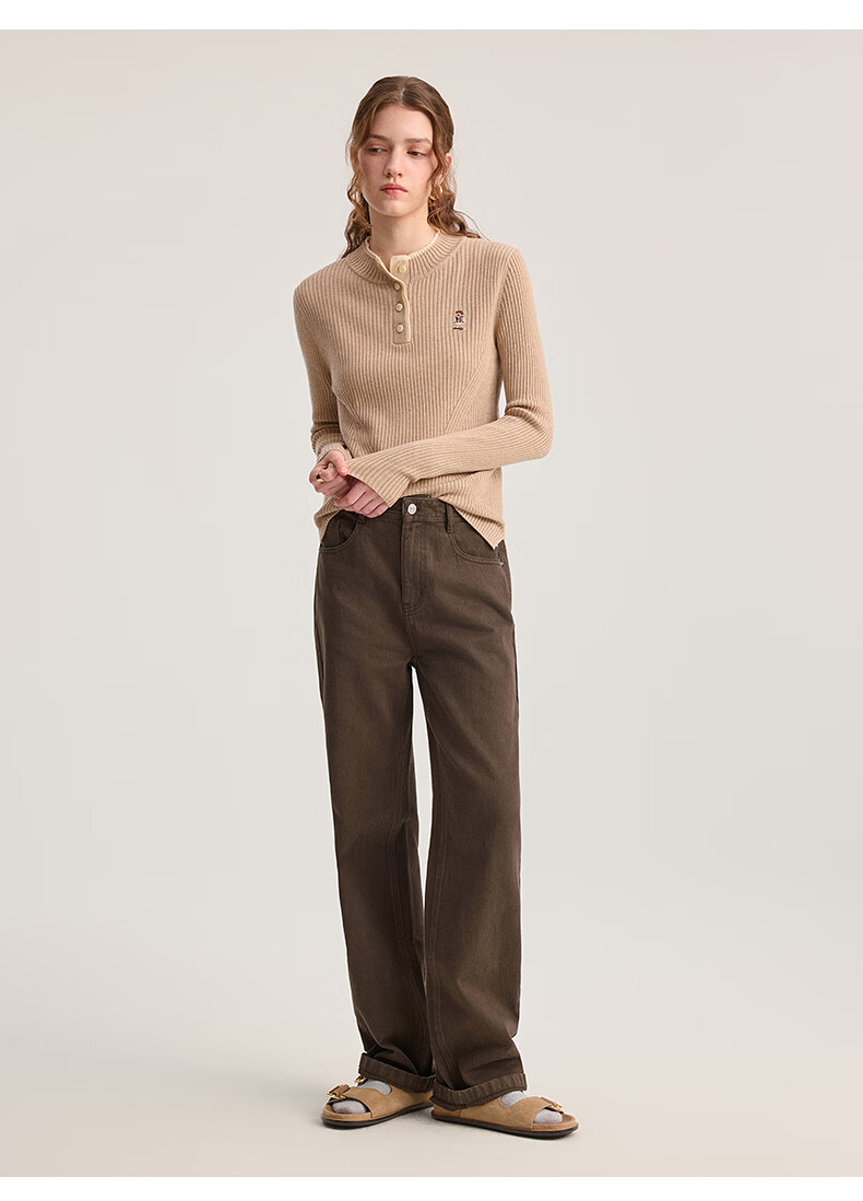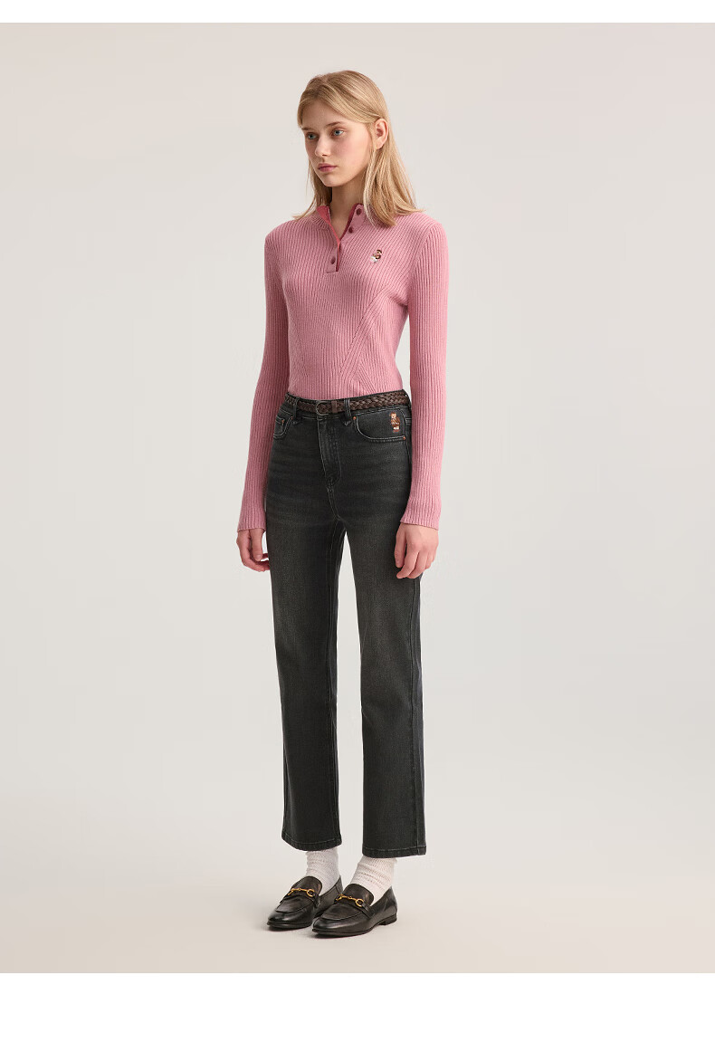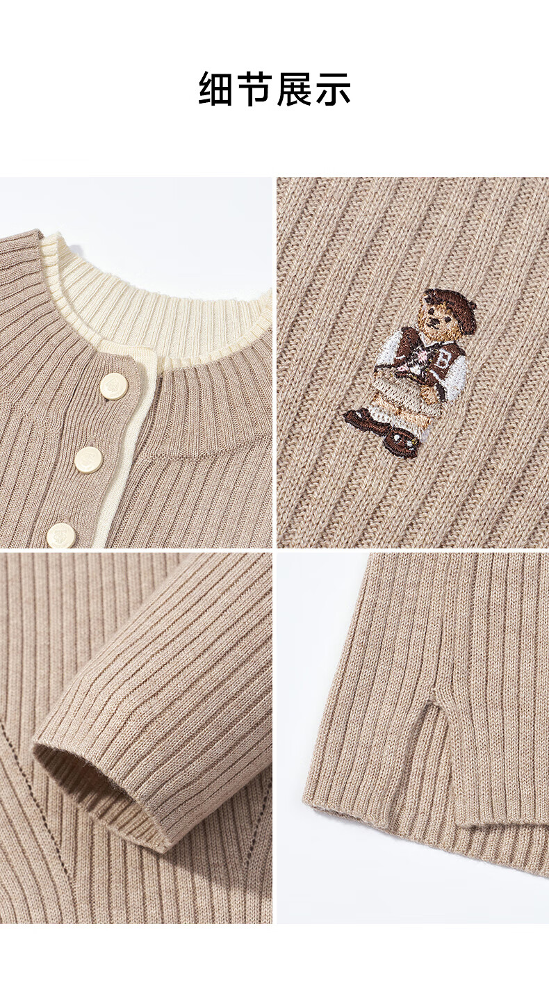 Teenie Weenie小熊女装毛针织衫2025秋新款休闲撞色亨利领套头毛衣 中灰色 S