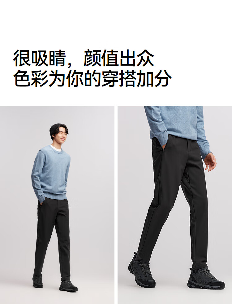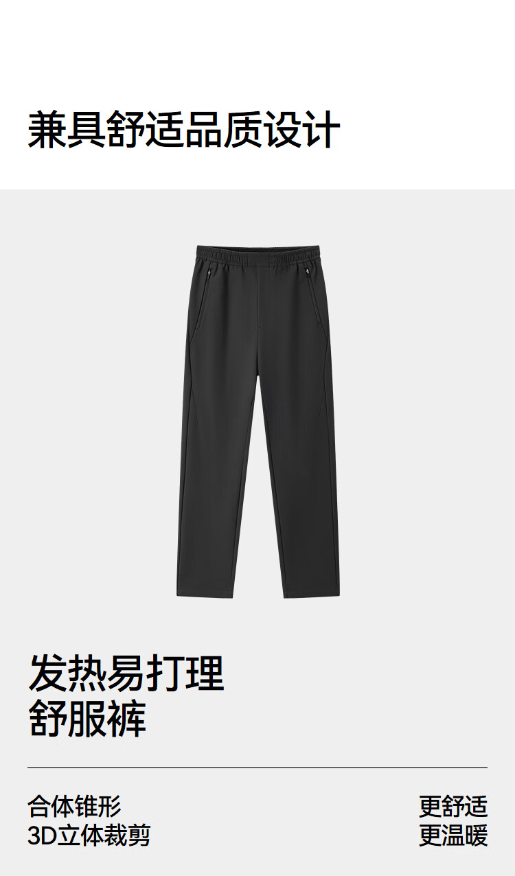 森马(Semir)舒服裤|休闲裤男纯色锥形裤发热易打理冬季长裤抓绒裤子通勤 深灰20903 M
