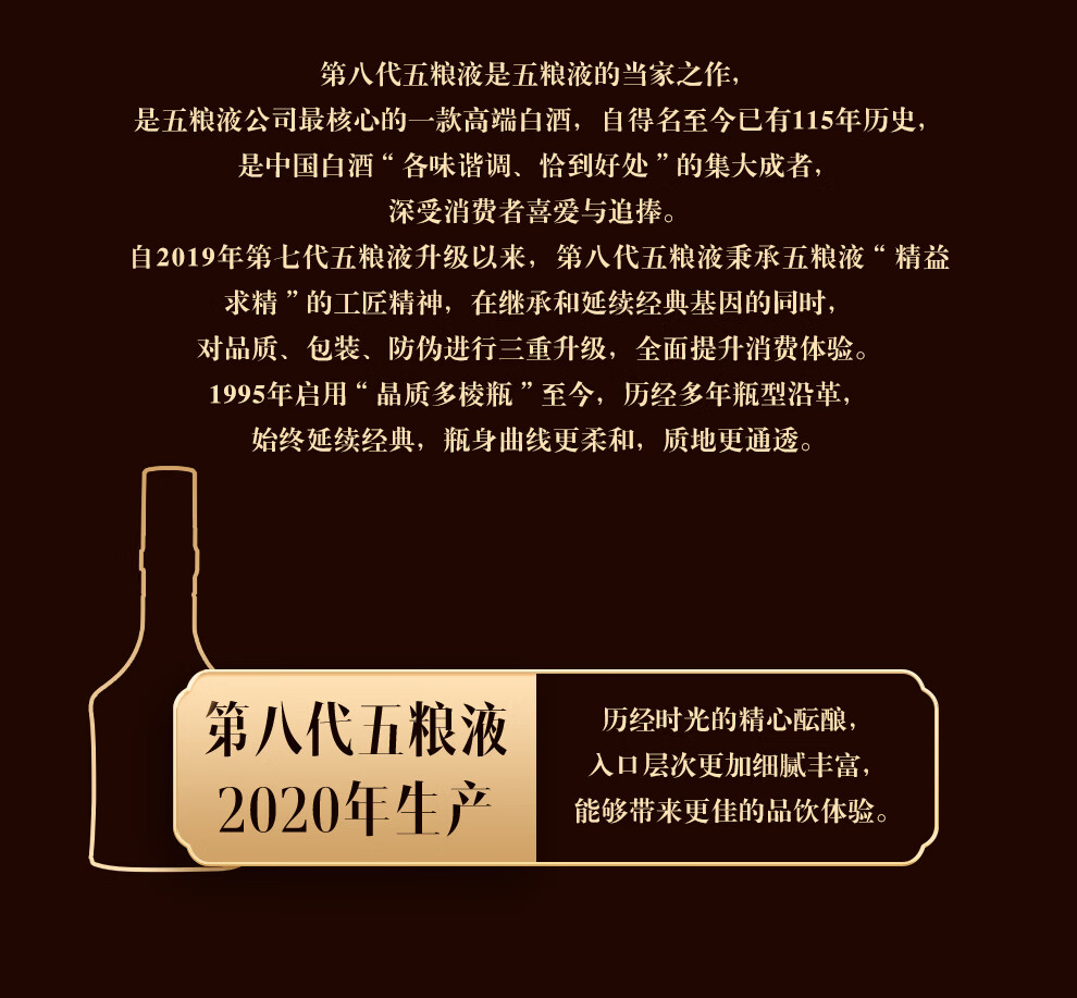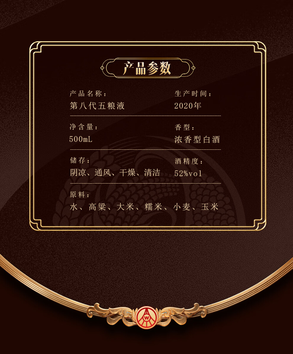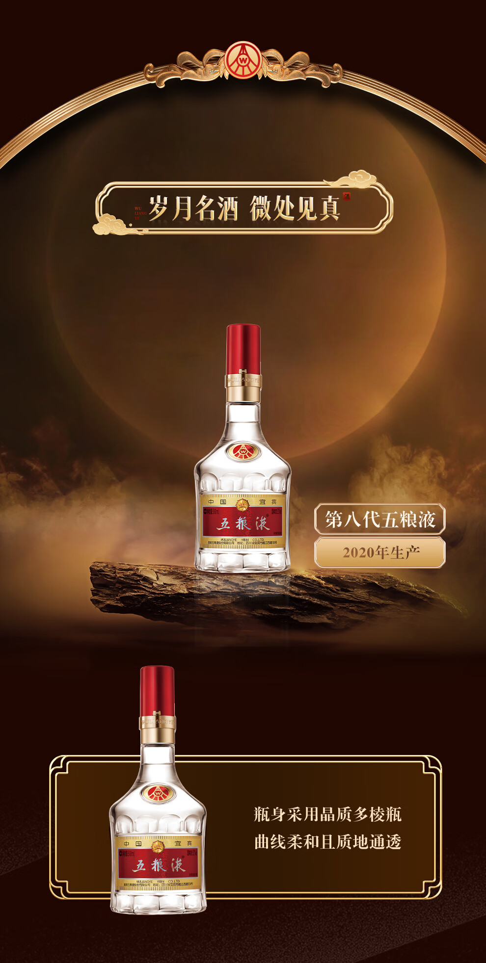 五粮液 【金榜严选】第八代普五 2020年 浓香型白酒 52度 500mL*6瓶 整箱装 陈年老酒 【原厂原箱】