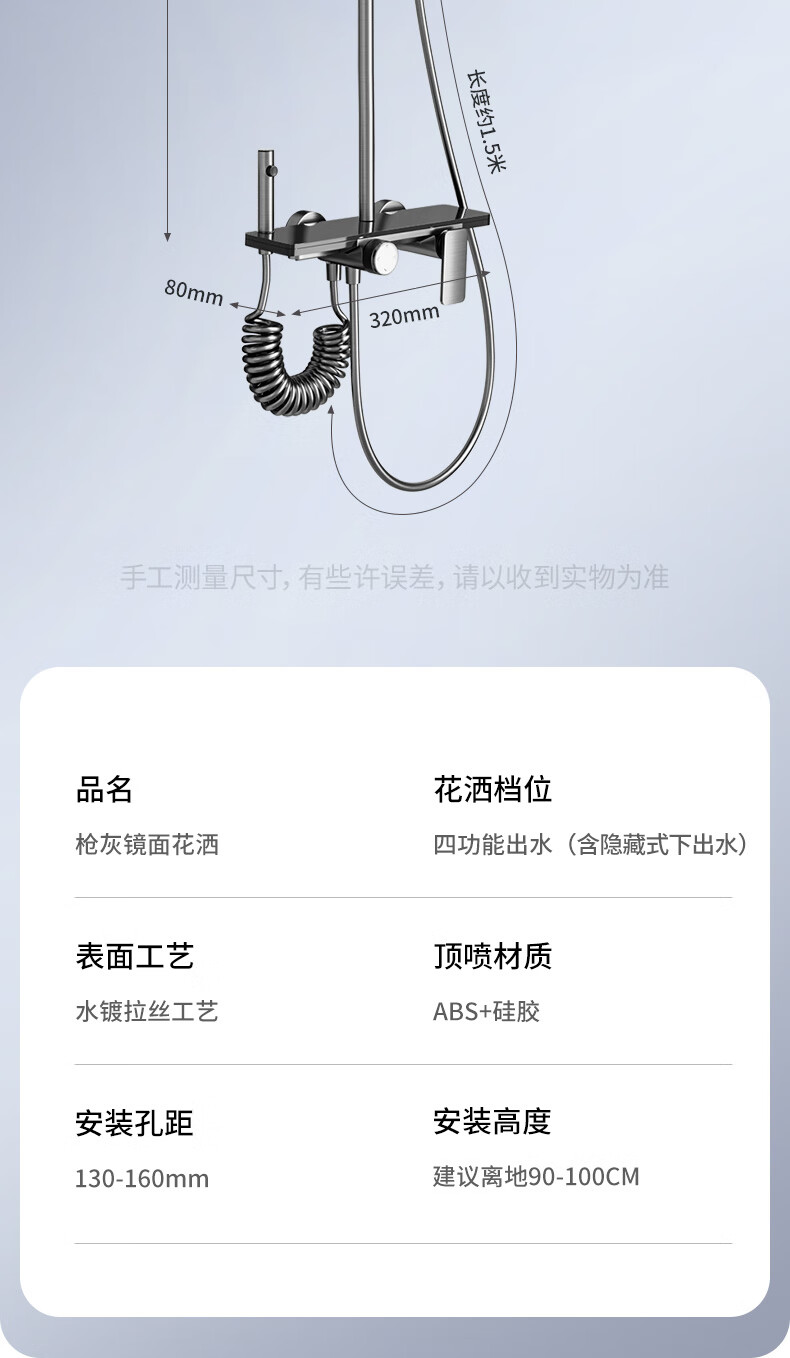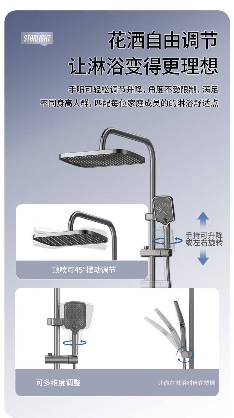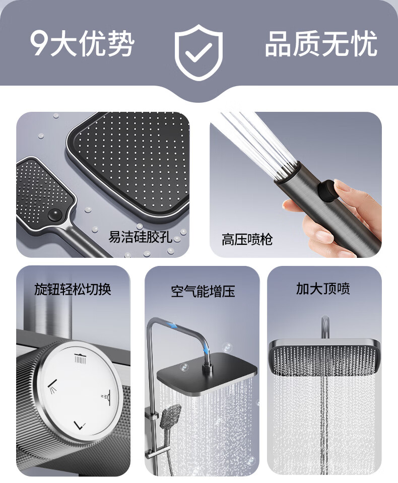 志高淋浴花洒套装一体式卫浴全套超强增压一整套2025新款灰8815四件套
