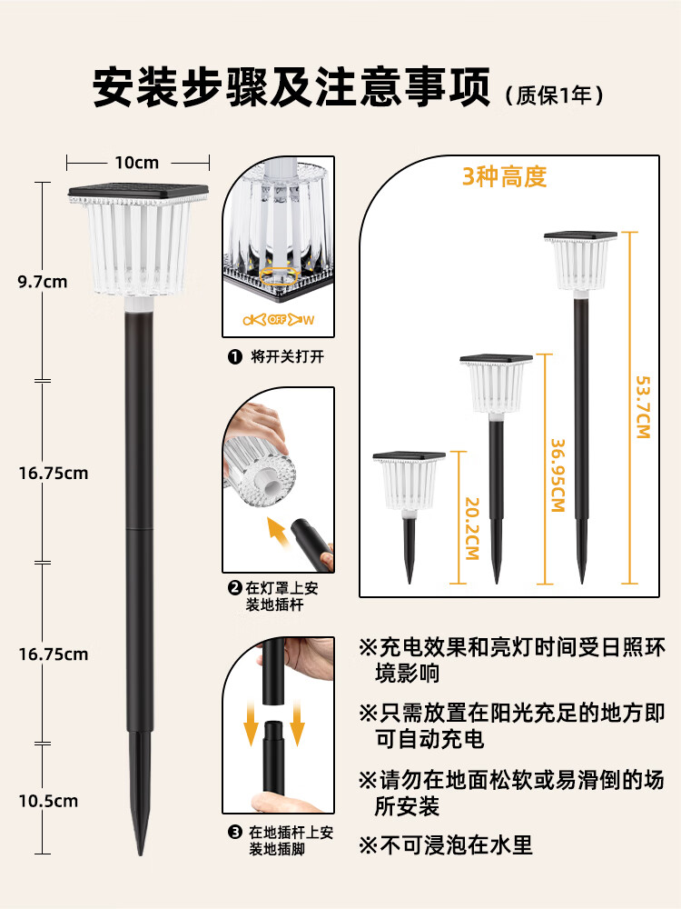 BITPOTT太阳能户外灯庭院灯花园布置别墅院子防水草地灯景观灯地插灯 大杯地插灯【4支装】