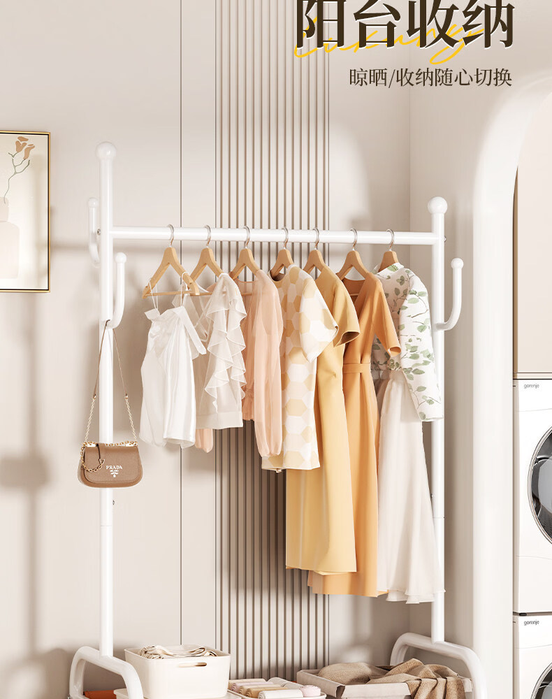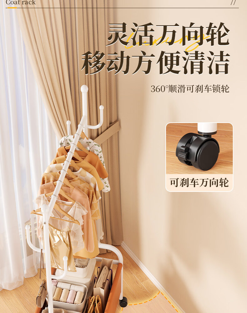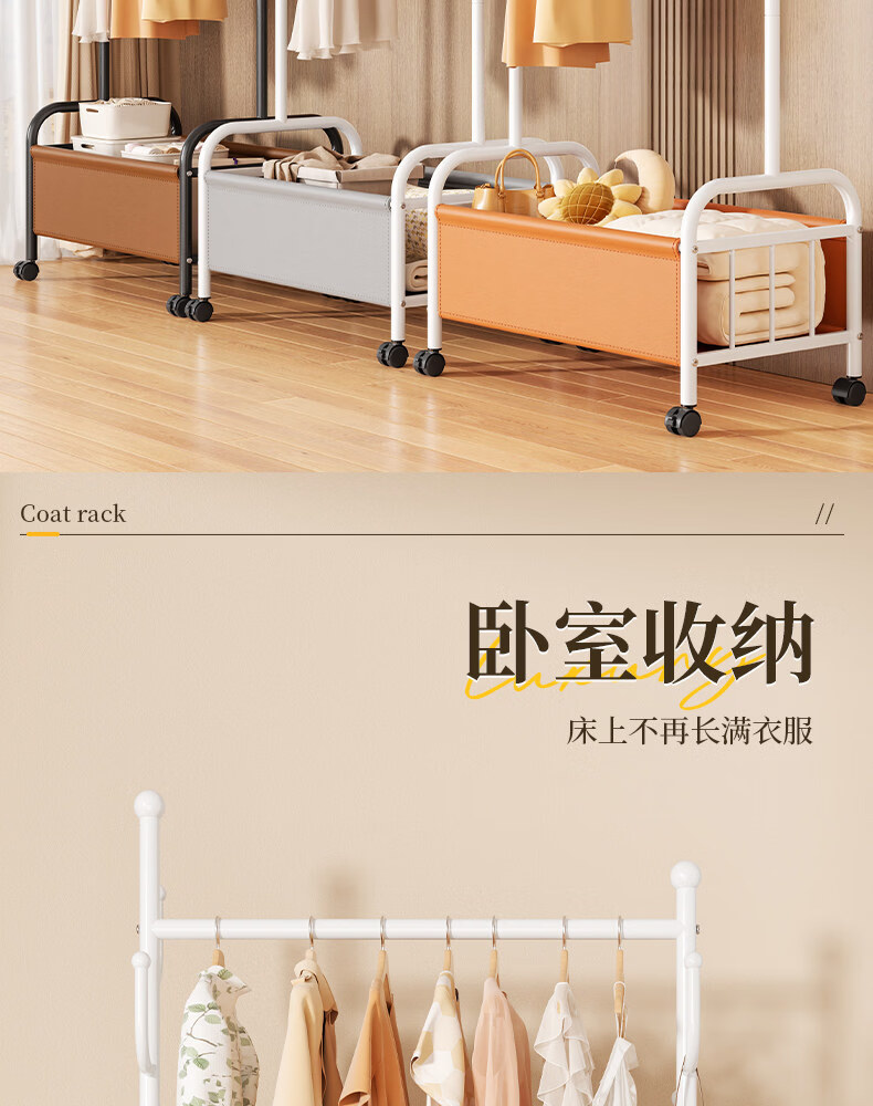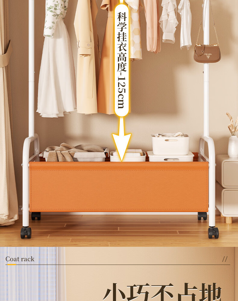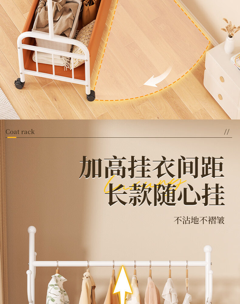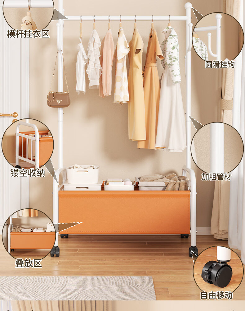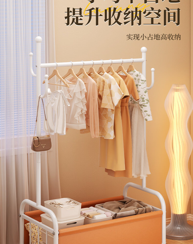 馨婺家衣架落地卧室挂衣架家用室内移动轻奢晾衣架多功能收纳置物衣帽架 白橙色-长60cm【加粗管径】