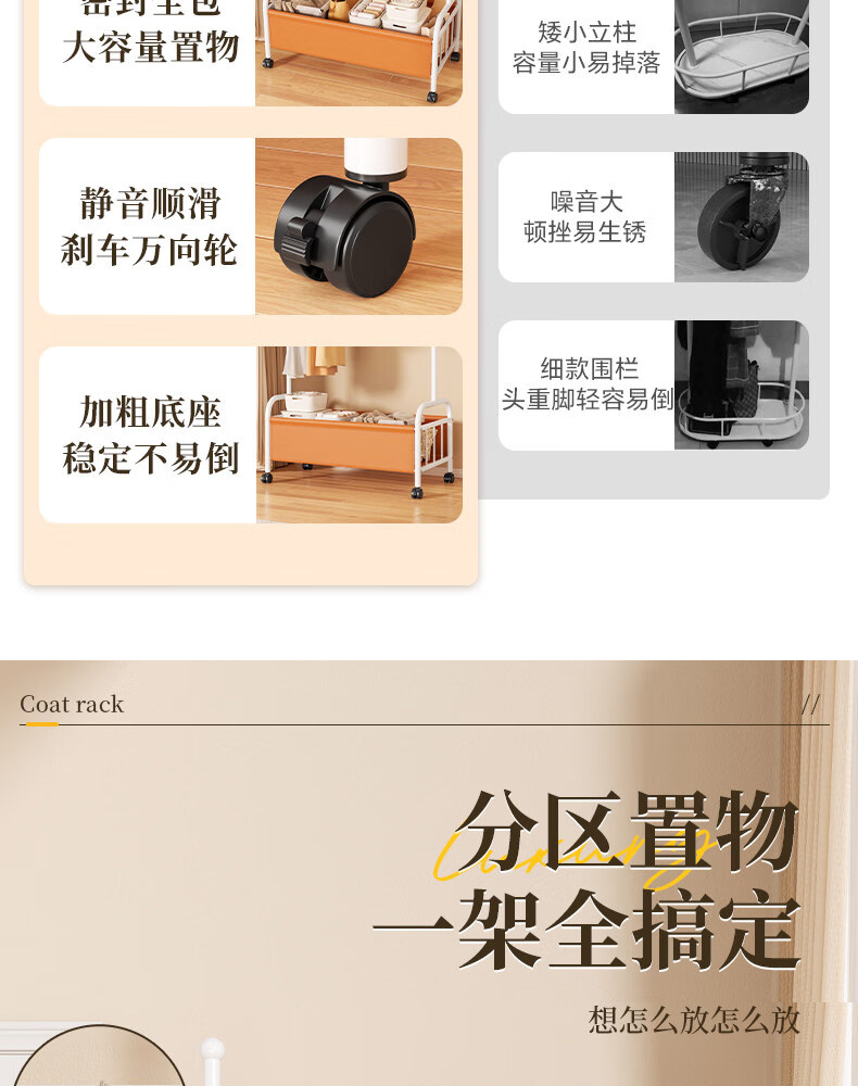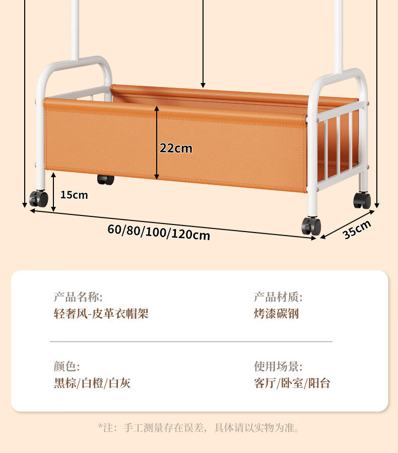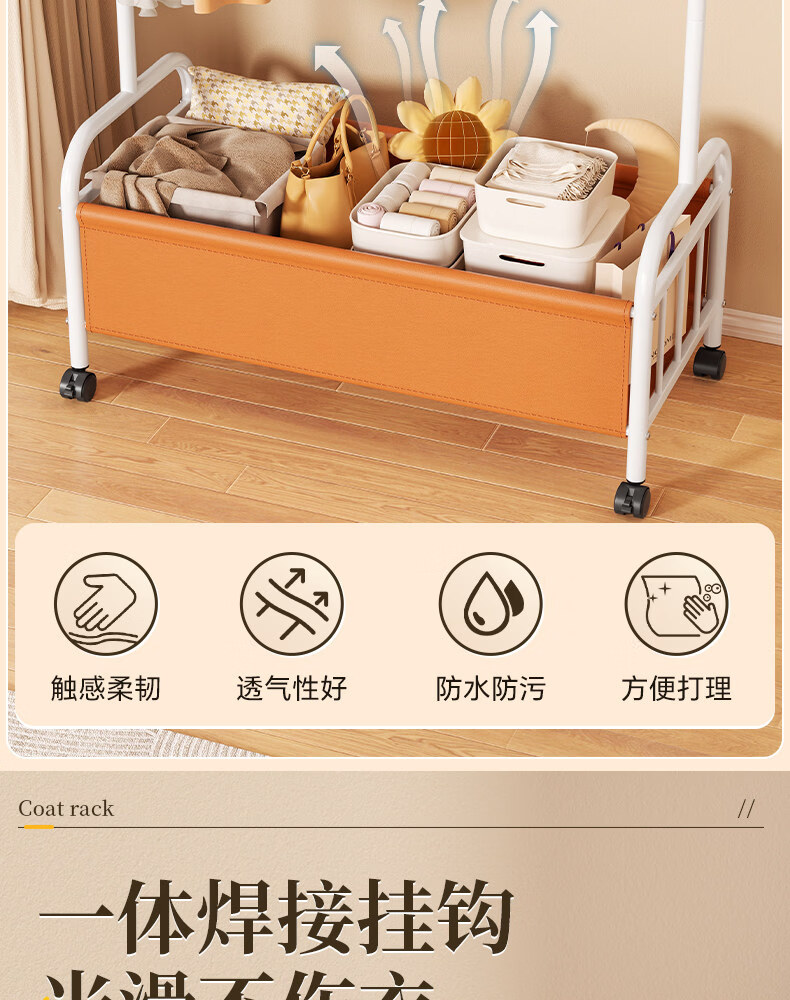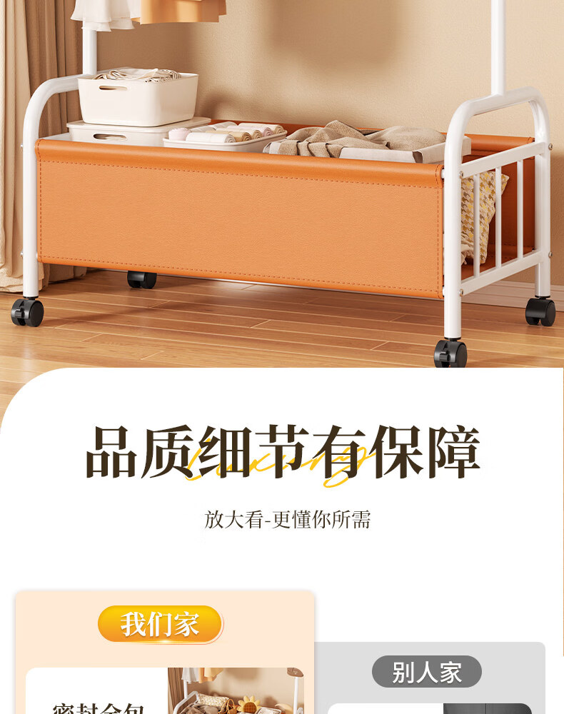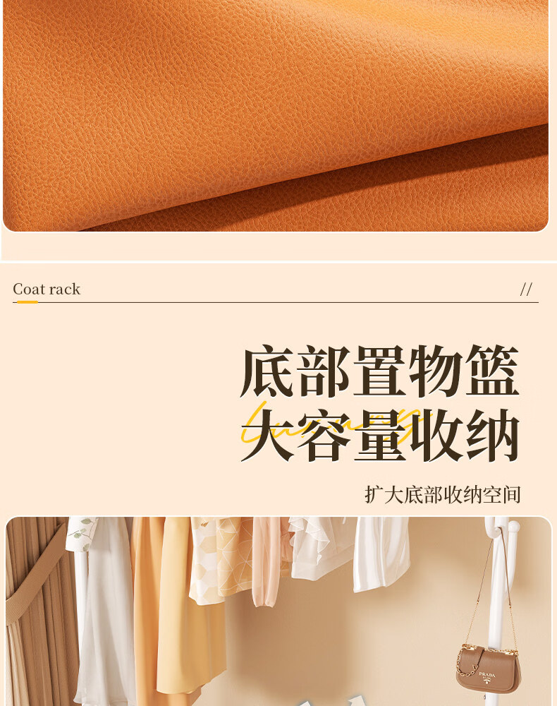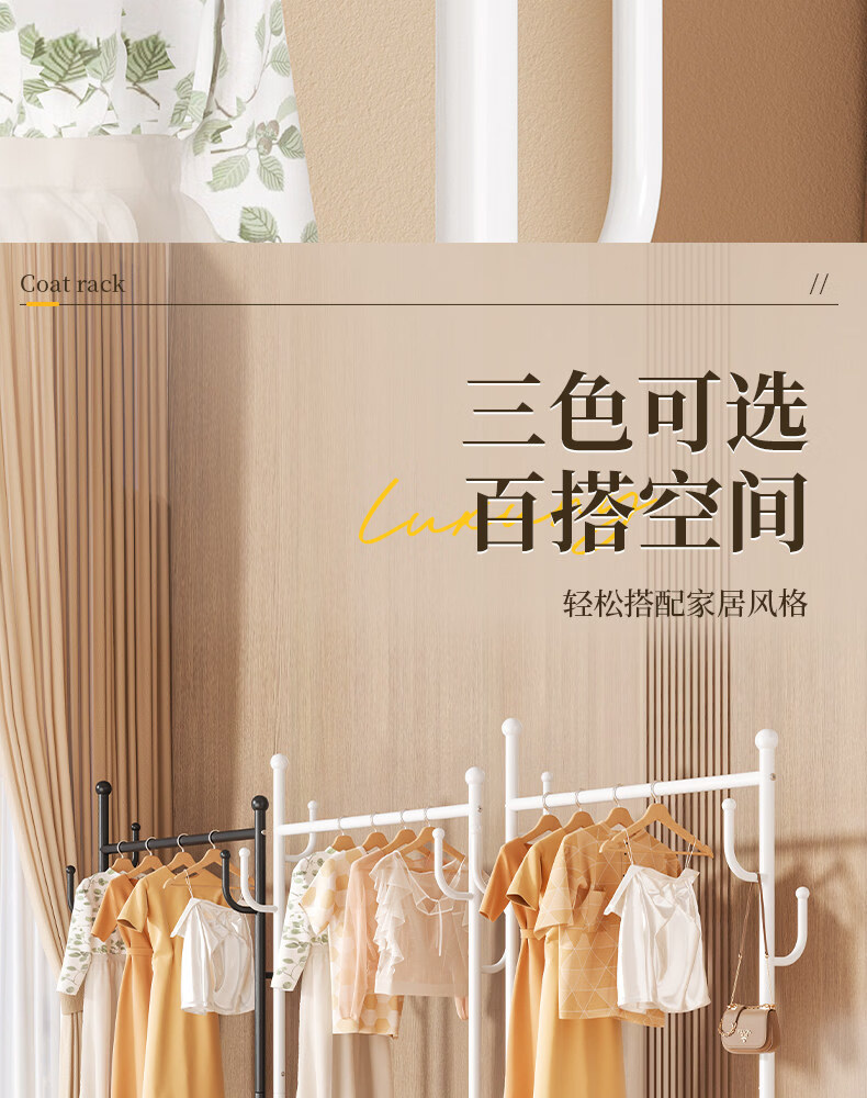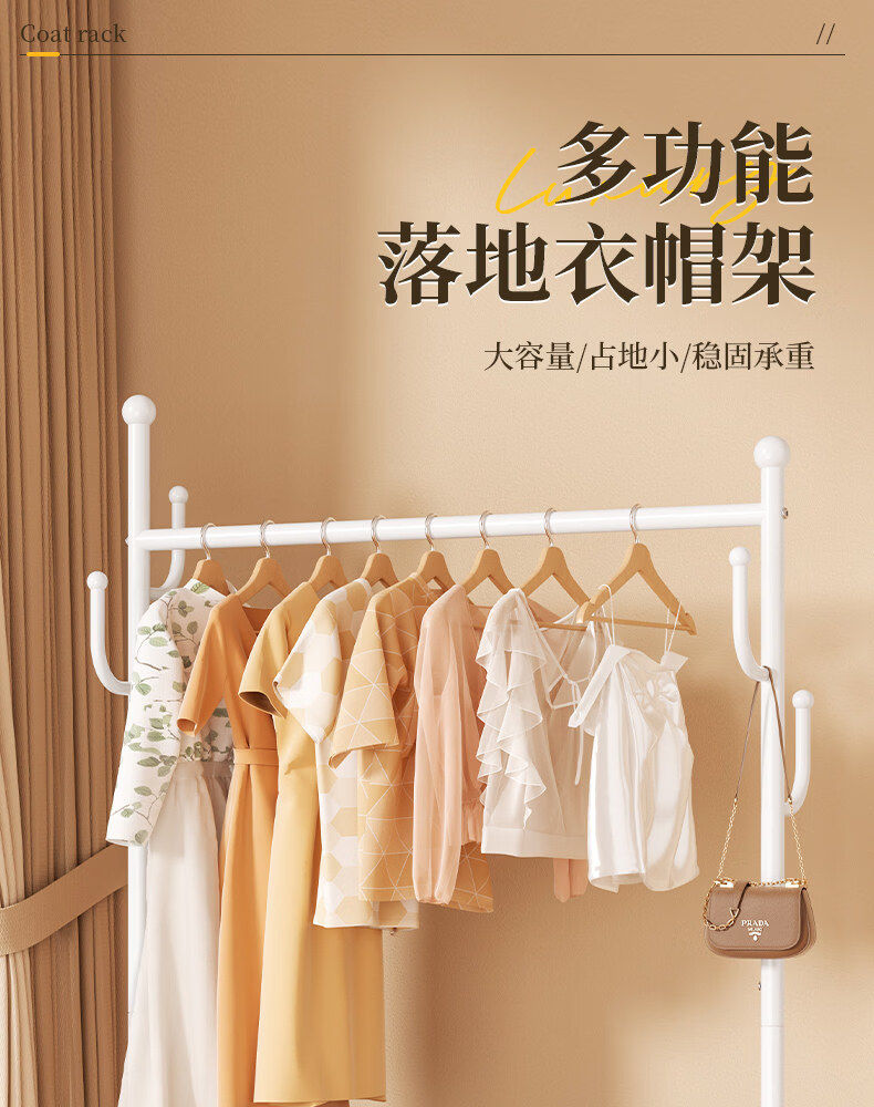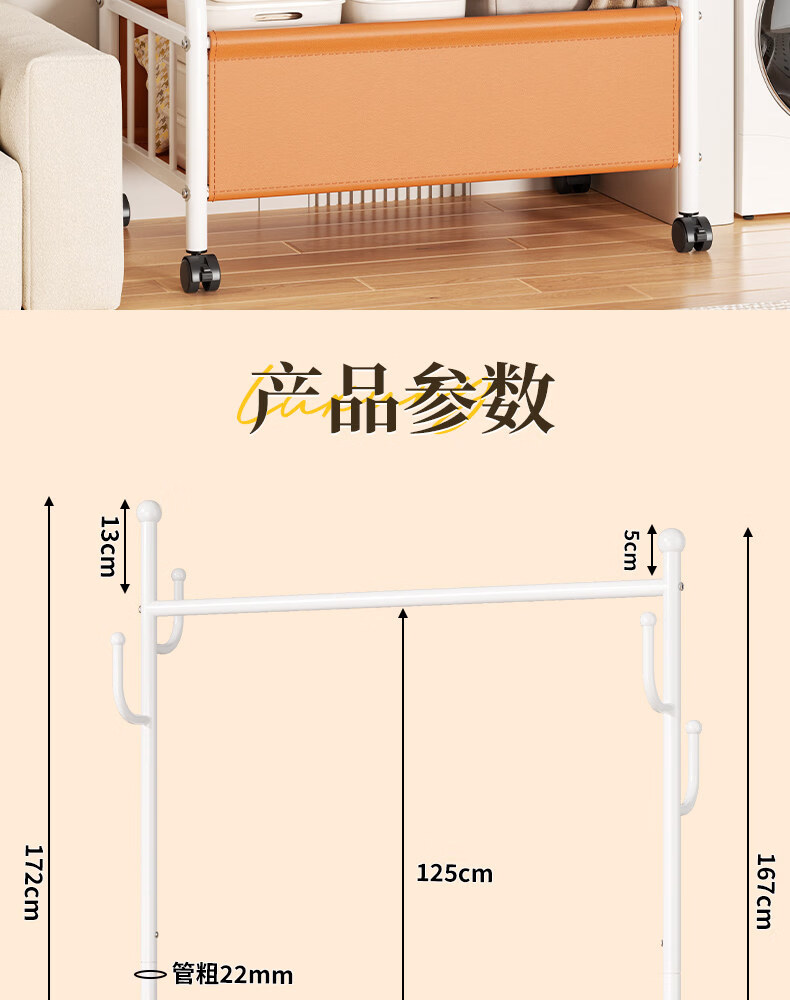 馨婺家衣架落地卧室挂衣架家用室内移动轻奢晾衣架多功能收纳置物衣帽架 白橙色-长60cm【加粗管径】