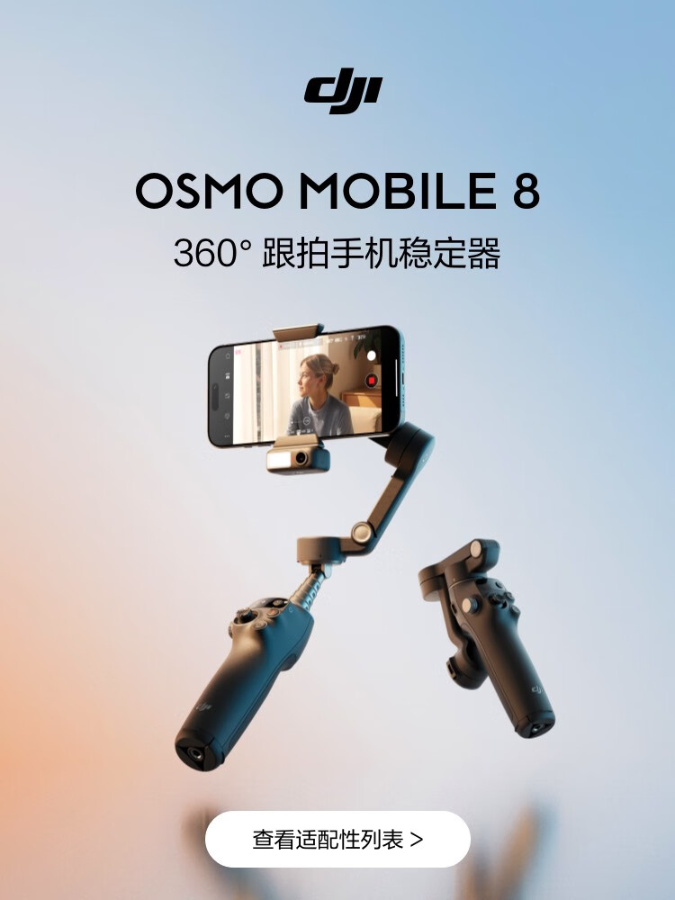 大疆DJI Osmo Mobile 8 手机稳定器手持云台OM8 360度跟拍防抖自拍杆折叠便携直播vlog神器