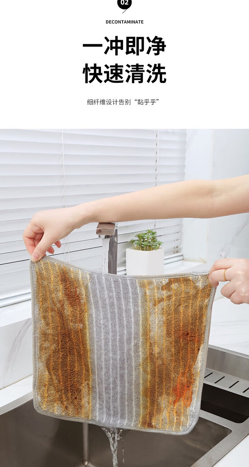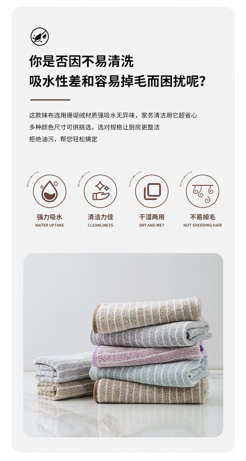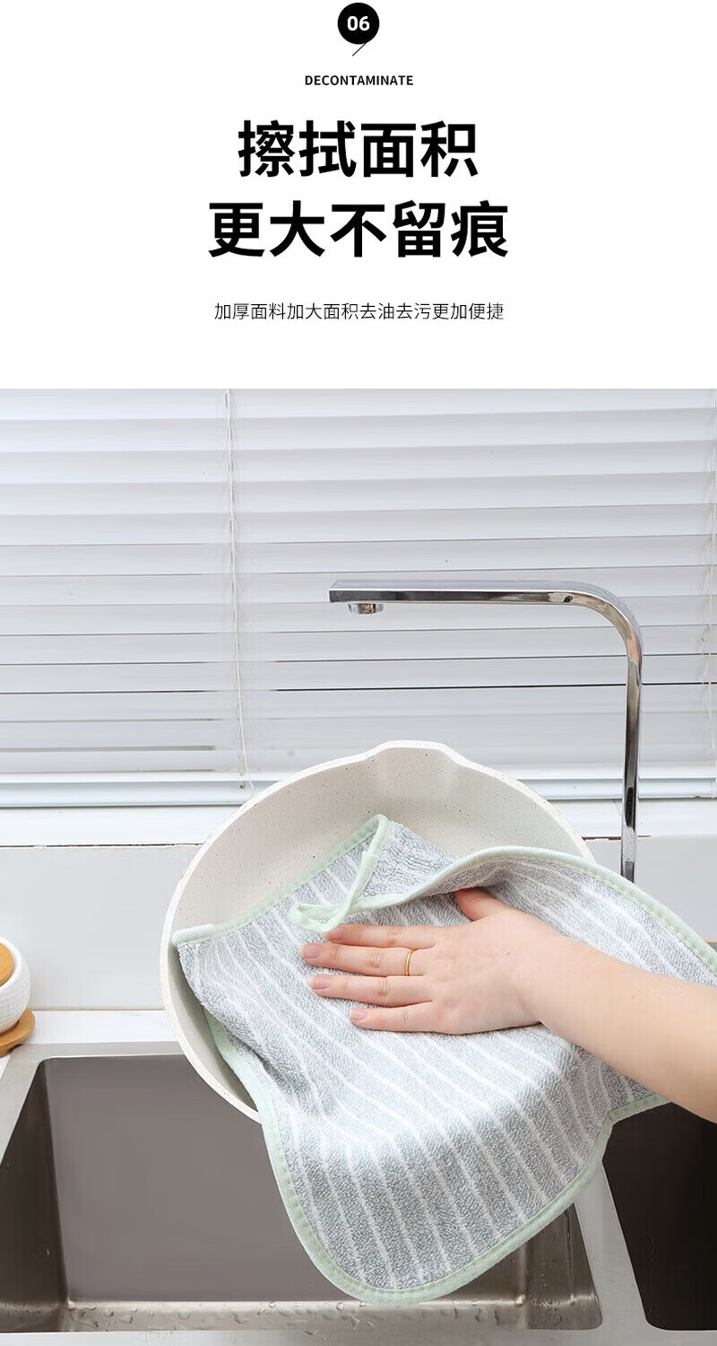 厨房抹布家用吸水毛巾擦桌布家务用品清洁洗碗布竖条纹包边 中号2条装25*25cm