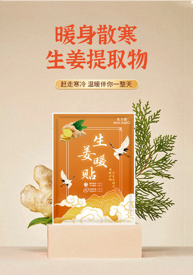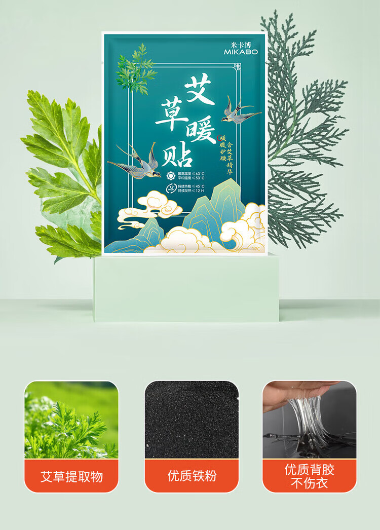 米卡博暖宝宝贴暖贴暖身暖腰腹关节自发加热保宫暖女生理经期大姨妈 艾草70片【国风款 四季可用】