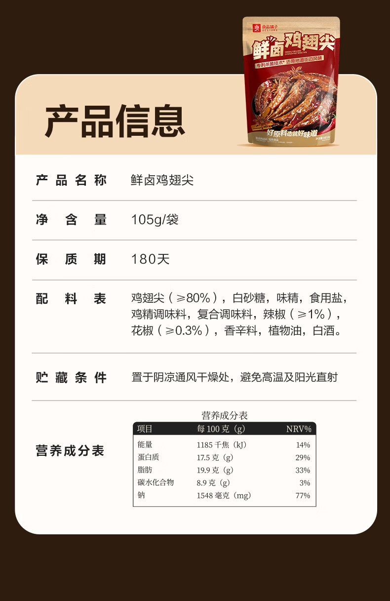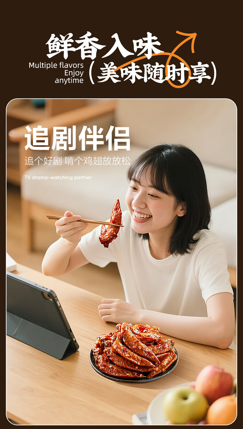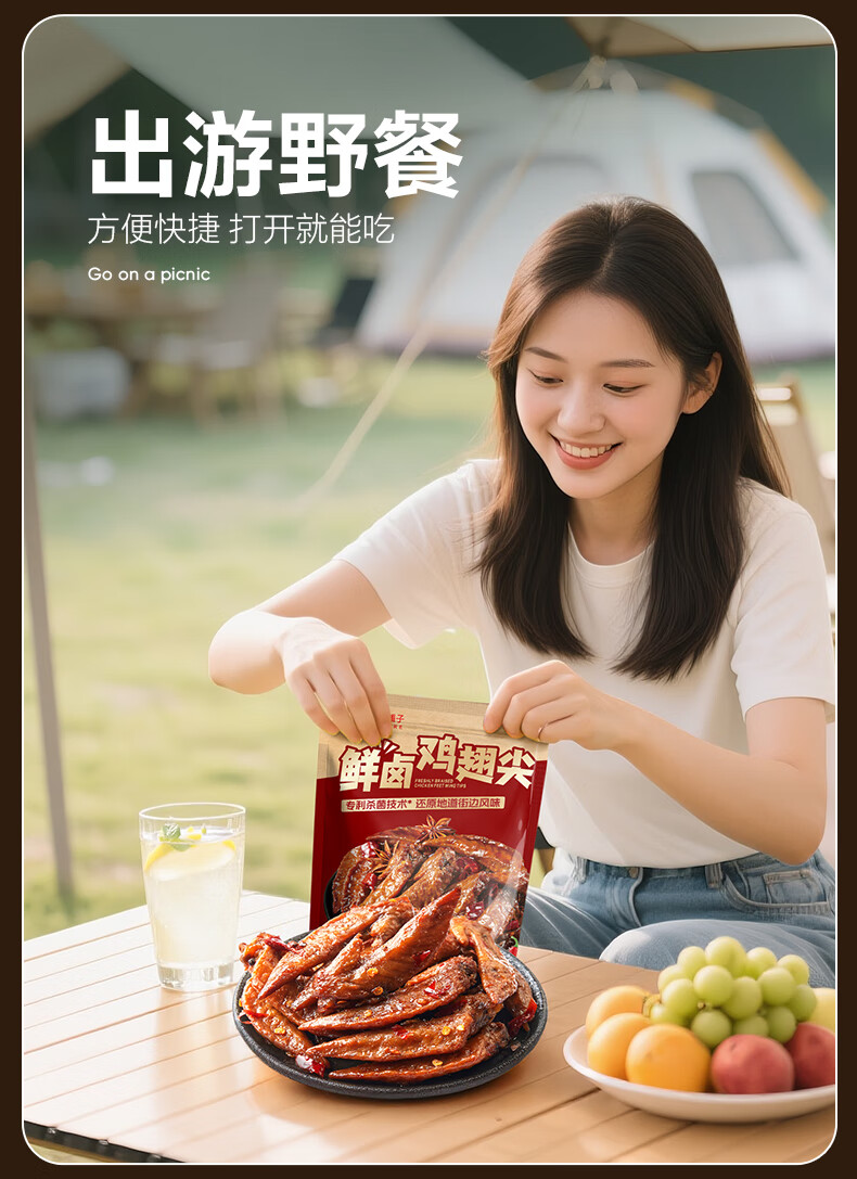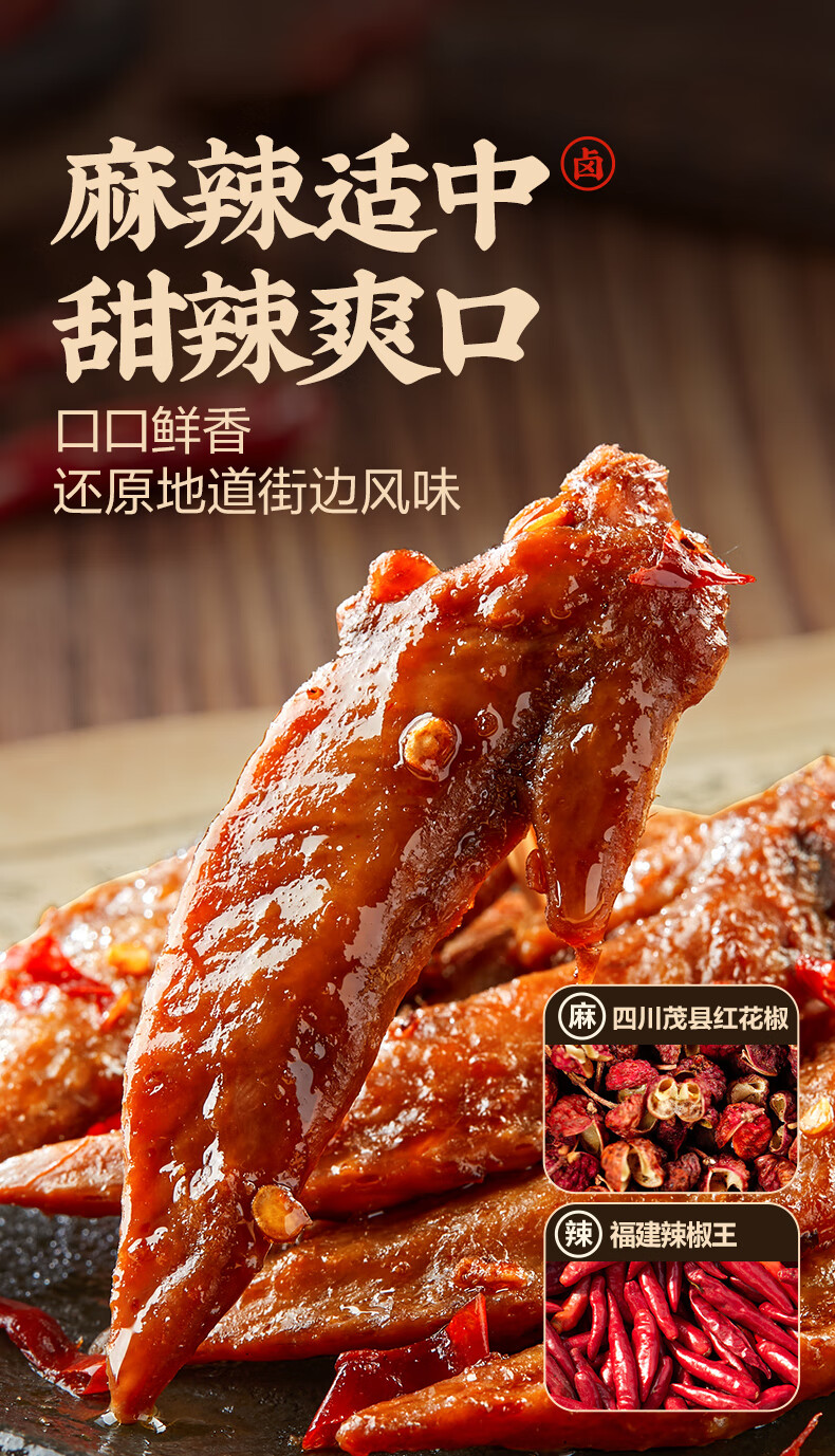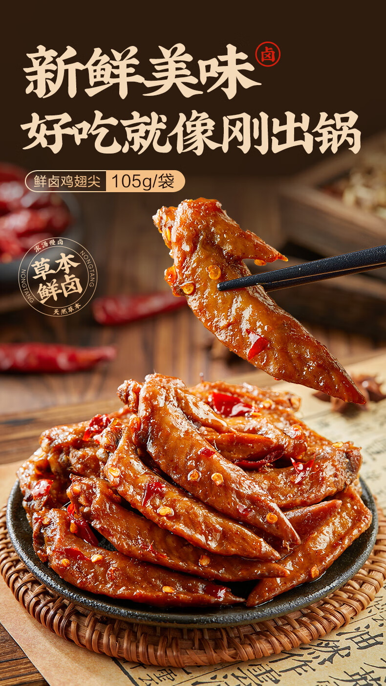 良品铺子鲜卤鸡翅尖105g肉干肉脯即食卤味鸡肉零食小吃网红办公室休闲