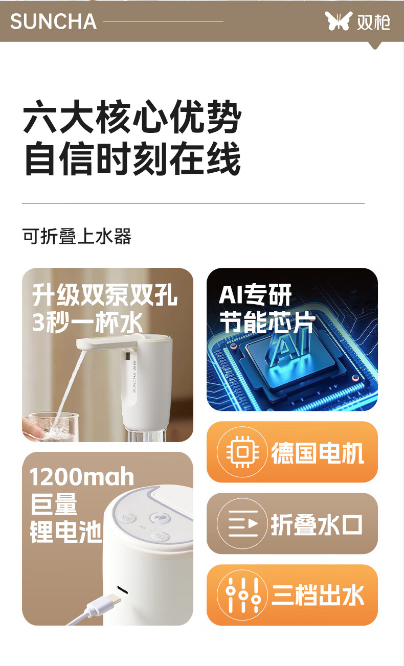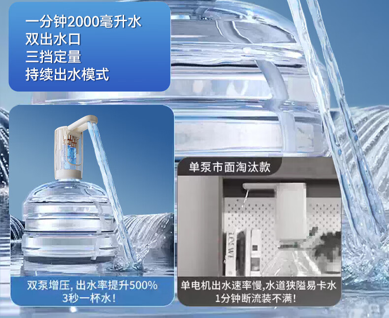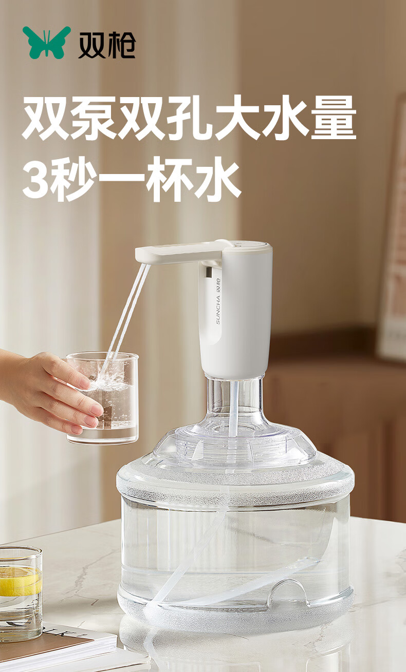 双枪(Suncha)抽水器桶装水神器饮水机轻音矿泉水电动抽水泵双泵折叠上水器