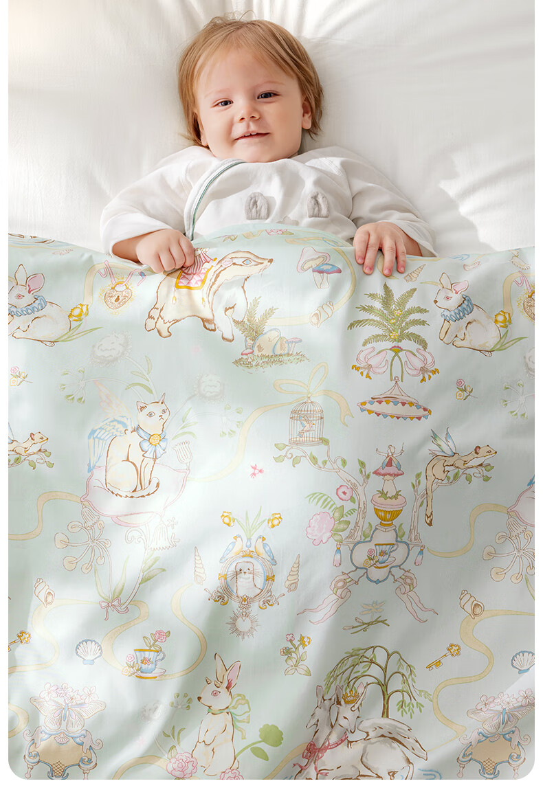 贝肽斯婴儿被子秋冬季儿童宝宝桑蚕丝薄厚双胆子母被 幻想秘境120x150cm
