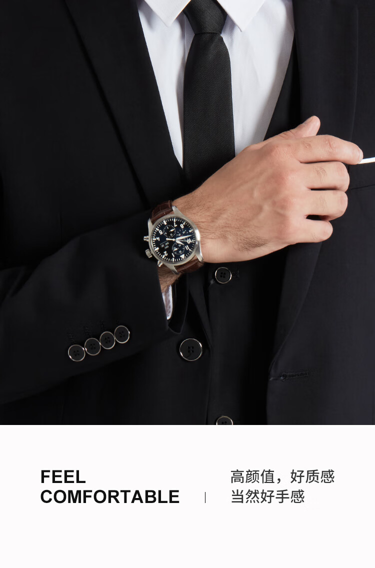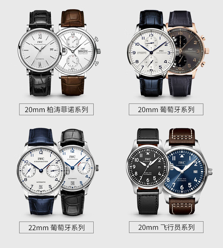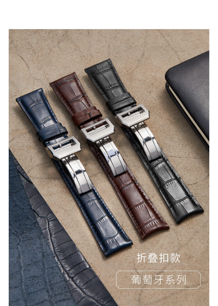 istrap万国表带真皮适用IWC葡萄牙柏涛菲诺手表带黑色配针扣20mm