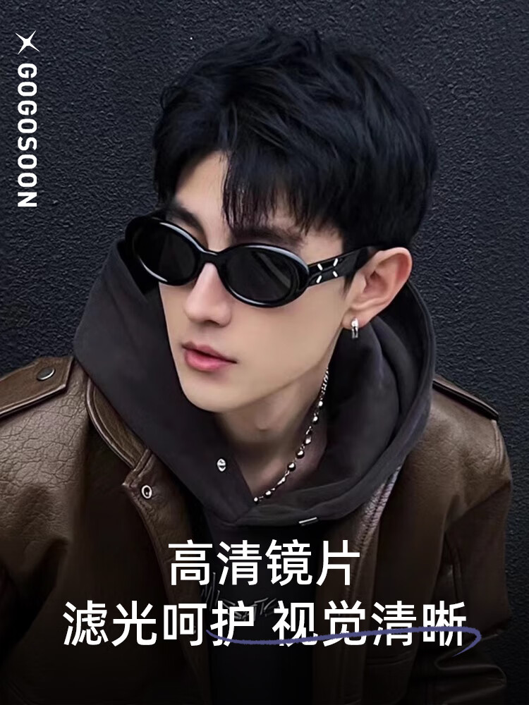 GOGOSOON新款美式复古椭圆框墨镜高级感百搭防晒太阳眼镜男女同款防紫外线